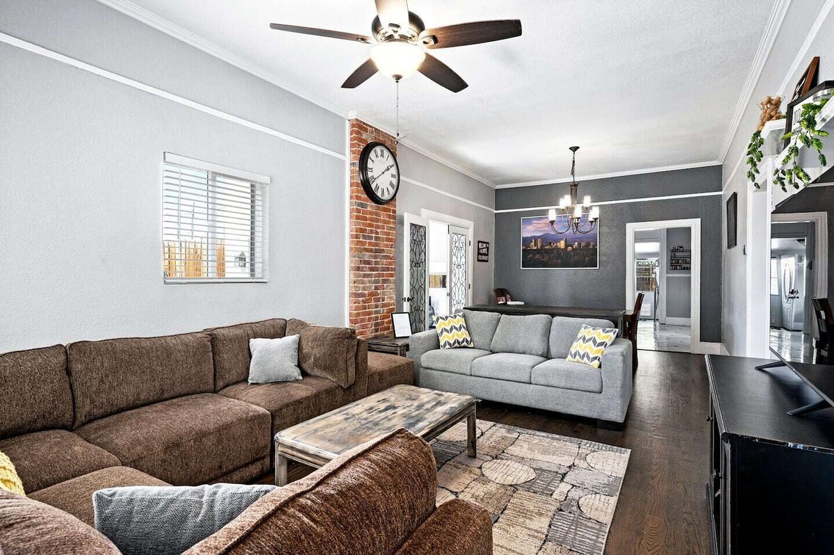 Welcome to your Denver retreat - perfect for families, friends & groups near Sloan’s Lake! Enjoy spacious interiors, outdoor living, & family-friendly touches: - Sleeps 12 | 5 bedrooms | 6 beds | 2.5 baths - Rooftop patio & fenced backyard w/ BBQ & hammock - Dedicated office w/ monitor & fast WiFi - Renovated kitchen & large dining table - Family-ready w/ crib, high chair & games - Pet-friendly We are here for you during your stay, but our level of interaction is up to you. You will be able to self-check in upon arrival. Please make yourself at home, your hosts are just a phone call or text away if you have any questions. We are happy to assist via phone or through your booking app before, during, or after your stay. Once a week, one of our team members will stop by the property to put out the trash cans, replenish our supplies, and/or restock sheets and towels. They will NOT enter the home. They have access to the garage or shed with a code. This day may or may not fall during your stay. This location offers the best of both worlds! Just steps away is the expansive 177-acre Sloan's Lake Park, complete with playgrounds, tennis courts, athletic fields, boating, basketball courts, multi-use trails, and picnic areas. And if you're in the mood for entertainment or dining, a short three-block walk will take you to St. Anthony's redevelopment, featuring an Alamo Drafthouse, Odell Brewing Company & Pizzeria, Starbucks, yoga studios, multiple restaurants, and the Little Man Ice Cream factory. And if you want to explore further, the light rail is just a 15-minute walk away, connecting you to all that Denver has to offer! West Colfax stands out from other Denver neighborhoods with its unique character. This area offers a tranquil escape from the city buzz while still being just a short distance from the lively downtown. Nature lovers and pet owners appreciate the numerous parks and green areas throughout the neighborhood. Although there may not be any high-end dining options, West Colfax is packed with locally-owned restaurants that offer a range of tasty cuisine. With breathtaking views of the Rockies from the west-facing windows and stunning skyline sights from the east, West Colfax provides a perfect blend of energetic city living and peaceful suburban life. DRIVING DISTANCES: Cherry Creek Shopping Center: 17 min Downtown Denver: 10 min Denver International Airport: 39 min Red Rocks Amphitheater: 20 min Coors Field: 9 min Olde Town Arvada: 16 min Downtown Golden: 19 min Boulder: 33 min Pepsi Center: 5 min I-70 Highway: 11 min Historic Cheesman Park: 15 min Sloan's Lake/Park: 1 min or 2 min walk Echo Mountain (Closest Ski Area): 46 min You'll have access to the entire home with a private entrance, which ensures your privacy and comfort. Entry is secure and easy with a keypad lock. You'll have access to a backyard/patio, grill, parking in the driveway as well as other amenities such as high-speed Wi-Fi and a well-equipped laundry area. As the sun sets behind the Rockies, string lights twinkle above the rooftop patio where you can sink into lounge seating and watch the neighborhood quiet down. In the morning, step outside to the fenced backyard, sway in the hammock with coffee in hand, and listen to the calm of Sloan’s Lake just a short walk away. Evenings invite you to gather around the grill, share a meal at the large dining table, or simply enjoy the fresh Colorado air from the balcony. Sleeping arrangements Five bedrooms provide restful space for up to twelve guests. The primary suite includes a king bed, sofa bed, TV, blackout curtains, and an ensuite bathroom with a shower. A second bedroom features a king bed with room-darkening shades, while the third offers a queen bed with lounge chairs and a table. The fourth bedroom has a queen bed, dresser, mirror, and rooftop patio access, and the fifth is furnished with a queen bed and dresser. With two full bathrooms and a half bath, everyone can get ready for the day without waiting. Outdoor living The rooftop patio invites you to start the morning in the sunshine or wind down in the evening with a glass of wine. Out back, the fenced yard provides a hammock, BBQ grill, and outdoor furniture for meals and conversation under the open sky. Kitchen & dining Inside, 2,400 square feet of living space includes a renovated kitchen stocked with cooking basics and upgraded appliances such as a refrigerator, stove, oven, microwave, dishwasher, coffee maker, and hot water kettle. Share meals around the large dining table, or head to the living room for a movie night on the flat-screen TV. Family & convenience This pet-friendly home makes travel easier with thoughtful touches: a pack ’n play, high chair, and board games for children, plus a laundry room with washer, dryer, and utility sink for longer stays. A dedicated workspace with desk, chair, and monitor supports remote work, while reliable WiFi keeps everyone connected. Comfort features include air conditioning, heating, ceiling fans, portable fans, room-darkening shades, and extra blankets and pillows. Safety & access The home is equipped with smoke and carbon monoxide alarms, a fire extinguisher, and a first aid kit. Self check-in with a keypad makes arrival simple, and both free onsite and street parking are available. Neighborhood Step outside to Sloan’s Lake Park, a 177-acre green space with trails, tennis courts, playgrounds, and picnic areas. A short walk brings you to Colfax Street and the St. Anthony’s redevelopment, home to restaurants, shops, and local favorites like Odell Brewing Company and Little Man Ice Cream. For downtown access, the light rail is just a 15-minute walk away, connecting you to Denver’s entertainment, dining, and cultural attractions. Perfect for… Families, groups of friends, and business travelers alike will find the space, amenities, and location suited for both relaxation and city exploration. Whether your plans center on gatherings at home or adventures acr
