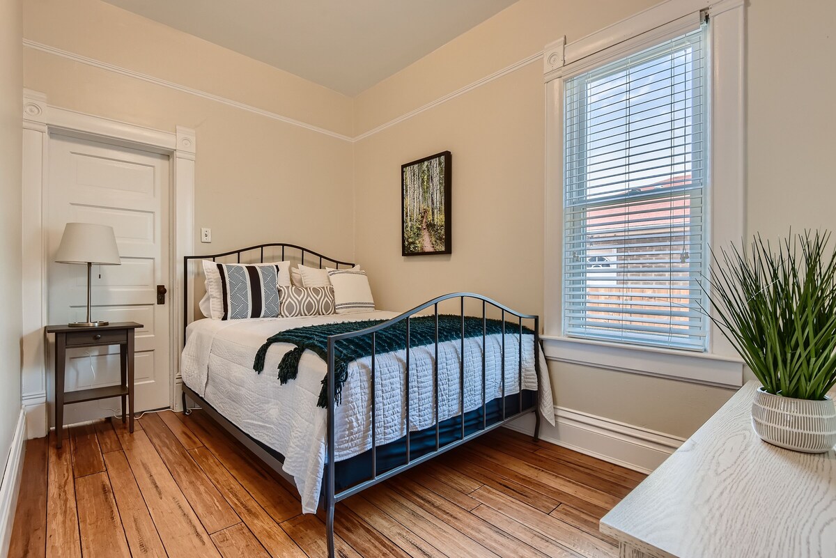 RARE private single family home with one of the largest backyards in LOHI! This home has two stories plus large Game room basement, 4 bedrooms, 2 baths. Walking distance to the best coffee shops, bars, restaurants, parks, Broncos Stadium, Coors Field, & nightlife in Denver. The living room is bright & open. Large backyard perfect for yard games & relaxing. We have an outdoor grill, tables, cornhole set, and hammock. The gameroom basement has foosball & a shuffleboard table. There is also a table for card games and other fun activities. The second floor is a private suite which includes two beds and its own bathroom. Perfect getaway for families, couples, or groups! Our prices include all fees. No hidden fees.