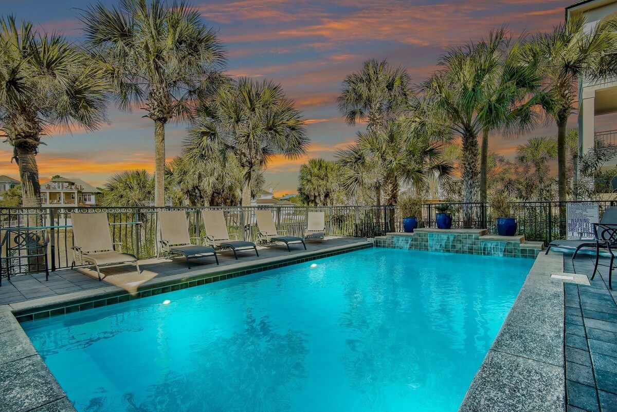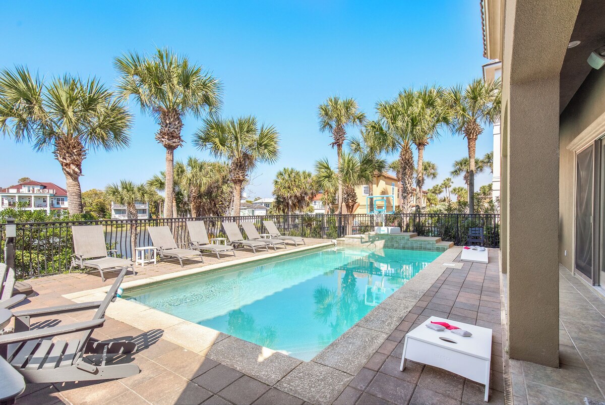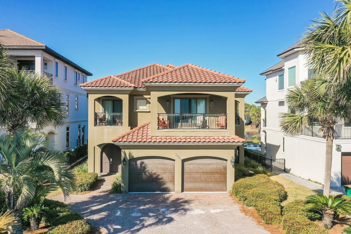 Imagine this: Waking up to the gentle whisper of waves from the gulf and the sparkling expanse of the lake, all from the comfort of your private oasis. At Emerald Palace, this isn't just a dream, it's your reality. This 7-bedroom oasis boasts over 5,500 square feet of living space, offering something for everyone. More than just a home, this is a haven. This home boasts the following amazing amenities: -Game Room/Movie Theater combination with pool, ping pong, air hockey and an arcade game. There is movie theater seating for 12 and movie theater quality sound and picture quality on a large 120 inch screen. (pool table and video game being installed January 2025. -Gulf views and lake views from either side of the house and an abudance of decks to soak the views in. -12 foot ceilings on the first floor to have sense of comfort and luxury. -A pool deck with a 30 foot saltwater pool, outdoor kitchen and grill, jacuzzi, fire pit, and an abundance of lounge chairs and outdoor seating. -A luxurious backyard with over 2000 square feet where you can play badmitton, volleyball, cornhole, axe throwing, and other fun yard games. And seating for many to sit by the lake and relax. Nestled on Destin's most coveted strip, Emerald Palace boasts breathtaking panoramas of the Gulf and the lake, with one or the other visible from every room. Watch both the sunrise and the sunset over the water. Imagine sipping coffee on your balcony, watching the sunrise paint the water gold, or unwinding by the pool as the sun dips below the horizon. *Luxury Redefined: Step inside and be greeted by 12-foot ceilings and a spacious living area, perfect for family gatherings. Unwind in the opulent movie theater featuring a 120-inch screen and state-of-the-art sound 7.1 Klipsch surround sound system, or challenge your friends to a game of air hockey or ping pong. *A Private Paradise: With seven bedrooms, five of which boast private bathrooms and balconies, everyone can find their sanctuary. Gather on the expansive deck for barbecues under the stars, or take a dip in the refreshing saltwater pool. *Endless Activities: Beyond the home, discover a world of excitement. Destiny West HOA offers a heated pool, hot tub, fitness center, tennis courts, and more, all just steps away. Explore nearby beaches, indulge in water sports, or tee off at championship golf courses. Crafted for Convenience: *Beach access is a breeze with the pristine white sand just across the street and over a couple houses *Optional beach service takes the hassle out of finding the perfect spot, while golf cart rentals allow you to explore with ease. *Accommodates up to 21 guests comfortably, perfect for family reunions or memorable getaways with friends. More than just a vacation rental, Emerald Palace is an experience. Book your stay today and create memories that will last a lifetime. Key Highlights: *Gulf or lakefront views from every room *Private saltwater pool and outdoor cooking area. Separate jacuzzi and fire pit in backyard. *Game room & movie theater with 120-inch screen and surround sound *Access to Destiny West HOA amenities *Optional beach service and golf cart rentals *Accommodates up to 21 guests The Details: Home Layout: First floor: King Bedroom with bath Double Queen Bedroom with bath Living Room Kitchen Pool Deck with Fire Pit, Jacuzzi, Many Seating Options and outdoor Kitchen Game Room/Movie Theater Backyard for games including badmitton, volleyball, axe throwing, cornhole, and many more. A huge yard being relandscaped and ready for February 1, 2025. Second floor: King Bedroom with bath King Bedroom with bath King Bedroom with jack and jill bath Double Queen Bedroom with jack and jill bath Bunk Bedroom with bath *Check In - 4PM (Central) *Check Out - 10AM (Central) *Pool Heat is an extra fee of $55 per day plus tax ($385 per week plus tax). Only available for the duration of your entire stay and not partial days. *We offer a discounted beach service. Many of our guests enjoy this amenity as it guarantees a reserved spot on the beach and does not require you to lug the umbrellas and chairs back and forth yourself. Because we have a contract we can offer this service to you for the steeply discounted rate of $295.00+tax for 3 umbrellas and six chairs (this same service retails for $675 a week through the vendor). *6 seat club car tempo golf carts with sound system available from $300 to $495 per week (+taxes and processing), depending on time of year. Please inquire about availability. **Pets: we are open to hosting your furry friends. However, please inquire before booking. Pet fee is $150 per stay. *Cancellation Policy: If you need to cancel we will reopen the dates and when it books we will refund you the new booking amount. Most of the time it will rebook no problem but if you need to cancel right before your stay it may need to be discounted to rebook or may have a problem rebooking if there is not enough time. *Must be 25 years old to rent and no hosted spring break for college students. **At this HOA no large recreational vehicles, trailers, buses, or other such vehicles or pull vehicles are allowed to be parked overnight. If you have a situation where you might have one of these vehicles please inquire first with us about where we might be able to accommodate your car outside of this HOA. Our prices include all fees. No hidden fees.