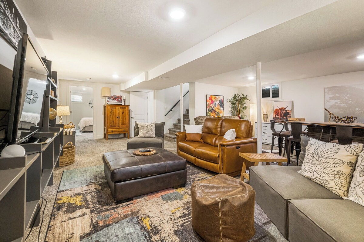 Enjoy the ultimate getaway with a private hot tub, barrel sauna, 500 sq. ft. gym + Peloton, two fire pits, and a fenced-in yard for outdoor fun. Unwind in the master bath’s luxurious tub or watch your favorite shows on the outdoor TV. Located in a safe, walkable neighborhood. EV charger This is our primary residence, but we love to share it with our guests when we are out of town. We hire a professional cleaning team to ensure the house is ready for our guests. The Kitchen is fully stocked with anything you would need to cook a home meal (Air fryer, Instapot, endless baking dishes, Nespresso, Keirug, Coffee maker etc) There are 4 TV's throughout the house. Also, there is a massive game cupboard with over 50 games to play with the family. Relax outside under the patio with the fire going and heat lamps (if needed), out by the fire pit, in our jacuzzi or down in the large basement watching a show or playing on the large game table. The neighborhood is very safe and perfect for taking a dog on a walk. There is a beautiful park 1 block away complete with jungle gym and walking path. There is an amazing French bakery called Detour .5 miles away and a great Family-friendly restaurant called Esters a 5 min walk away. This is our primary residence, but we love to share it with our guests when we are out of town. We hire a professional cleaning team to ensure the house is ready for our guests. The house is equipped with everything you need for a comfortable stay. Our prices include all fees. No hidden fees.