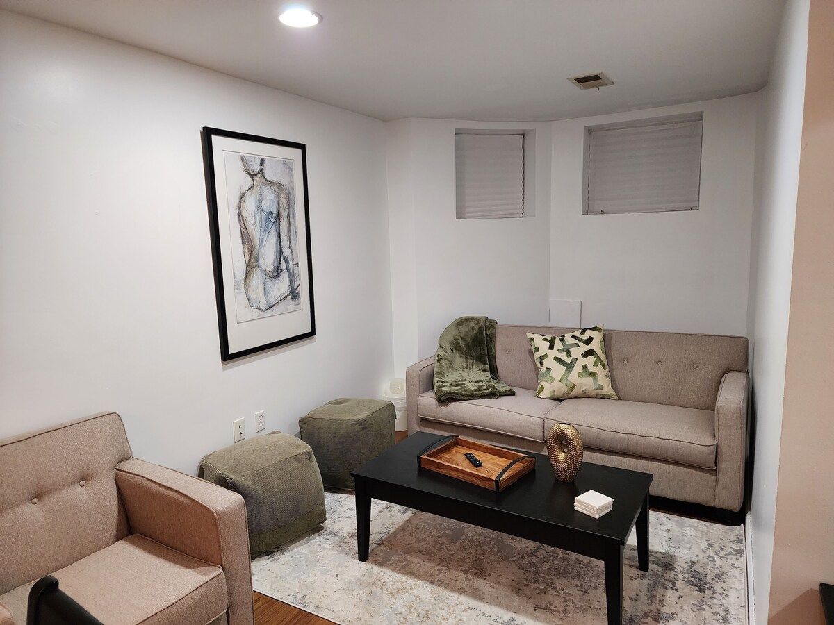 Relax with friends and family in historic Bloomingdale. This comfortable one-bedroom basement apartment is located in a historic residential neighborhood, not far from the emerging U Street Corridor. The apartment features a full kitchen, washer and dryer, and access to WiFi in addition to other amenities. On-street parking is available on the block. There are several restaurants located near the unit that feature Italian, American and Asian cuisines. For those who are looking for a short or long-term rental as a traveling medical professional, the unit is located close to five major hospitals including Children's National Medical Center,the Veterans Administration Hospital, Washington Hospital Center, National Rehabilitation Hospital and Howard University Hospital. The unit is also located close to Catholic and Howard University. Our prices include all fees. No hidden fees.