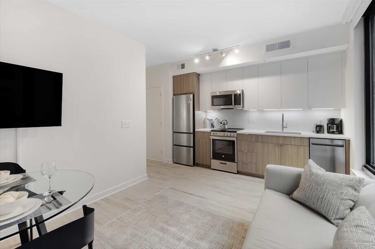 In Central D.C NoMa neighborhood, this new city-center building offers luxurious amenities and a sunny, modern living space. It is perfect for business or leisure stays. Highlights include: • Upscale kitchen, white quartz countertops, undercabinet lighting, and plank style flooring • Rooftop pool & grilling area • Spa-style fitness center with yoga, spin, and CrossFit • Access to Marriot Rooftop bar • Minutes from U.S Capitol • Near public transport, I-395, & more Revel in the ideal apartment in an ideal location. Whether you are touring DC or on business, this brand new apartment is the perfect home base for your trip. Surrounded by a variety of eateries, parks, and major government installations, Living at Revel is an awesome location. This gorgeous condo features a comfortable sleeping space complete with plush bedding and a walk-in closet. Get a restful sleep in with the bedroom blackout shades and smart locks by Latch that offer privacy, convenience, and security. In the bathroom, you’ll find high-class glass-walled showers and elegant fixtures. For your convenience, we provide towels and linens. Having a night in? The food options are endless here. Living at Revel first floor provides Ted’s Bulletin – a colorful eatery – and Uncorked – a contemporary wine, spirits, and craft beer shop. Don’t want to leave the Apartment? Cook up a storm on the on the white quartz countertops using the stocked up cabinets with the undercabinet lighting and enjoy a meal at the breakfast bar on the kitchen island. Relax on the couch while enjoying modern features, sleek finishes and open floor plans. The fast Wi- makes work seem like a breeze and provides time to stream your favorite series. When you book the apartment, you book the building too. Enjoy the city views from the sprawling rooftop deck with pool, grills and indoor/outdoor seating. With the direct access from rooftop lounge to Marriott hotel rooftop bar, life cannot get better. Inside, the amenities are just as fabulous. A massive fitness center accompanied by yoga and spin studios bring wellness to the forefront. With the various social lounges and business centers, there is a place to go for every occasion. Unit Amenities: At a glance, the apartment amenities include: • Full kitchen with dishwasher • Washer and dryer • High speed wireless internet • Linens and towels • 42” flat Screen TV Building Amenities: Complete building amenities include: • Rooftop deck with pool and Marriot bar access • BBQ grills and outdoor dining area • Fitness center • Yoga studio, spin studio and outdoor CrossFit training area • Social lounge with games, TV and entertainment space with bar • Dedicated second floor lobby with 24-hour concierge • Business center with printing station • Ground floor retail inside building • Connected to full-service Marriott® hotel with restaurant About the Neighborhood: Revel puts you in the heart of DC’s dynamic NoMa neighborhood, where there is a vibrant collective of business, culture, and recreation just minutes from U.S Capitol. Revel is close to Union Market, H Street and Capitol and gained its walk score of 94 with its Metro Red Line Access and close proximity to public transport. Explore the greater D.C. metro from this beautiful, modern apartment using its various transit options to get you anywhere you want to be. Getting Around: • Metro Red Line Access • Near public transport, I-395, & more Our prices include all fees. No hidden fees.