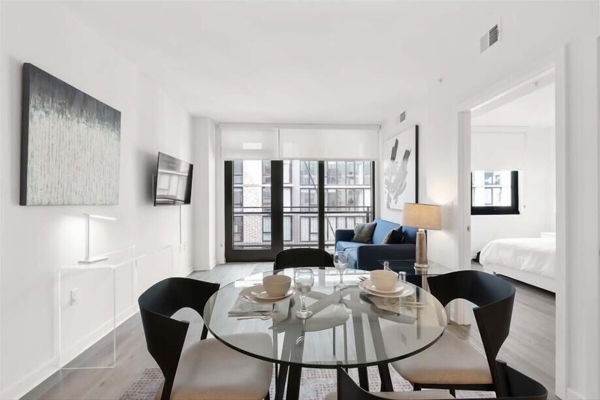 In Central D.C NoMa neighborhood, this new city-center building offers luxurious amenities and a sunny, modern living space. It is perfect for business or leisure stays. Highlights include: • Upscale kitchen, white quartz countertops, undercabinet lighting, and plank style flooring • Rooftop pool & grilling area • Spa-style fitness center with yoga, spin, and CrossFit • Access to Marriot Rooftop bar • Minutes from U.S Capitol • Near public transport, I-395, & more Revel in the ideal apartment in an ideal location. Whether you are touring DC or on business, this brand new apartment is the perfect home base for your trip. Surrounded by a variety of eateries, parks, and major government installations, Living at Revel is an awesome location. This gorgeous condo features a comfortable sleeping space complete with plush bedding and a walk-in closet. Get a restful sleep in with the bedroom blackout shades and smart locks by Latch that offer privacy, convenience, and security. In the bathroom, you’ll find high-class glass-walled showers and elegant fixtures. For your convenience, we provide towels and linens. Having a night in? The food options are endless here. Living at Revel first floor provides Ted’s Bulletin – a colorful eatery – and Uncorked – a contemporary wine, spirits, and craft beer shop. Don’t want to leave the Apartment? Cook up a storm on the on the white quartz countertops using the stocked up cabinets with the undercabinet lighting and enjoy a meal at the breakfast bar on the kitchen island. Relax on the couch while enjoying modern features, sleek finishes and open floor plans. The fast Wi- makes work seem like a breeze and provides time to stream your favorite series. When you book the apartment, you book the building too. Enjoy the city views from the sprawling rooftop deck with pool, grills and indoor/outdoor seating. With the direct access from rooftop lounge to Marriott hotel rooftop bar, life cannot get better. Inside, the amenities are just as fabulous. A massive fitness center accompanied by yoga and spin studios bring wellness to the forefront. With the various social lounges and business centers, there is a place to go for every occasion. Unit Amenities: At a glance, the apartment amenities include: • Full kitchen with dishwasher • Washer and dryer • High speed wireless internet • Linens and towels • 42” flat Screen TV Building Amenities: Complete building amenities include: • Rooftop deck with pool and Marriot bar access • BBQ grills and outdoor dining area • Fitness center • Yoga studio, spin studio and outdoor CrossFit training area • Social lounge with games, TV and entertainment space with bar • Dedicated second floor lobby with 24-hour concierge • Business center with printing station • Ground floor retail inside building • Connected to full-service Marriott® hotel with restaurant About the Neighborhood: Revel puts you in the heart of DC’s dynamic NoMa neighborhood, where there is a vibrant collective of business, culture, and recreation just minutes from U.S Capitol. Revel is close to Union Market, H Street and Capitol and gained its walk score of 94 with its Metro Red Line Access and close proximity to public transport. Explore the greater D.C. metro from this beautiful, modern apartment using its various transit options to get you anywhere you want to be. Getting Around: • Metro Red Line Access • Near public transport, I-395, & more Our prices include all fees. No hidden fees.