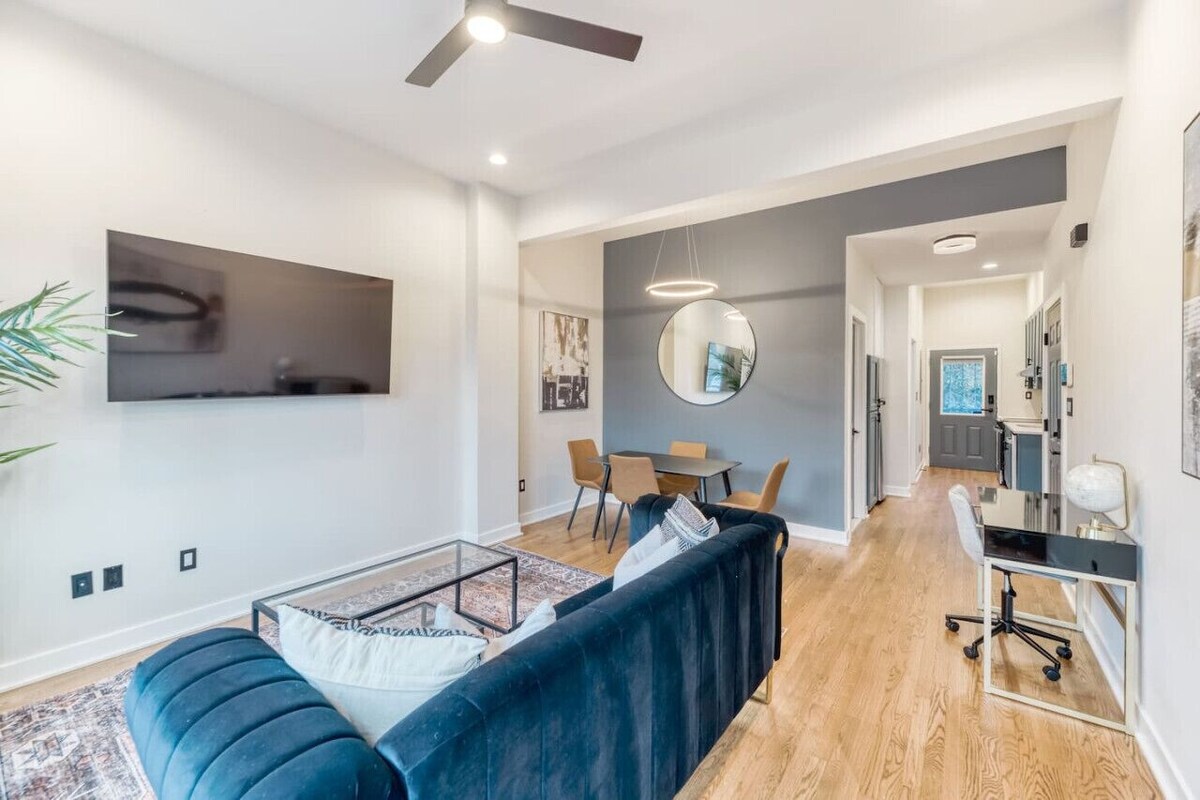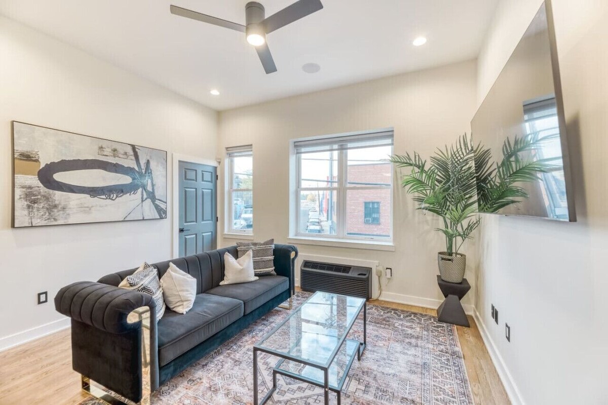 Ask about our concierge services! Welcome to Hi-Tech Condo! This condo is a great place to unwind during your trip. It is located in the Ivy City neighbor and only a few blocks from Target, Mom's Grocery Story, Kick Axe/Throw Social, coffee shops and restaurants. Hi-Tech Condo is a short drive to the National Mall [10 mins] & Union Market [5 mins]. ASK ABOUT OUR CONCIERGE SERVICE! From pre-arrival grocery delivered to rental car reservations, tour discounts to restaurant reservations, nothing is too big or small to ask. This quaint 1 bedroom, 1 bath top floor condo boosts tons of natural light and is an oasis to escape to after exploring the nation's capital. This unit has an open concept living room, dining room, and kitchen. There is access to a full-size washer and dryer in the unit. The kitchen is fully stocked, so you can wake up to make a fresh cup of coffee or tea, or make breakfast before a day of tours. Guests have access to the entire condo We are just a call, text, or message away to ensure your stay is perfect. This house is built prior to 1960 which means that the basement will be the coldest and the top floor will be the warmest. In an effort to ensure everyone staying at the property is comfortable, we provide portal/ceilings and portable heat sources This location offers ample, free street parking. It would be best to use a vehicle or ride share. The bus stop is approximately 0.1 miles away. This unit is tech savvy. There are instructions on how to use the kitchen faucet and shower head to avoid confusion. There is also bluetooth speakers thorough the unit in the ceilings. Our prices include all fees. No hidden fees.