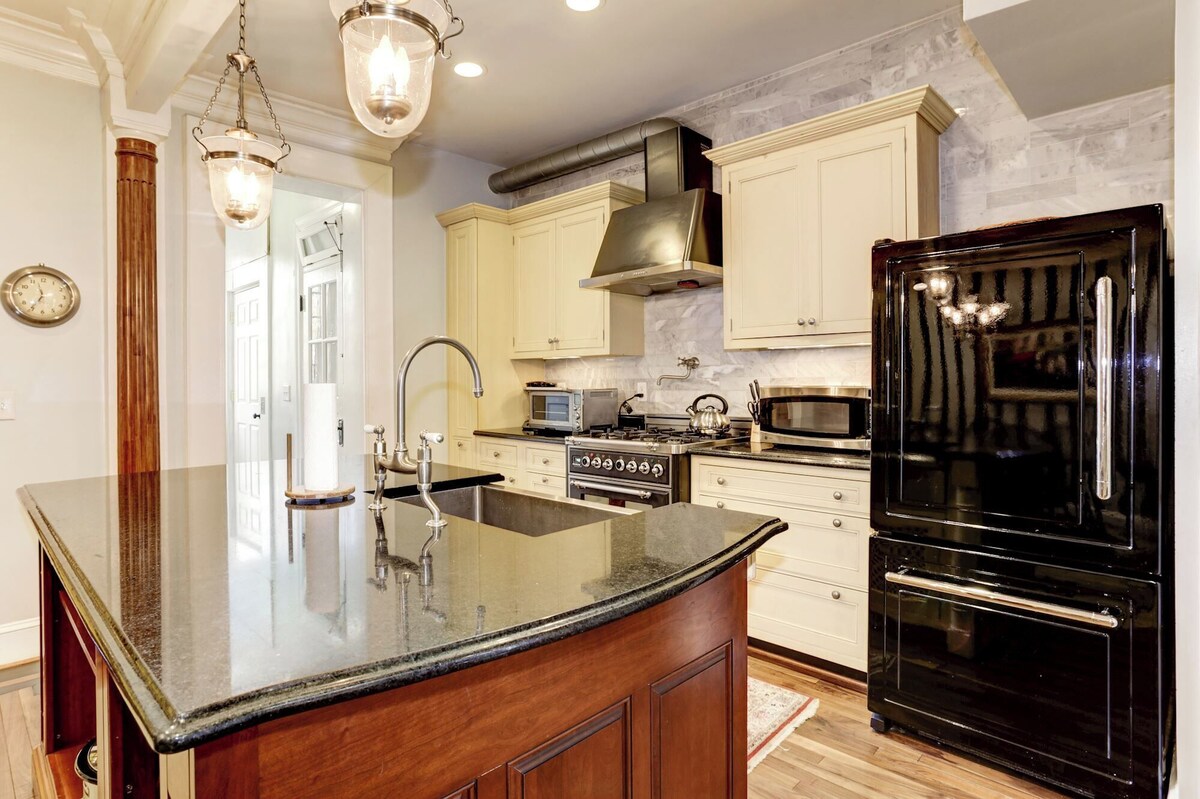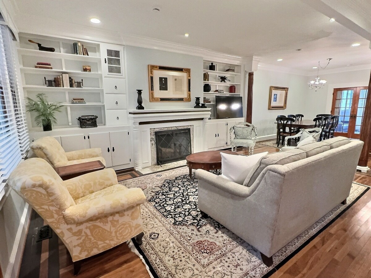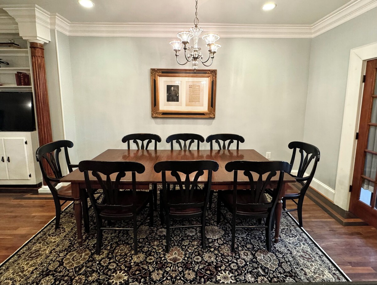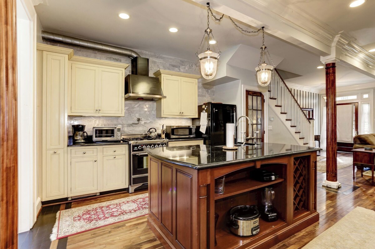 Welcome to your perfect urban getaway in our elegant 4-bedroom, 2.5-bath historic row house in Woodley Park. This beautifully renovated home blends historic charm with stylish design, offering cozy comfort and modern amenities in a safe and secure setting. Just steps from the Metro Red Line and within walking distance to the National Zoo, Adams Morgan, and Dupont Circle, it’s the ideal choice for families and groups seeking a memorable and worry-free stay. Enjoy spacious bedrooms, a fully equipped kitchen, a private front porch, high-speed Wi-Fi, a Smart TV, central AC, and on-site parking. Book now for a worry free and unforgettable DC experience! The Space This spacious two-story house boasts 4 bedrooms, 2 full bathrooms, 1 half bathroom, and a thoughtfully designed main floor. The interior is decorated with stylish furnishings and tasteful decor, ensuring a relaxing and inviting atmosphere. Living Room: The living room features a comfortable sectional sofa, four cozy chairs, a large smart TV where you can log into your own subscriptions, and plenty of natural light. It's the perfect spot to unwind after a day of exploring the city. Kitchen and Dining Area: The fully equipped kitchen has everything you need to prepare delicious meals, including modern appliances, cookware, and utensils. There's also an inviting dining area that seats eight. Private Office: Located on the main floor, the house includes a private office with a dedicated workspace, perfect for remote work or study. The office features a comfortable queen-size memory foam pull-out couch, ideal for relaxing or taking breaks during your workday. Bedrooms: Master Bedroom: Features a queen bed and an en-suite bathroom. Bedroom 2: Has two twin beds that can be converted to a king. Bedroom 3: Includes a twin bed. Bedroom 4: Features a queen bed. Note that you have to walk through Bedroom 3 to get to Bedroom 4, but a pocket door between the two provides privacy. Bathrooms: The house features two full bathrooms and one half bathroom: Full Bathrooms: Bathroom 1: Located in the master bedroom, features a shower. Bathroom 2: Located in the hallway, shared by Bedrooms 2, 3, and 4. Retains a historic charm, features a classic tub, with premium toiletries, fresh towels, and ample space. Half Bathroom: A convenient half bathroom is located on the main floor for easy access. Amenities High-speed Wi-Fi Central heating and air conditioning Washer and dryer Private parking for two vehicles Smart TV with streaming services where you can use your own subscriptions Complimentary coffee Good quality shampoo, conditioner, and body soap provided Essentials Provided: Toilet paper, paper towels, sheets, bedding, detergents, and bath towels Outdoor Space Relax on the front porch, complete with comfortable seating. It’s the perfect spot to enjoy your morning coffee or unwind in the evening. Please note, there is no backyard or grill available at this property. Access Guests have private access to the second and third floors of the house. The basement is not included in the rental. Please be aware that there are two well-behaved dogs that live in the basement. Pet Policy Small dogs are allowed on a case-by-case basis, with an additional fee applied. Please inquire in advance if you wish to bring a dog. Location Situated just one block from the Woodley Park Metro on the Red Line, this home offers unbeatable convenience for exploring the city. It’s just three metro stops to Metro Center, providing easy access to many of Washington, D.C.’s top attractions. Woodley Park is centrally located, making it a short walk to the National Zoo, Adams Morgan, and Dupont Circle. Despite being in the heart of the hustle and bustle, it is located on a quiet street, providing a peaceful retreat. The vibrant neighborhood features popular restaurants, cafes, shops, and public transportation options, ensuring you'll have everything you need within easy reach. Nearby Attractions: Nightlife: Explore the lively nightlife in Adams Morgan and Dupont Circle, known for their eclectic mix of bars, clubs, and entertainment venues. Smithsonian National Zoo: Just 4 blocks away, the zoo offers a wonderful day of family-friendly fun and wildlife viewing. Grocery Store Options Convenient grocery shopping options are close by: Safeway and Harris Teeter: Located in Adams Morgan, both offer a variety of groceries and essentials. Whole Foods: Located in Georgetown, known for its high-quality and organic products. Trader Joe’s: Located in Glover Park, offering a wide selection of affordable and unique groceries. Historic Charm Built in the early 20th century, this home retains much of its original character, including charming architectural details, hardwood floors, and vintage-inspired fixtures. Experience the best of both worlds with the historic charm of this beautiful home combined with modern comforts. Guest Access Guests have full access to the second and third floors of the house and the front porch. We provide a self-check-in option for your convenience. Other Things to Note: No smoking No events, parties, or loud noise Quiet hours: 9 PM on weekdays and 10 PM on weekends Our prices include all fees. No hidden fees.