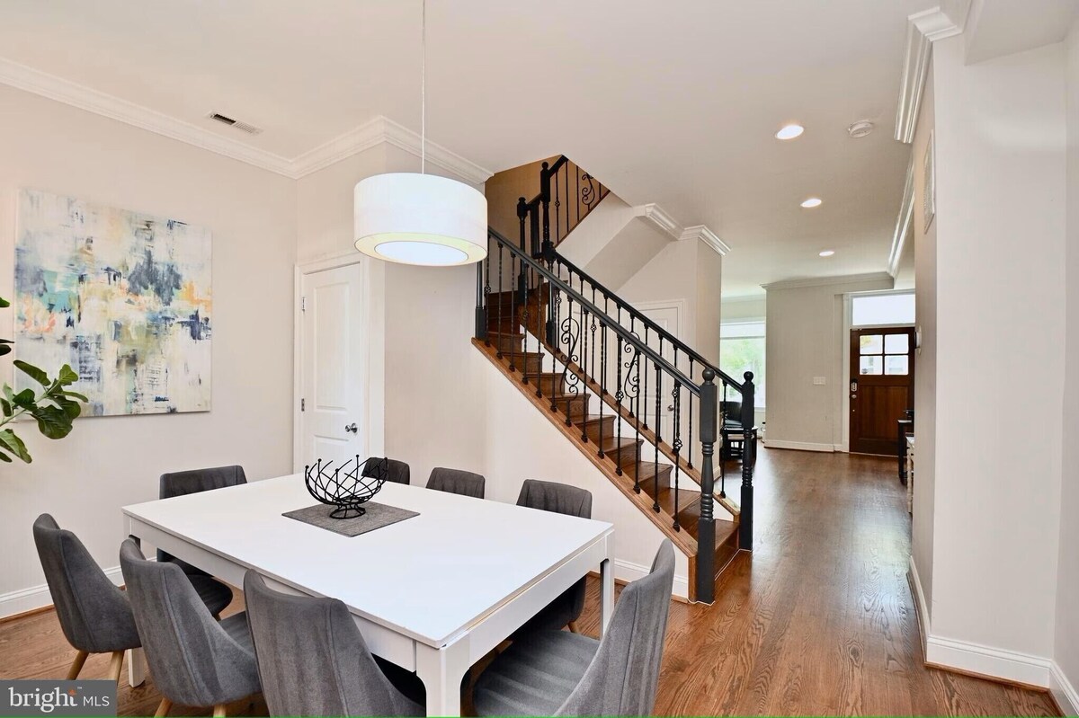 We invite you to spend a good night at our 5-bedroom, 3.5-bath rowhouse, just a mile drive from the magnificent white dome, US Capitol! Nestled in the heart of DC, commuters will appreciate the proximity to Union station and bus routes. You can also take a 15-min walk to the Union Market District, which boasts an amazing selection of food from deserts like Laduree Paris, to coffee nesters like Unido and award-winning dining restaurants. Not to forget, you can indulge in some of the city's best shopping experiences there. Harris Teeter and CVS are short walks from the home. Our beautiful home at NE DC is a mix of contemporary and comfort and is equipped with all necessary amenities for you to enjoy the stay. Our open kitchen layout across the beautiful kitchen island is cherry on the top. Our home also extends to a sizeable patio with outdoor seating. The Space: -Free personal spacious parking at the rear of the house! It's very rare in such a good location in Washington DC! - Automated Smartlock Check-In - Lighting fast and uninterrupted across the three floors 1000 MBPS WiFi - Professionally cleaned and sanitized. We believe in quality and cleanliness. The house is always cleaned to an exceptional level which gives you the best ever short-term rental experience! - Easily sleeps 16 People. - Home Office - Two smarts TVs with Free Amazon Prime & Netflix Subscriptions - Board games and Children Playground - All nightstands equipped with USB charging ports and stylist alarm clocks - Free In-Unit Washer & Dryer with free Detergent Pods & Dryer Sheets - Refrigerator, Microwave Oven, Keurig Coffee Maker with Free Coffee Pods, Toaster, Tea Kettle, Air Fryer, Cookware, Dinner Set and Fully Stocked Kitchen - Barbeque Grill and equipment - Brand New Kitchenware Set with every possible piece that you may need! - Travel Size Toiletries (Body Wash, Body Soap, Shampoo, Conditioner, Lotion, Toothpaste) - Zinus 12 Inch Comfortable Memory Foam Mattress - Brand New High Quality Linens for Ultimate Comfort - Brand New Soft & High Quality Body Towels, Hand Towels, Wash-clothes - Comfortable Memory Foam Pillows including Body Pillows & Throw Pillows - Explore beautiful wall mirrors and abstract art around the house - Hair Dryer - Bathtub - Kids & Pet Friendly Highlights: - Just a mile drive from Capitol Hill! - Great Location on a Quiet Road. Just minutes walking distance from everything! - Private parking available at the rear of the property and Ample Free Street Parking - Two blocks away, and 10 mins walk to the most happening Union Market District - Located within walking distance of the National Arboretum - Several pet friendly parks in the neighborhood Outdoor Patio: - Beautiful Private Patio with Barbeque Grill, Table & Chairs Our prices include all fees. No hidden fees.