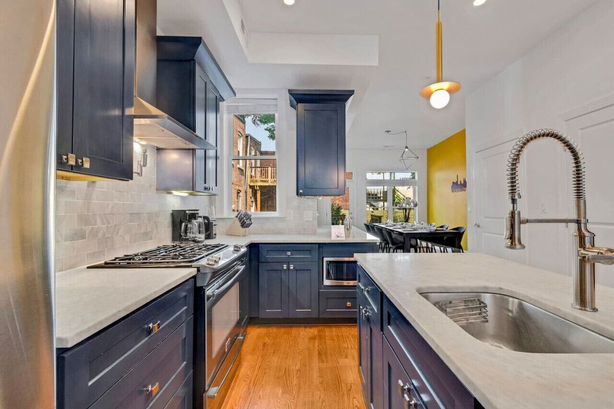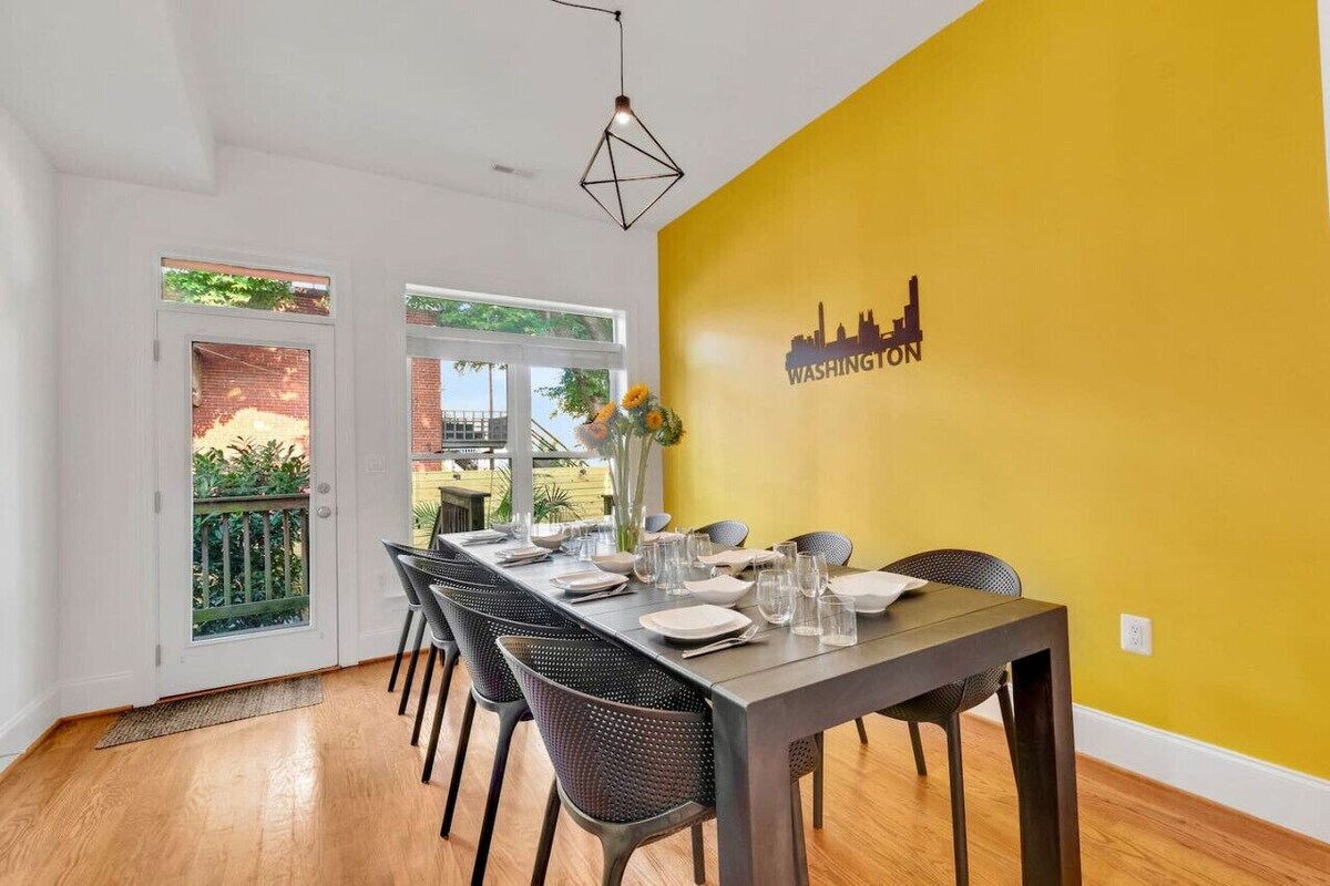 Welcome to Our Newly Renovated Rowhome in the Heart of Washington, DC Perfectly located near the Convention Center and top attractions, our spacious, modern townhouse offers the ultimate blend of luxury and comfort. Ideal for groups of up to 10, this home features an open floor plan, a fully equipped kitchen, expansive dining and living areas, a private patio with a grill, and dedicated workspaces—perfect for family gatherings, friend get-togethers, or business stays. The Space: This bright and airy 2-story home is filled with natural light and boasts sleek, modern furnishings with thoughtful details throughout. Sleeping Arrangements: Bedroom 1 (2nd Floor): King bed, smart TV, ample closet space, desk. Bedroom 2 (2nd Floor): Queen bed, smart TV, ample closet space. Bedroom 3 (2nd Floor): Queen bed, smart TV, desk. Bathrooms: 2 full bathrooms, 1 with bathtubs, featuring marble countertops. High-quality hand soap, body wash, shampoo, and conditioner are provided for your convenience. Living Areas: Main Level: A bright, expansive living room perfect for relaxation or entertaining. Dining & Kitchen: Main Level: A large, fully equipped kitchen and a spacious dining area, perfect for hosting dinners or events. Outdoor Space: A large private patio with a grill, perfect for al fresco dining or a quiet evening under the stars. Connectivity: Fast Wi-Fi throughout the home, perfect for work or streaming. Guests have complete access to the entire home, including the garden-level suite, which features private front and back entrances as well as internal access through a lockable door. The property is equipped with smart locks for easy, self-check-in. We value your privacy and want you to feel completely at home during your stay. Although we won’t be on-site, we’re just a message away if you need anything—whether it’s local recommendations, assistance with the home, or answers to any questions. We’re here to ensure you have a smooth and enjoyable stay. Whether you're here for work or leisure, you'll appreciate the easy access to top attractions, convention center, city center, local restaurants, bars, and public transportation. Located between the vibrant Shaw and Bloomingdale neighborhoods, you'll be close to: DC Convention Center: Just 1.3 miles away, a major venue for conferences and events. Howard Theatre: A historic venue offering live music and performances, only 0.7 miles away. U Street Corridor: About 1 mile away, this area is famous for its nightlife, dining, and cultural history. The National Mall: Approximately 2 miles away, home to monuments, museums, and iconic landmarks. The United States Capitol: Just 2.1 miles away, an essential visit for history and politics enthusiasts. Shaw-Howard University Metro Station: Only 0.9 miles away, providing easy metro access across the city. LeDroit Park: A beautiful, historic neighborhood for a leisurely walk, just 0.5 miles away. Union Market: A trendy food hall with gourmet vendors, located 2 miles away. We aim for every guests stay to be nothing less than perfect. Your request to stay at this property confirms you will comply and agree to the following: • No parties, pre-games, or events. Visitors limited to four additional guests not identified in the reservation. • Quiet hours are in effect from 11PM to 7AM every day. Respect the neighbours please. • Loud speakers are not allowed for playing loud music outside at any time. • Shoes are recommended to be removed inside the house. • No smoking allowed. Smoking inside the house will result in a $1,200 penalty and the actual remediation expense. • Additional overnight guests beyond the reservation request will incur a fee of $50 per person per night. • Unauthorized late checkouts past 11:00 AM will incur a fee of $400 per each extra hour, as well as a supervised exit by our cleaners. • Unauthorized pets not identified in the booking request will incur the pet fee, plus a $300 penalty. • Any unusual mess left behind that requires a deep cleaning will result in an additional fee of the actual expense charged by the cleaners. Our prices include all fees. No hidden fees.