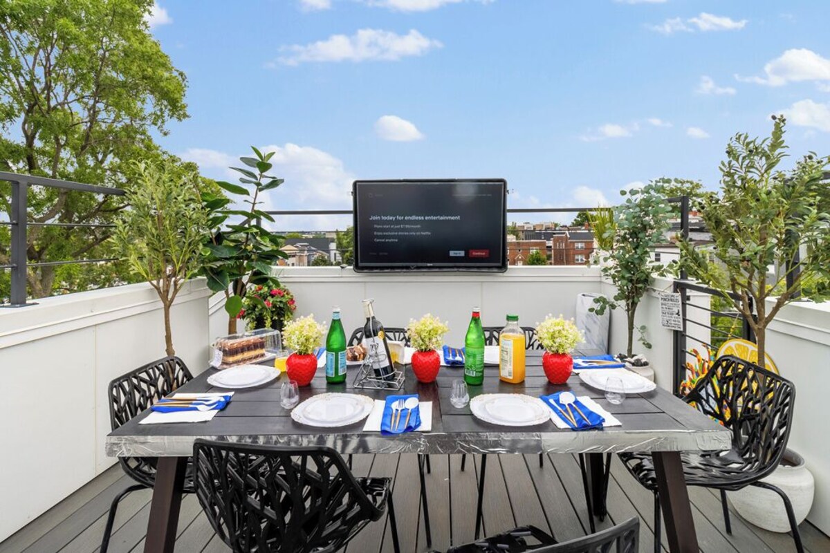 About this space Nestled in the historic Trinidad neighborhood of Washington DC and a 15-minute drive from the iconic National Mall, this 3BR freshly renovated condo boasts an unbeatable location. Within minutes you can dine at a myriad of restaurants on H street, explore the National Arboretum, or indulge in a shopping extravaganza at Union Market Mall! When you return, a 1412 sq. ft interior awaits, complete with HDTVs in each room, 1 GB/s Mbps Wi-Fi & access to rooftop patio with stunning views of the city! The space For those who want to be in the midst of all the buzz and action, with access to culture, history, and FREE access to world class museums and iconic American landmarks, then our charming multi-story condo is the place to be! Let the adventure kick off the moment you step in, where you’ll be greeted with a large open concept space uniting the living, dining, and kitchen zones for a vibe that screams fun and excitement. Allow yourself to sink into the plush couch in the main living room and binge-watch your favorite shows by logging into Netflix, Amazon Prime, Hulu, and YouTube TV! Or, rally the troops for an epic board game showdown on the rustic dining table for some friendly competition. And when you need a change of scenery, step out onto the balcony to get a breath of fresh air with a warm cup of coffee in your hand. As you continue, you’ll discover a space infused with pure luxury and elegance; with chic wall decorations, designer hardwood flooring, and top-of-the-line furnishings & fixtures enhancing the overall aesthetic of the space. But that’s not all! Feel the excitement build up as you uncover a variety of amenities and activities to partake in at the property and the surrounding area, making our home the perfect destination for your next city break getaway here in Washington DC: ✓ Make your way to the rooftop patio, where a dining table for 6 awaits, along with an HDTV to keep you entertained and unbeatable views of the Washington Monument that will leave you in awe. ✓ Start your day off on the right note with a steaming cup of joe made from our complementary Keurig coffee maker and take a sip while out on the balcony. ✓ Turn the comfort level up a notch and ignite the indoor electric fireplace while catching up on your movies and shows in the living room. ✓ Capital Bikeshare, a bicycle sharing system in DC, is a mere 8-minute walk from your doorstep! Rent a bike from here and make stops at inspiring destinations such as Kingman And Heritage Islands Park (~11-minutes), Kenilworth Park & Aquatic Gardens (~25-minutes), Anacostia River Walk Trail (~15-minutes) and more! ✓ If you're around for the weekend, be sure to visit the H-Street FreshFarm Market, where you'll find a variety of offerings like conventional and organic produce, grass-fed meats, pastured eggs, fresh-baked goods, locally roasted coffee, pickles, krauts, sandwiches, flatbreads, and more (~10-minute walk). ✓ No car? No problem! There's a bus stop just steps from your door at Montello Ave NE & Owen Pl NE, while the NoMa-Gallaudet Metro station is only a 20-minute walk away. ✓ Want to stay in shape? Head over to the Trinidad Recreation Center, where you’ll find a collegiate-sized gym, turf field, indoor fitness center, and even a pool & ping pong table! (~9-minute walk). Kitchen and Local Restaurants As your appetite begins to stir, drift towards the upscale kitchen, characterized by a granite top island bar and stainless-steel appliances. The open layout facilitates effortless movement and flow, while the spacious countertops, a sleek backsplash, and sharp knife collection allowing you to chop, prep and sauté with ease. Whether you’re an experienced cook or a beginner in the kitchen, you’ll discover all the essentials to prepare breakfast, lunch, or dinner using our: • Farmhouse sink • Air fryer • Blender • Instant pot • 36-inch gas stove • Pots and pans • Oil, salt and pepper • Dishwasher for quick and easy clean up • Microwave • Stainless steel refrigerator • Plates, bowls, cups, glasses and silverware Should cooking not be on your agenda, treat your tastebuds to a great selection of international and local cuisines – all within a 10–15-minute walk, drive or uber drive away. Tempting options await, including: ★ Toki Underground: Specializing in Japanese-Taiwanese fusion cuisine, notable dishes include Taiwanese Curry Chicken Ramen, Pork Dumplings, and Bao Buns. ★ Stable DC: This restaurant offers Swiss-American cuisine, with popular dishes such as Raclette, Fondue, and Venison. ★ Dumpling Hot Pot Beyond: Known for its Chinese hot pot and dumplings, popular dishes include Soup Dumplings, Spicy Fish Broth, and Salt and Pepper Prawns. ★ O-Ku: A Japanese restaurant offering dishes like the Emperor Roll, Spicy Tuna Roll, and signature Omakase. ★ Laos in Town: Specializing in Laotian cuisine, top dishes include Laab Gai (chicken salad), Sai Oua (Lao sausage), and crispy fried quail. ★ La Buena Empanada: Known for its Argentine empanadas, favorites include Beef Empanadas, Spinach & Feta, and Sweet Corn Empanadas. ★ Shewa Ethiopian Restaurant: Specializing in Ethiopian cuisine, popular dishes include Lamb Tibs, Misir Wot (lentils stew), and the Shewa Meat Combo. ★ Cafe Fili: Serving Mediterranean cuisine, popular dishes include Lamb Shawarma, Chicken Shish Tawook Kabob, and a Mezze Trio with hummus and pita. ★ Manna Korean BBQ and Dosirak: Specializing in Korean BBQ and Dosirak (lunch boxes), notable dishes include Beef Bulgogi Dosirak, Bibimbap, and Spicy Soondubu (tofu stew). ★ Cafe Berlin: This German restaurant offers dishes like Wiener Schnitzel, Jägerschnitzel, and Sauerbraten. Bedrooms and Bathrooms Get ready to sleep on cloud 9! Retreat to the privacy of your own room, a space designed with your well-being in mind. Whether you seek a quiet moment to immerse yourself in your favorite book by the soft glow of a dimly lit lamp 