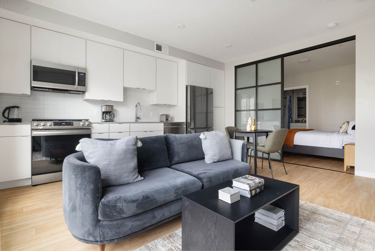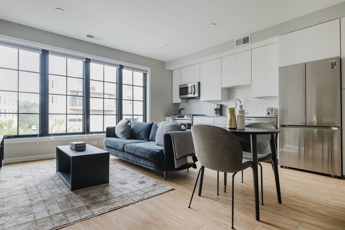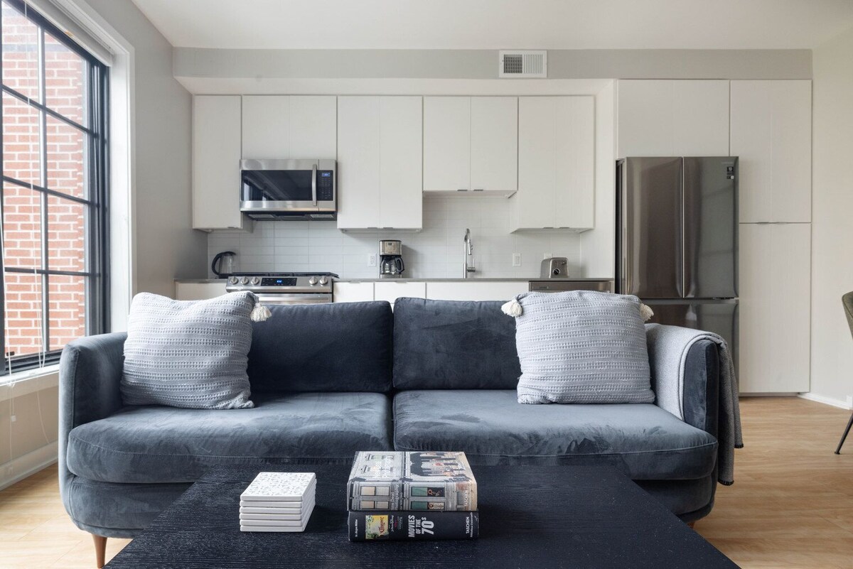 Show up and start living from day one in Washington, D.C. with this spacious one bedroom Blueground apartment. You’ll love coming home to this thoughtfully furnished, beautifully designed, and fully equipped Observatory Circle home. (ID #WDC963) Designed with you in mind Thoughtfully designed with bespoke finishes, modern furnishings, and a fully equipped kitchen, you’ll enjoy that “I’m home” feeling with this Blueground apartment. Whether you’re lounging in your lovely living room streaming the latest and greatest entertainment on the smart TV or premium wireless speaker, or getting some well-earned rest on the superior quality mattress with luxury linens, you’ll fall in love with everything this Observatory Circle apartment has to offer. This apartment also offers in-apartment laundry. Sleeping arrangements Queen Bed, 63in/160cm Amenities Building amenities unique to this one bedroom apartment include an on-site: - Dryer - Elevator - Washing machine - Parking - Pets allowed - Rooftop BBQ Arrival and ongoing support The entire apartment is yours to enjoy! Throughout your stay, you’ll have access to our Client Experience team through the Blueground App. You can schedule additional cleanings, submit maintenance requests, and view our neighborhood recommendations with just a few taps. We’ll share all details upon confirmation of your stay. Other things to note Building amenities may have an extra cost. This Blueground apartment has flexible lease options, allowing you to book it for one month, a year, or more. Pets are welcome, though weight limits and breed restrictions apply and may incur fees. Parking is offered based on availability and is subject to a fee. We take great pride in ensuring every photo displayed is shot in our own units with our actual furnishings. That said, we regularly refresh our decor and furniture arrangement, which may differ from what’s pictured. A security deposit of $500 is required at booking, which will be returned within 2-4 weeks after the check-out, minus any deductible damages. Our prices include all fees. No hidden fees.