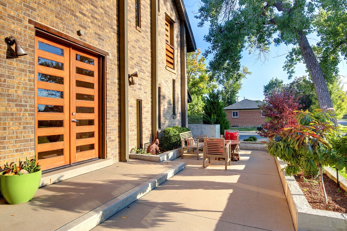 #HollyHouse is a labor of love, from tattered decommissioned church to custom space, filled with visual artists from CO+beyond. #HH regularly hosts performing artists/events business mtgs. Four bedrooms, from the grand lofted master, with a princess balcony facing the mountains, huge master bath with sunken tub, and professional massage table. Lofted ceilings soaring above give the feeling of sleeping in a bird's nest, as you look outside to the 60' cotton woods just beyond. Two main floor bedrooms, with new queen mattresses and beautiful art and appointments, each have a private half bath and share an oversized jack/jill shower. Above these 2 queen bedrooms, there is another loft with an oversized twin, couches and plenty spacious for yoga, with beautiful eastern light streaming in. Downstairs, is a large media room, big screen tv, a beautifully appointed bedroom with designer furniture (updated after pictures taken, so no current pictures of the gorgeous furnishings) and a walk in bedroom. There is also a large full bath, also updated after photos taken. The media room has long vintage modular couches and two very comfy queen beds, making for a total of 1 king, 5 queens, oversized twin beds and comfy couches that can be easily configured to accommodate 2. The kitchen has gourmet appliances (dacor gas range, liebher built in fridge, bosch and a walk in pantry with all you need for primo entertainment and family meals! An 8 part kitchen docuseries (Sacred Kitchen, Food is Thine Medicine) was filmed at #HollyHouse and the film crew, production team and culinary artists from around the world raved about the ease of working and filming in the amazing kitchen. The common lofted open spaces, inside and out, are wonderful for game nights, movies, chats by the fire pits (2), cooking and eating together. The yards are professionally landscaped, with plenty of room for lounging in hammocks, custom ipe bench, inspired by the Highline Trail furnishings (NYC). 10 can easily sit around the gas fire pit, across from the open kitchen. Above the garage is an observation deck that looks towards the City skyscape and mountains and is a beautiful place to watch the sun and moon rise and set! While you are only a stone's throw form downtown Denver, sitting in the North yard, you are in a private oasis, surrounded by 60-100 year old trees and 15trees planted over the last 4 years that define the professionally landscaped yards #HH sits on a sunny oversized lot in the Historic Park Hill neighborhood, immediately adjacent to City Park to the west (largest in Denver) and a quick downhill bike ride to downtown Denver, on the many e-bikes and scooters about. Park Hill has cafes, some of Denver's top new restaurants, parks, rec centers/pools, cafes, brew pubs, specialty markets and wine shops. Vintage shops and numerous music venues line storied Colfax Ave. (of On the Road, J. Kerouac, fame) on South edge. Perf. location for walk to local eateries; 5-15 min walk to best of Denver Hi-speed internet/work from home, ask about pets, events+ commercial uses #HollyHouse has it all. Beautifully appointed, down to the square inch, inside and out. ReImagin your self here! Guest access This listing is for the entirety of the primary home. There is a2 bed/1bath/full kitchen/w-d in-law apt. with entirely private entrance and yard on property that can be made available for larger groups, and is not made separately available to third parties. Other things to note Pets, events, and gatherings that exceed 10 additional (not overnight) guests, and commercial uses, including for Commercial photog, must be approved in advance, including any associated additional fees, without regard to instant book. We look forward to hosting you and making sure #HollyHouse is all you need for your intended visit, whether for visiting family and friends, celebrating life's mile stones, business meetings and retreats, commercial uses, and beyond! ps. The most reoccurring feedback I get from guests is that #HollyHouse is even more spectacular than its presentation on line! Beautiful new furnishings and vintage delights fill the spaces that were not present when photos taken! Our prices include all fees. No hidden fees.