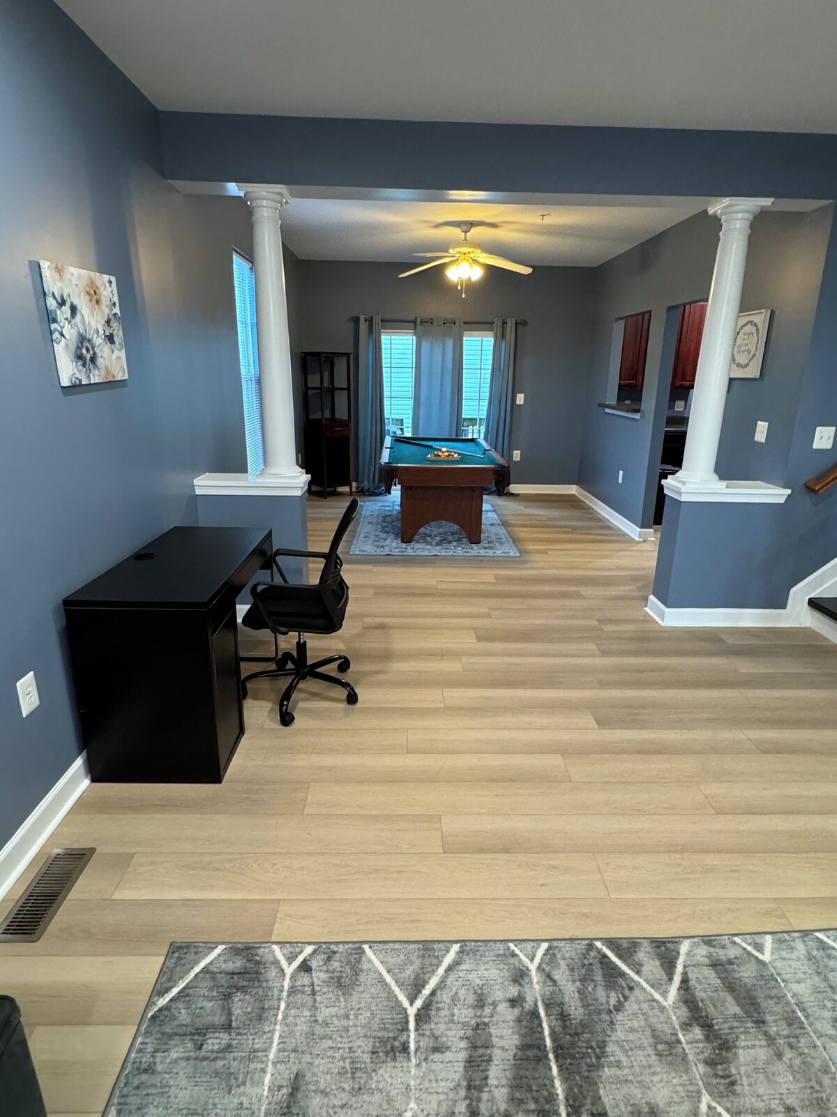 This spacious, end unit, brick front home offers 3 bedrooms and 2.5 baths, close to NW Stadium and short walk to bus & train. You’re greeted with beautiful colonial columns when entering the dining room. Enjoy a large living room with a large screen smart television. As an added bonus, there’s a game room. The open kitchen is inviting. The master bedroom has an en suite bath with tub, stand alone shower, and two walk in closets. The home includes a large laundry room and a great outdoor area. This home is set up for short and long term stays. Most people that book the home stay for lengthy periods of time. There is a full size washer and dryer, a full size refrigerator and 4 smart televisions (one in each bedroom and upstairs living room). There are three actively recording cameras overlooking the front, driveway, and rear of the home. All cameras are on the exterior of the property Comfortable Bedrooms with Queen beds Open Design Living Area Fully Equipped Kitchen Free Street Parking and driveway Absolutely No Smoking or Partying or there will be a $500 penalty imposed if this house rule is ignored. There is a strict NO PARTY and Smoking policy. Thanks for your understanding. Pets are allowed on a case by case basis. Our prices include all fees. No hidden fees.