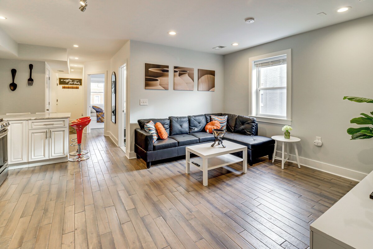 Pet Friendly w/ Fee | Recently Renovated | Walk to Bus Stops | 1 Mi to Union Market Explore the best of Washington, D.C., when you stay at this sleek 2-bedroom, 2-bath vacation rental! Visit the nearby United States National Arboretum or take the train or bus to the Smithsonian Institution. Later, unwind at the apartment and put a movie on the Smart TV. With a well-stocked kitchen, in-unit laundry, and fenced yards for pets, this property has everything you need! -- THE PROPERTY -- 5007242201002560 SLEEPING ARRANGEMENTS - Bedroom 1: 1 queen bed - Bedroom 2: 1 queen bed - Living Room: 1 sleeper sofa MAIN FEATURES - 2 Smart TVs - Breakfast bar - Shared backyard & front yard KITCHEN - Stove/oven, refrigerator, dishwasher - Microwave, toaster oven - Drip coffee maker (coffee provided), electric kettle - Dishware/flatware, cooking basics, spices - Trash bags/paper towels GENERAL - Free WiFi - Central air conditioning/heat - Linens/towels, hair dryer, complimentary toiletries - Washer/dryer, iron/board - Keyless entry FAQ - 2 exterior security cameras (facing out) - Pet fee (paid pre-trip) - Quiet hours (after 10:00 PM) ACCESSIBILITY - Single-story unit, located on 2nd floor - Stairs required to enter PARKING - Dedicated parking (1 vehicle) - Free street parking -- THE LOCATION -- - Bus stops down street - 1 mile to train station - 5 miles to Lincoln Memorial & John F. Kennedy Center for the Performing Arts - 3 miles to National Mall - 1 mile to United States National Arboretum & Union Market - 7 miles to Ronald Reagan Washington National Airport -- REST EASY WITH US -- Evolve makes it easy to find and book properties you’ll never want to leave. You can relax knowing that our properties will always be ready for you and that we’ll answer the phone 24/7. Even better, if anything is off about your stay, we’ll make it right. You can count on our homes and our people to make you feel welcome — because we know what vacation means to you. -- POLICIES -- - No smoking - Pet friendly w/ $50 fee (+ fees & taxes, 2 max) - No events, parties, or large gatherings - Additional fees and taxes may apply - Photo ID may be required upon check-in - Please observe quiet hours after 10:00 PM ADDITIONAL INFORMATION - This single-story unit is located on the 2nd floor and requires stairs to enter - Your safety matters. This property features 2 exterior security cameras: 1 camera is located in the complex hallway facing the building's main entrance, and 1 camera is located on the back of the building facing the back gate. The cameras are outward facing and do not look into interior spaces. The cameras are activated by motion and will record video while guests are in residence Our prices include all fees. No hidden fees.