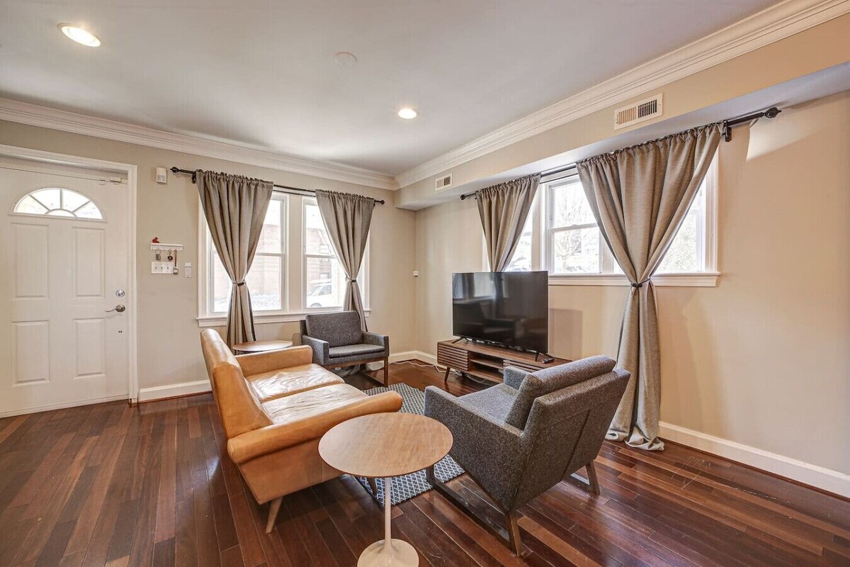 Discover a serene retreat in Eckington with this beautifully appointed and fully furnished private home! Enjoy ample natural light and a spacious fenced in big backyard. Experience fast internet and keyless entry. Our home features a well equipped kitchen, in-unit washer/dryer, and complimentary parking within the gated yard. Located near two Red Line metro stations, multiple bus routes, and Capital Bikeshare, you're just a short walk from Union Market or the vibrant heart of Bloomingdale. Property Highlights: - Homey 3-bedroom, 2.5-bathroom private home - Full granite kitchen with stainless steel appliances, - Yale smart locks for easy self-check-in and access - Fast Xfinity by Comcast internet - In-unit front-load washers and dryers - 55\ re delighted to welcome you into a piece of DC history! Please review and agree to comply with our House Rules before booking. Parking and Getting Around: A complementary gated private parking space. Street parking is available for additional car. Independent third-party parking spots may also be available on the SpotHero app. Lyft/Uber are just minutes away. We re confident you will, too. Thank you for choosing our home! Jeff and Stephen District Cottage • Self check-in with Yale smart locks after 4:00 PM. • If you arrive early and need to drop off your luggage, please feel free to stop by our home after 12:00 PM. Check-in: Smart locks will automatically grant access at 4:00 PM. Check-out: Smart locks will automatically revoke access at 11:00 AM. • I am here for you during your stay, but our level of interaction is up to you. Our home offers a self check-in/check-out process. You ll provide a link to our House Manual with Parking Information. There are also helpful notes posted throughout the home for your convenience. • If you have any questions during your stay, we are only a message away! Our neighborhood is cute and quiet close to the center of DC. We are just a short trip away from downtown, U Street, 14th Street, Union Market, Shaw and the H Street Corridor. Several small restaurants and coffee shops are within walking distance. Noma-Gallaudet University and Rhode Island-Brookland Metro stops (red line) are both about half a mile away. The red line offers access to the heart of DC including Union Station, Metro Center, and DuPont circle. Capital Bikeshare is just two blocks away. Take the G8 Bus on Rhode Island avenue straight into the heart of downtown. We are about 1.5 miles from Union Station for Amtrak, regional trains, and busses. 15 min car ride from Reagan Airport. Our location is also right off the MBT (Metropolitan Branch Trail), a great bike trail and running spot to get around the city. • This is our primary home. We ,