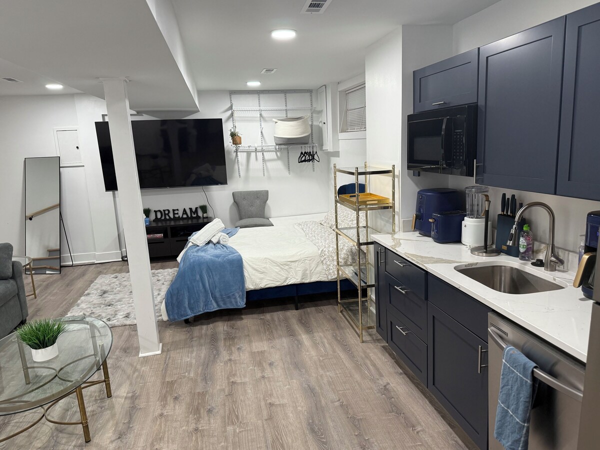 This Stunning single family home has everything you could want and MORE!! Amazing open concept kitchen with kitchen island, quartz countertops with waterfall edges, and high end S/S appliances. Top floor level also features HRDW lD floors throughout, upgraded lighting. The home hasTWO (2) kitchens and TWO (2) laundry areas. 3 BD, with ceiling fans, and basement studio apt. Master bedroom faces the rear. Natural lighting throughout, and an entire NEW renovation (Fall 2024)! In yard Parking pad. Outdoor surveillance and in home alarm system. Pets allowed on a case by case basis. The outside space displays a new deck and front porch with a large yard for your needs. The home is 6 miles from DCA airport and 1.4 miles from Potomac Avenue Metro Station (2 min walk to the bus stop). The home offers one large sectional (one in the upstairs living room), 3 queen sized beds, one trundle bed (two twin mattresses) and a queen sofa bed (in basement) plus queen air mattress. 5 smart large screen televisions