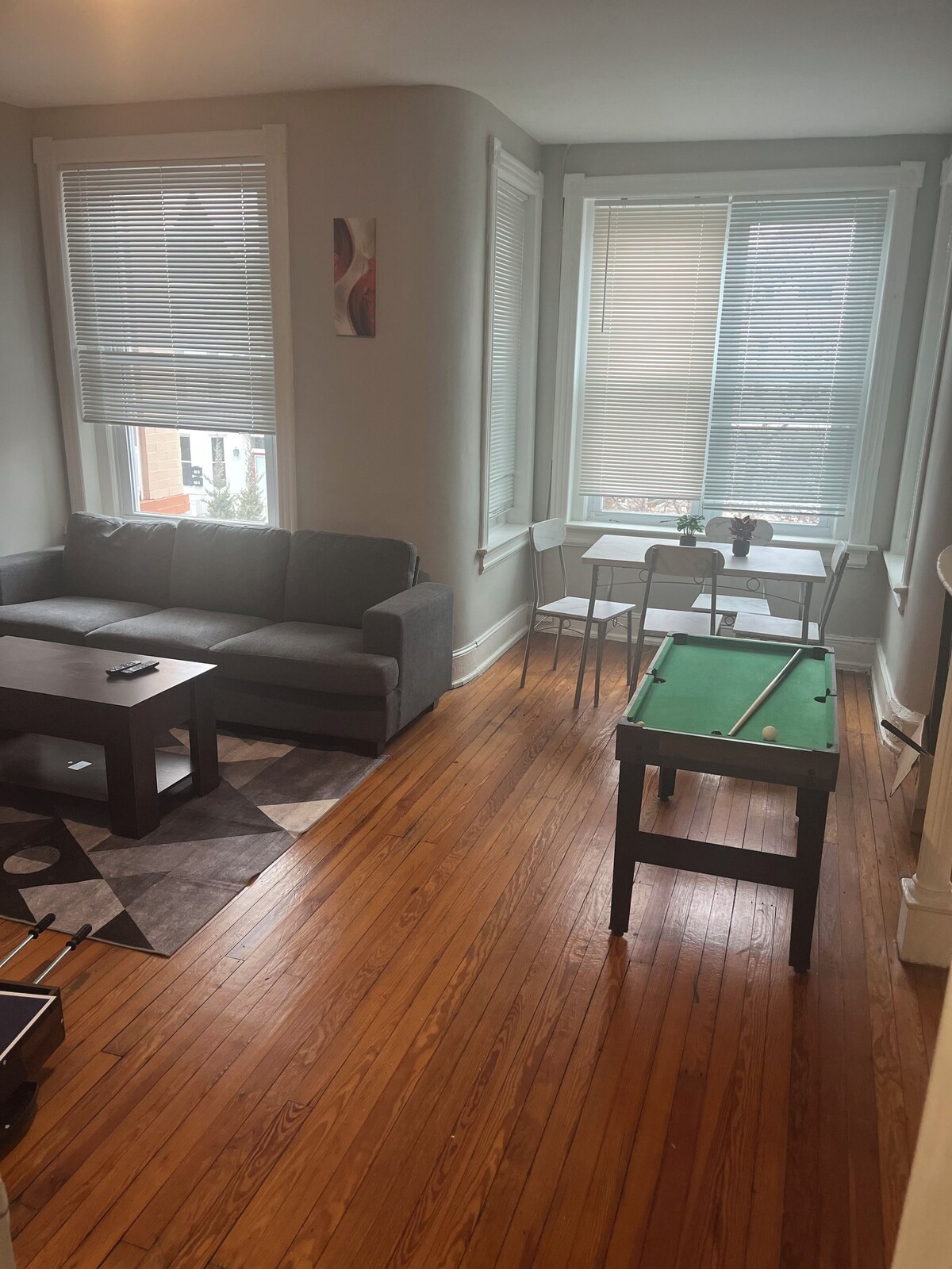 Come and stay in one of DC’s most notable neighborhoods, Bloomingdale! Featured in the series House of Cards, this primarily residential neighborhood has a small commercial center near the intersection of Rhode Island Avenue and First Street NW featuring bars, restaurants, and food markets. The home is a commuter’s dream with close proximity to The White House and the Capitol Building. A 4 bedroom one bathroom apartment located on two large floors nestled in a large Victorian multi-level building. The 4th bedroom is on its own floor. This home is set up for short and long term stays. Most people that book the home stay for lengthy periods of time. This home is set up for short and long term stays. Most people that book the home stay for lengthy periods of time. The unit features: 4 smart televisions 4 Queen beds 2 floors with very spacious attic level bedroom Open Design Living Area Fully Equipped Kitchen Free Street Parking Out of precaution, I remind all guests of the following rules for the home: -No parties or events are allowed. -No loitering is allowed around the property including the front steps. -No smoking of any kind is allowed in or around the property. -The front main door must be kept closed and shut tight at all times. Please do not allow strangers or anyone that is not in your group to enter the building. All guests have a code of their own to enter. There are actively recording cameras in the lobby of the building. All cameras are on the exterior of the property. Absolutely No Smoking or Partying or there will be a $400 penalty imposed if this house rule is ignored. There is a strict NO PARTY and Smoking policy. Thanks for your understanding. If any issues arise, please reach out to me so that I can do my best to resolve the issues. I'd like to have a chance to ensure the most pleasurable stay for you. Our prices include all fees. No hidden fees.