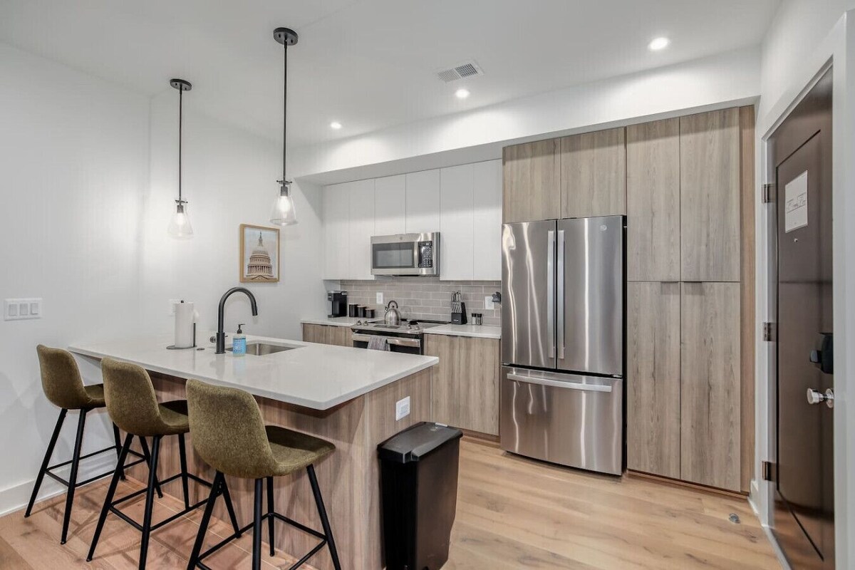 Located in the heart of historic Capitol Hill, this beautiful 2 bedroom/1 bathroom apartment with two Queen Beds and Queen pull out sofa is thoughtfully designed for work and play with incredible walkability to all that DC has to offer. Located just a block away from The Roost Food Hall, where guests can enjoy dining and drinks from local restaurants, or a 10 min stroll to the numerous restaurants and bars of the famous Barracks Row and Eastern Market, you’ll never run out of entertainment. Welcome to our beautiful 2-bedroom, 1-bath apartment in the heart of Capitol Hill! This apartment features a fully equipped kitchen, perfect for preparing meals during your stay, as well as an in-unit washer/dryer. The location is unbeatable—ideal for tourists or business travelers looking to experience all that Washington, DC has to offer. Guests can also walk just .2 miles to the Potomac Avenue Metro Station, which services the Blue, Orange and Silver lines and can quickly take you to the monuments, museums and numerous other DC attractions. We pride ourselves in being very responsive and can’t wait to welcome you to our nation’s capital. - Prime location near Capitol Hill, Eastern Market & the Yards - Sleek modern decor, plush linens, and fast internet - In-unit laundry, & grab and go coffee setup - Fully Equipped Kitchen - 2 Queen beds and 1 Queen sleeper sofa, 1 bathroom - In Unit Washer/Dryer - Smart TV - Electric Fireplace - 3 minute walk to Potomac Avenue Metro Station (.2 miles) - 20 Minute Walk to the Capitol Building Please note that there is 1 parking spot available to rent for $30/day which is available on a first come, first serve basis. Please message us for parking spot availability. LAST MINUTE BOOKING REQUESTS/EARLY/LATE CHECK IN/OUT Please message us for any requests to book last minute or any early check-in or late check-out requests. If available we can accommodate for an additional fee. LISTING ACCESS Please note that Unit 7 is located on the second floor and requires guests to walk up 1 flight of stairs when using the front entrance to the building. LISTING INTERACTION Feel free to message me with any questions! NEIGHBORHOOD Capitol Hill is a dynamic and historically rich neighborhood situated in the center of Washington, D.C. It is home to some of the nation’s most significant institutions, including the United States Capitol, the Supreme Court, and the Library of Congress. The area is also steeped in history, featuring iconic landmarks such as the Lincoln Memorial, the Washington Monument, and the expansive National Mall. Known for its cultural diversity, Capitol Hill boasts a vibrant arts scene, with numerous museums, galleries, and theaters. It is also home to Eastern Market, a beloved local spot offering fresh produce, handcrafted goods, and a variety of food vendors. The neighborhood showcases a blend of architectural styles, from stately historic rowhouses and elegant federal buildings to modern apartment complexes. Dining options in Capitol Hill are diverse and plentiful, with a wide selection of restaurants, cafes, and bars serving everything from traditional American dishes to international flavors. guests can walk a block to the high-end food court, the Roost, or explore a variety of dining options along Barracks Row, including a Michelin-rated restaurant, and other vibrant dining options. Throughout the year, Capitol Hill hosts a variety of community events, including the Capitol Hill Classic 10K, the Pottery on the Hill show by the Capitol Hill Arts Workshop, and the popular Capitol Hill Jazz Jam. Guests can also enjoy visiting Eastern Market, which we highly recommend on the weekends, with its bustling market, with food vendors, fresh produce and other local items for purchase. In addition, one can walk to Trader Joes for groceries, as well as numerous other retail establishments like CVS. In short, the apartment is in tremendous location for one to explore all that the nation’s capital has to offer! LISTING TRANSIT Walking: Capitol Hill is an easily walkable neighborhood, with many key attractions and amenities just a short stroll away from each other. Public Transportation: The area is well-served by public transit, with several Metro stations nearby. The Potomac Avenue Metro station is just a 3 min. walk from the property, offering quick access to other parts of the city through the Blue, Orange and Silver Lines. Additionally, several bus routes pass through the neighborhood, connecting to popular tourist spots. Bikeshare/Scooters: Cycling is a convenient way to get around Capitol Hill, with bike lanes and bikeshare stations scattered throughout the area. Lime and Bird electric scooters are also available for rent, offering a fun and efficient way to travel. Parking: Ample street parking is available around the perimeter of the property. We have 1 parking spot in the rear of the building that can be rented out for $30/day. This parking space is first come first serve so we cannot guarantee it will be available for your stay, please message us for parking spot availability or general parking questions/concerns. Rideshare: For a more convenient option, you can use rideshare services like Uber or Lyft to navigate the neighborhood without worrying about parking. LISTING NOTES Please check out our guide book for guest recommendations and feel free to reach out with any questions! Our prices include all fees. No hidden fees.