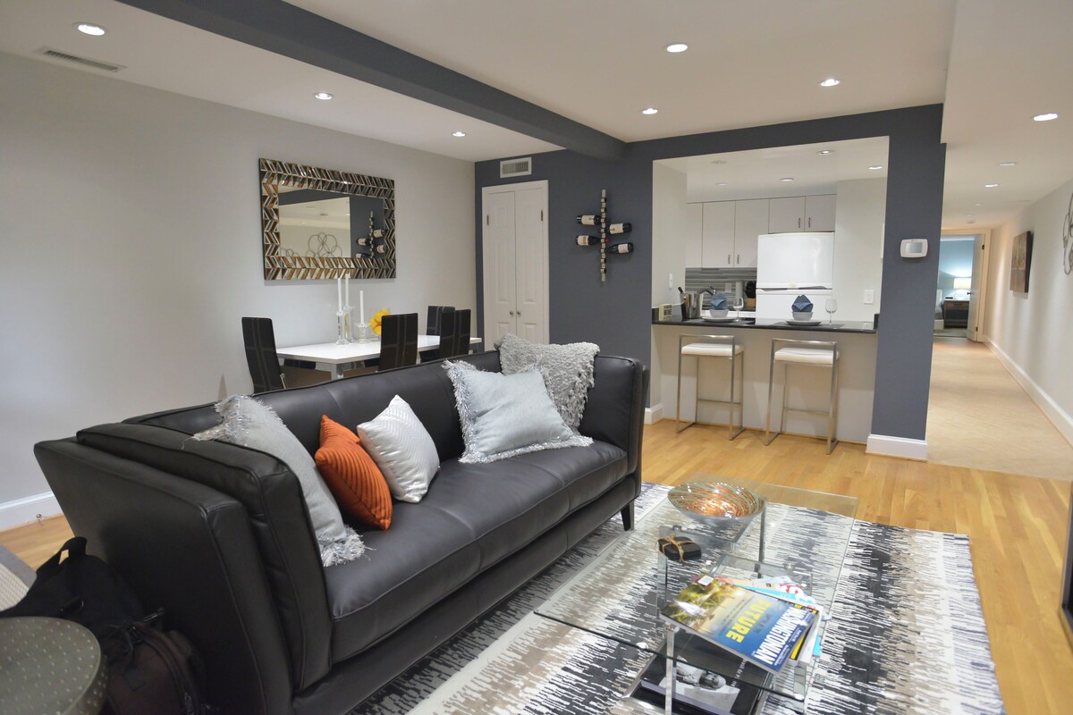 Unwind in Washington at this enchanting, professionally decorated townhome. Step into a space adorned with high-end furnishings, an open kitchen with breakfast bar, granite countertops, custom tile backsplash, and a convenient dishwasher. The home also offers a private in-unit washer and dryer, wood floors in the living room, and two HDTVs for your entertainment. The primary bedroom features a queen bed, while the second bedroom offers a comfortable double bed — perfect for family or friends. Parking: Available only with pre-approved vehicle type and model prior to booking. Additional charge: $12/day. Make your D.C. stay a soothing and memorable experience in this phenomenal property. Our prices include all fees. No hidden fees.