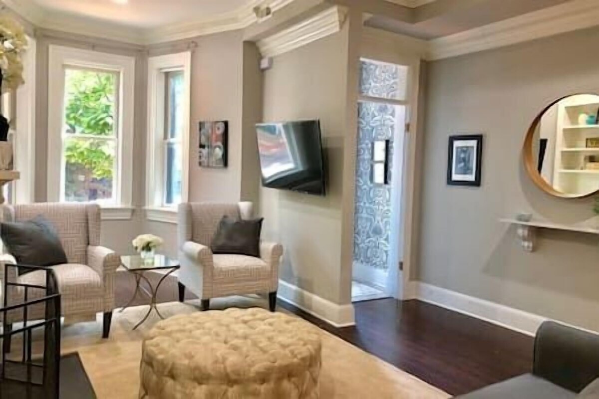 Timeless Charm Meets Modern Comfort in the Heart of Capitol Hill Discover the perfect blend of historic elegance and modern luxury in this beautifully restored 3-bedroom, 2.5-bath Victorian home in the heart of Capitol Hill. Whether you're visiting Washington, D.C. for a family getaway, business trip, or sightseeing adventure, this spacious retreat offers the ultimate comfort, convenience, and style—all within walking distance of the city’s most iconic landmarks. First Floor: Elegant Spaces for Relaxation & Gatherings Step into a bright, inviting living area, where classic architectural details meet modern comfort. The spacious living room features a sleeper sofa and a Samsung 55\ n Play, two high chairs, and a Skip Hop Baby Bath Tub upon request to make your stay stress-free. Second Floor: Restful Retreats for a Perfect Night’s Sleep Upstairs, unwind in three well-appointed bedrooms, each designed for comfort and privacy: Main Bedroom – A King bed, en-suite bath with a walk-in shower, and a 40" 4K Samsung TV with Roku and 100+ DIRECTV Stream channels. First Guest Room – Two Twin beds that can be converted into a King with a bed bridge kit, plus a 32" Roku Smart HD TV with 100+ DIRECTV Stream channels. Second Guest Room – A cozy Queen bed and a 32" Roku Smart HD TV with 100+ DIRECTV Stream channels. Each TV offers full access to streaming services, so guests can log into Netflix, Hulu, Disney+, and more for a personalized viewing experience. A shared full bathroom with a tub and a Samsung front-loading washer and dryer complete the second floor—perfect for extended stays. Outdoor Space: Private Patio & Alfresco Dining Step outside to a secluded, enclosed patio, featuring comfortable seating for four from Restoration Hardware & Crate & Barrel. Fire up the 5-burner gas grill (propane included) for a relaxing evening under the stars—perfect for dining, unwinding, or socializing. Seamless Access & Thoughtful Amenities ✔ Smart Lock Entry – Secure, keyless entry with a custom August smart lock keypad code. ✔ High-Speed Internet & Workspace – Gigabit-speed internet (1Gbps) with Wi-Fi 6, plus a dedicated desk & Brother printer/scanner/copier for business travelers. ✔ TV & Entertainment – 100+ DIRECTV Stream channels with sports, movies, and shows. ✔ Parking – On-street parking available for guests. ✔ Digital Guidebook – A detailed digital guide with local dining, shopping, and must-see attractions. ✔ Premium Essentials – Kitchenware, laundry supplies, and high-quality toiletries for a hassle-free stay. Unbeatable Capitol Hill Location – Walk to D.C. ll have seamless transportation to explore every corner of Washington, D.C. Designed for Families, Business Travelers & Explorers Whether you ,