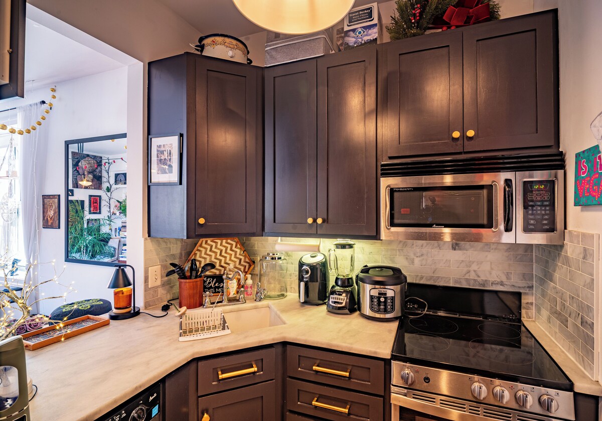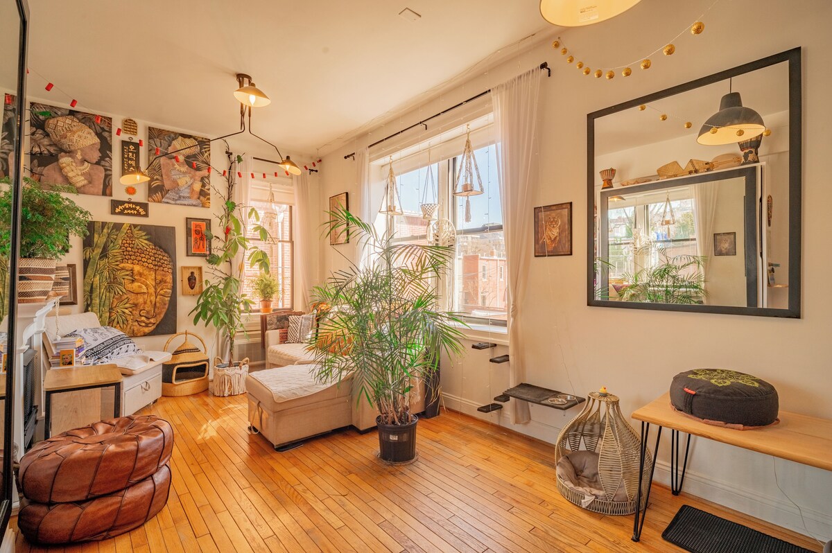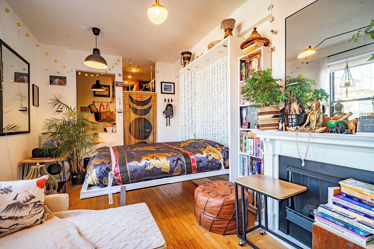 International-Themed Oasis in DC Quaint studio condo at the crossroads of Dupont Circle, Logan Circle, Adams Morgan, and U Street Corridor. Sleeps 4 with a Queen Murphy bed, convertible sofa, and chair beds. Cozy vibe with string lights and tree lamps. Ideal for monthly or long-term stays with Green & Red Line Metro access and storage unit included. ★★★Key Features★★★ ✓Bedroom Area ✓Bathroom ✓Fully Equipped Kitchen ✓Books and Reading Material ✓Living Area ✓Indoor Fireplace ✓Pet-Friendly ★★★Sleeping Arrangement★★★ ✓Bedroom Area: 1 Queen Bed ✓2 Sofa Beds ★★★Attractions Nearby★★★ 1. Meridian Hill Park – 0.5 km / 0.3 miles 2. The White House – 2.4 km / 1.5 miles 3. National Geographic Museum – 1.6 km / 1.0 mile 4. Dupont Circle – 1.1 km / 0.7 miles 5. Smithsonian National Museum of Natural History – 3.2 km / 2.0 miles 6. National Museum of Women in the Arts – 2.4 km / 1.5 miles 7. Lincoln Memorial – 3.9 km / 2.4 miles 8. Georgetown Waterfront Park – 3.2 km / 2.0 miles 9. Adams Morgan Neighborhood – 0.8 km / 0.5 miles 10. National Mall – 3.2 km / 2.0 miles These distances are approximate and can vary based on specific starting points within Washington, District of Columbia, United States and current traffic conditions. ★★★Bedroom Area★★★ The studio features a warm and restful sleeping area with a plush queen bed, ideal for a good night's sleep. In addition, there are two comfortable sofa beds that provide extra sleeping space for guests or family members, making it a perfect stay for both solo travelers and small groups. ★★★Bathroom★★★ The stylish bathroom is equipped with all the essential toiletries, offering a clean and modern space to refresh and rejuvenate. ✓Bathtub ✓Hair dryer ✓Shampoo ✓Conditioner ✓Body soap ✓Hot water ✓Shower gel ★★★Kitchen★★★ The studio includes a fully equipped kitchen with all essential amenities to prepare anything from a simple breakfast to a gourmet dinner. Whether you’re cooking or just making a cup of tea, you’ll find everything you need at your fingertips. ✓Refrigerator ✓Microwave ✓Freezer ✓Stove ✓Oven ✓Hot water kettle ✓Coffee maker ✓Wine glasses ✓Baking Sheet ✓Blender ✓Rice Maker ✓Coffee ✓Toaster ✓Coffee ✓Blender ★★★Living Area★★★ The main living space exudes warmth and personality, thanks to its rich wooden floors, colorful textiles, and artistic décor. Two large windows flood the room with natural light, creating a bright and airy atmosphere. A cozy indoor fireplace adds a touch of comfort for those cool evenings, and a curated selection of books and reading material invites you to unwind and relax in a tranquil nook. ★★★Additional Features★★★ ★Laundry: For added convenience, the studio includes an in-unit washer and dryer, allowing you to do laundry at your own pace during your stay. ★Entertainment & Work: Whether you're here to relax or stay productive, the studio has you covered. Enjoy your favorite shows on the TV, or curl up with a good book from the collection. For work, there is high-speed Wi-Fi and a dedicated workspace—perfect for remote work or studying. ★Heating & Cooling: Stay comfortable year-round with a reliable heating and cooling system that includes both air conditioning and an indoor fireplace for added warmth and ambiance. ★★★Private Entrance★★★ Private entrance offering privacy and easy access. ★★★Pet-Friendly★★★ Pet-friendly, so your furry companions are welcome too. ★★★What we provide★★★ ✓Limited supplies for cleaning e.g, dishwashing detergent, washing detergent, shampoo, gel , trash bags, sponge ✓Kitchen: drinking water, oil, coffee, tea, bags ★★★Nearby Facilities★★★ ★Supermarkets and Grocery Stores 1. Freedom Market Inc- 2 min walk (3 min drive) 2. Trader Joe’s- 6 min walk (3 min drive) 3. Streets Market and Cafe- 11 min walk (4 min drive) )★Healthcare Facilities 1. MH Inc- 13 min walk (4 min drive) 2. GERIATRIC MEDICAL H.C.- 11 min walk (4 min drive) 3. Woodley House Inc- 17 min walk (5 min drive) ★Sports and Fitness Centers 1. VIDA- U Street- 3 min walk (1 min drive) 2. MINT Gym & Studio- 9 min walk (3 min drive) 3. Livingwell Health Club ADA- 15 min walk (5 min drive) ★Restaurants and Cafes 1. Henry’s Soul Cafe- 5 min walk (2 min drive) 2. Colada Shop- 5 min walk (2 min drive) 3. Cafe Saint-Ex- 6 min walk (2 min drive) ★★★About the Location★★★ 1. Meridian Hill Park – A historic urban park featuring cascading fountains and statues. Approximately 1.0 km / 0.6 miles away. 2. The Mansion on O Street – An eccentric museum and hotel with themed rooms and secret doors. Approximately 1.6 km / 1.0 miles away. 3. Planet Word Museum – An interactive museum dedicated to language and words. Approximately 1.6 km / 1.0 miles away. 4. National Geographic Museum – Exhibits featuring photography and exploration. Approximately 1.6 km / 1.0 miles away. 5. Dupont Circle – A vibrant neighborhood known for its dining, shopping, and cultural attractions. Approximately 1.1 km / 0.7 miles away. 6. Adams Morgan Neighborhood – A culturally diverse area with eclectic nightlife and eateries. Approximately 1.3 km / 0.8 miles away. 7. The White House – The official residence of the U.S. President, offering tours and historical exhibits. Approximately 2.4 km / 1.5 miles away. 8. Smithsonian National Museum of Natural History – A renowned museum with exhibits on natural wonders. Approximately 3.2 km / 2.0 miles away. 9. Lincoln Memorial – A monumental tribute to President Abraham Lincoln. Approximately 3.9 km / 2.4 miles away. 10. Georgetown Waterfront Park – A scenic park along the Potomac River, ideal for walks and picnics. Approximately 3.2 km / 2.0 miles away. ★★★How to Get Around★★★ ★Bus Stops: 1. U St NW & Florida Av NW- 7 min walk (2 min drive) 2. 18 St NW &