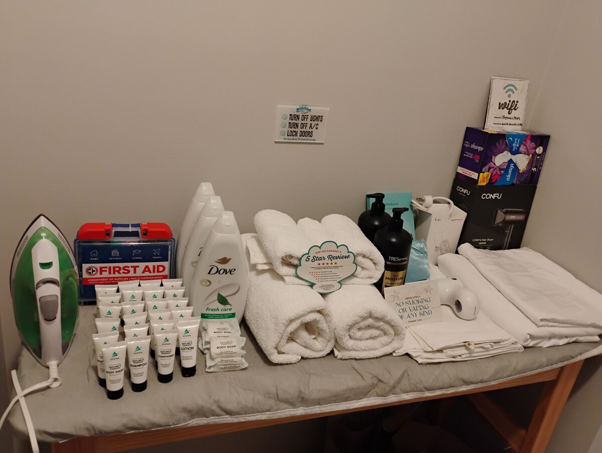 Check-out instructions: Remove personal items, remove leftover food and drinks, and take out the trash