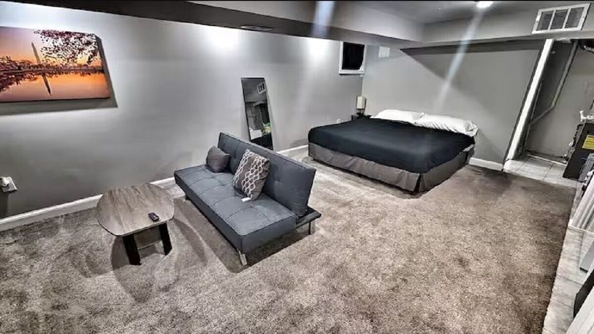 ★★★Property Highlights★★★ ✓ Located on a quiet residential street, providing a peaceful retreat during your stay. ✓ This 3-level home offers spacious accommodations for your comfort. ✓ TVs in every room for entertainment convenience. ✓ Master bedroom with ensuite bathroom for added privacy and comfort. ✓ Access to a private backyard for outdoor relaxation. ✓ Enjoy free unrestricted street parking, ensuring convenience for guests with vehicles. ✓ In-unit washer and dryer provided for easy laundry management during your stay. ★ Bedrooms ★ ✓ This house features 4 bedrooms and 2 full bathrooms spanning 3 levels. ✓ On the 2nd floor, the main bedroom offers 1 Queen-size bed, the second bedroom has 1 Full-sized bed, and the small third bedroom has 1 Twin-sized day bed. ✓ The lower level includes an open concept bedroom with a King-sized bed, a full in-suite bathroom, and a Futon couch for additional sleeping arrangements. ★ Living Room/Dining★ ✓ The living room includes 1 couch, providing comfortable seating for relaxation or entertainment. ✓ The dining room provides seating for up to 4 guests, perfect for enjoying meals together during your stay. ★ Washer and Dryer ★ ✓ In-unit washer and dryer located on the lower level for easy laundry management during your stay. ★ Parking ★ ✓ While private parking is not available, plenty of unrestricted street parking is accessible on the block with no restrictions. ★ Air Conditioning/Heat ★ ✓ Main air conditioning and heating controlled by a Nest thermostat on the first floor in the living room. ★ TV ★ ✓ Enjoy entertainment with Roku TVs in the living room and lower level, with guest mode enabled for personalized streaming services. When you first turn on the TV, it'll ask you for a date and time to automatically sign you out. Additionally, Fire TVs are provided in the bedrooms. ★ Public Transportation/Metro/Subway ★ ✓ The nearest Metro station, Benning Road, is located approximately 0.8 miles away, about a 15-minute walk from the property. NOTE: If you are looking to be able to walk to the bars and monuments, search in NW DC. This is a quiet area. This house offers a comfortable and convenient stay for guests, whether visiting for leisure or work, with its amenities and proximity to transportation. If you have a larger group, inquire about our other listings ranging from 1 bedroom up to 5 bedrooms across 2 separate units to accommodate your needs. ➡ Quiet Residential street ➡ 3 Level Home ➡ TV's in every room ➡ Master Bedroom with ensuite bathroom ➡ Access to Private Backyard ➡ Free Unrestricted Street Parking ➡ In Unit Washer and Dryer We have other listings! Ranging from 1 Bedroom up to a 9 bedroom mansion, we can accommodate your group. Send us a message to inquire! Our prices include all fees. No hidden fees.