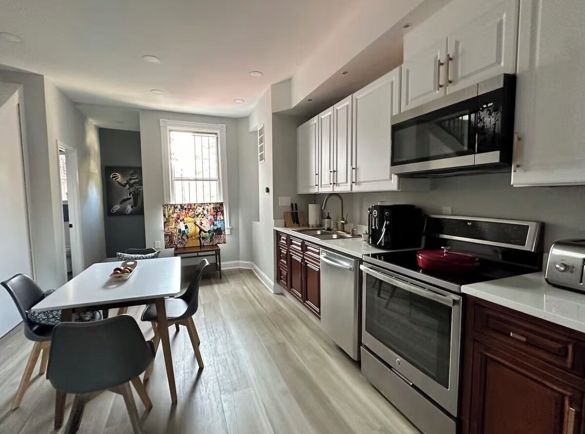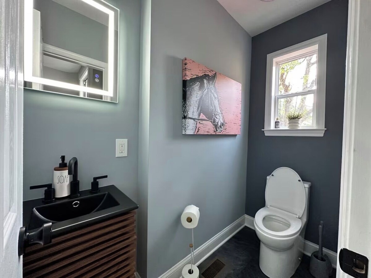 This 2-bedroom house is perfect for your escape to Washington. With 2 queen beds, 1 futon, and 3 bathrooms equipped with hair dryers and showers, guests will have an enjoyable stay. The living room also offers an additional sleeping space with a sofa bed. Stay connected with WiFi, stay comfortable with heating and AC, and take advantage of the washing machine and iron. Book now and enjoy everything this house has to offer.