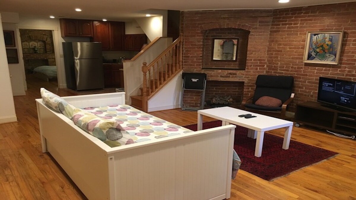 Spacious English basement apartment with living room, bedroom, kitchen, bath and garden patio access in one of the best neighborhoods of DC. Shopping and restaurants in Georgetown one block away. Less than 30 minutes walk to the White House and the Lincoln Memorial on the Mall. Busses stopping just outside the apartment take you to Dupont Metro station in five minutes or Downtown in 15 minutes. This English basement measures around 900 Sq. feet with windows in all rooms. Large enough for 3-4 people staying, the bedroom has a full-sized bed, the living room has a sofa/daybed with an 2 twin beds. The apartment is furnished and has a private entrance, fully equipped kitchen, A/C, washer and dryer, bathroom with steam bath, Internet, and cable TV. No smoking, pets allowed Our prices include all fees. No hidden fees.