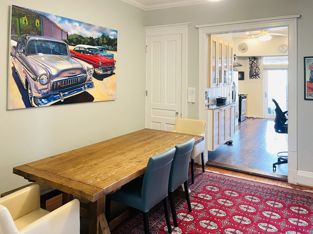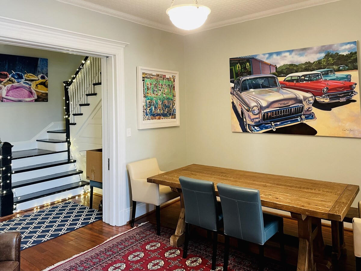 Fabulous house in prime location . Three night minimum. ( neg) This large private home is great for groups and family gatherings. The large bedrooms on the upper two floors provide plenty of privacy and elegance. The property is a three story townhouse on a quiet street. This is a private home and has a warm, cozy feeling. The first floor is a large living room, dining room with seating for 12, a half bath, and well-stocked kitchen. The second floor features a large primary sun-filled bedroom looking over the front street with private bath, and two additional bedrooms with a \ bath. The third floor has two additional large bedrooms with tall ceilings and views and a shared \ bath. There is one parking space in the back and street parking for an additional car. The house is very well-lit and has excellent views. We have a wonderful cleaning crew that will have the house in immaculate condition when you arrive. We have hosted many families and wedding parties. As one recent guest said, it's a \ If you need more space, please inquire about the lovely two-bedroom basement apartment, for an additional charge. Our prices include all fees. No hidden fees.