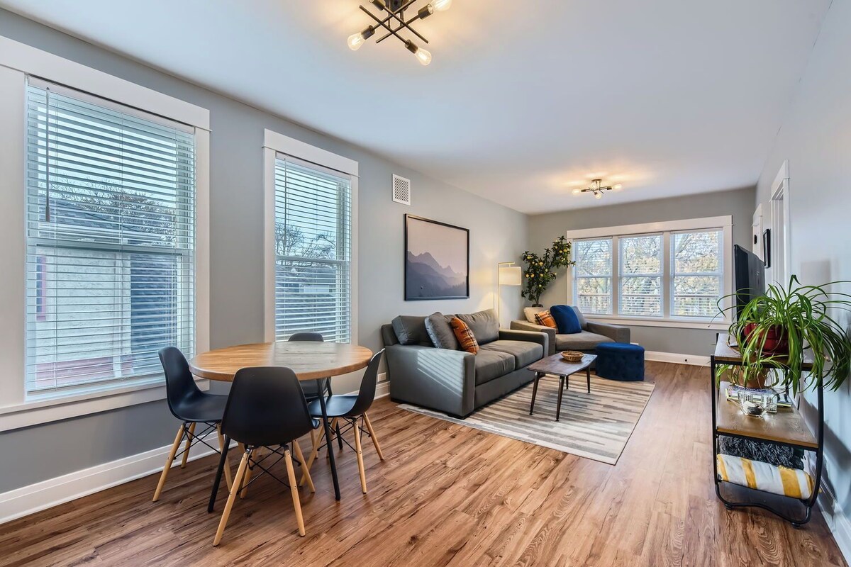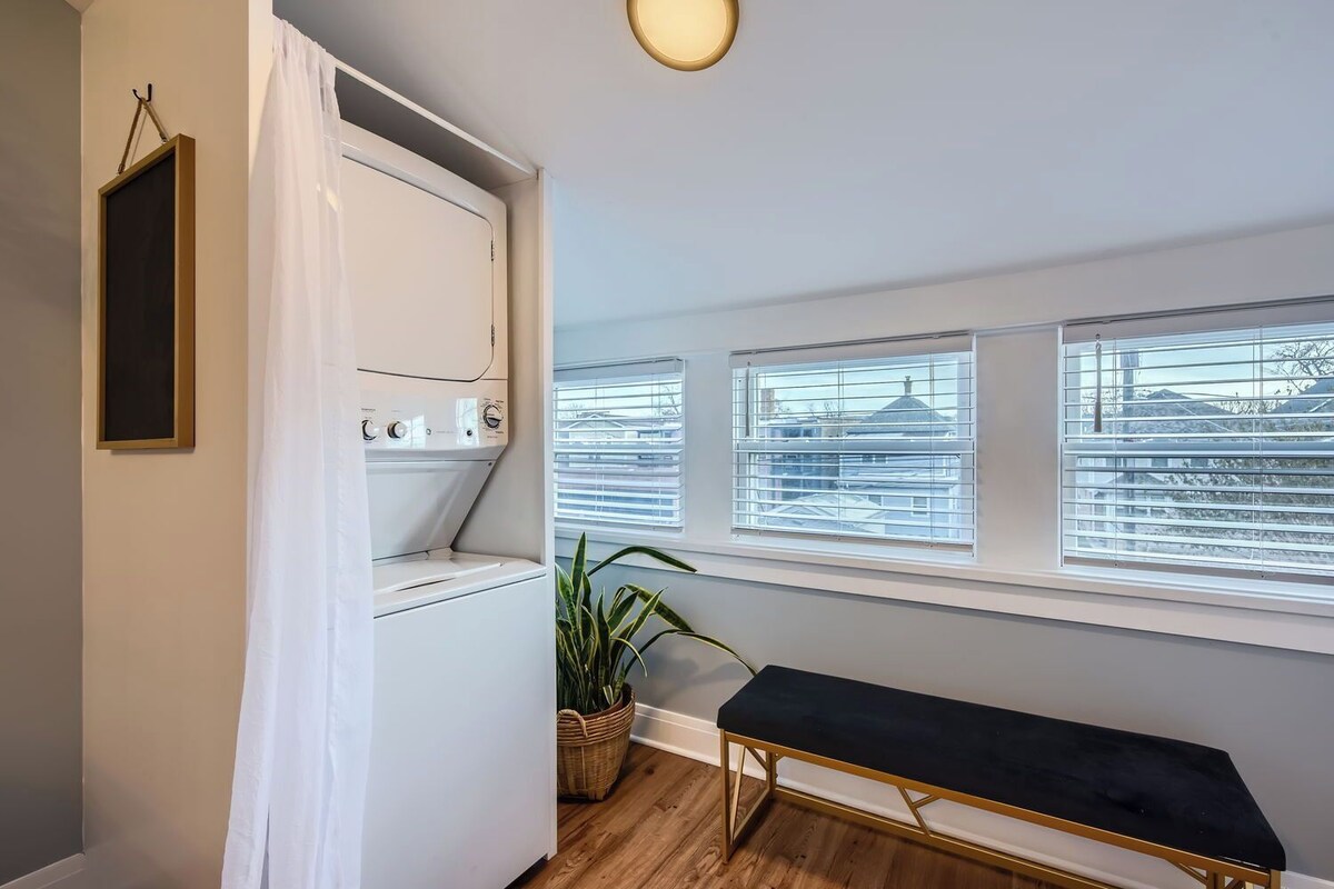 Looking for a spot during some Cubs games or a concert? Or just a lovely relaxing spot for a weekend in the city? YOU FOUND IT! Clean, tons of sunlight, newly renovated 2bd near restaurants & bars, in beautiful Irving/Horner Park (and straight 15min shot to Wrigley by bus or nearby FREE shuttle!). Fully stocked kitchen with new stainless steel appliances, in-unit laundry, TV with included streaming services, and internet. Huge shared yard (dogs welcome!), AND a private front porch! This apartment has a large living room, two bedrooms - one queen bed, one full bed (very comfortable, new mattresses!), and a big kitchen with an eat-at peninsula. Bathroom is fresh and clean with a new large soaking bathtub and a shower (with great water pressure!). The home is on a large extra wide lot so there is a huge shared yard, large patio and with the extra wide lot, sunlight pours in every window. Very short walk to Irving Park and Addison Busses, 15min walk to the train. Close to Portillos, local bars/restaurants, and Target. The neighborhood is very walkable, and gorgeous Horner Park is a few blocks north (dog park, green space, and a farmers market in the warmer months!). Our prices include all fees. No hidden fees.