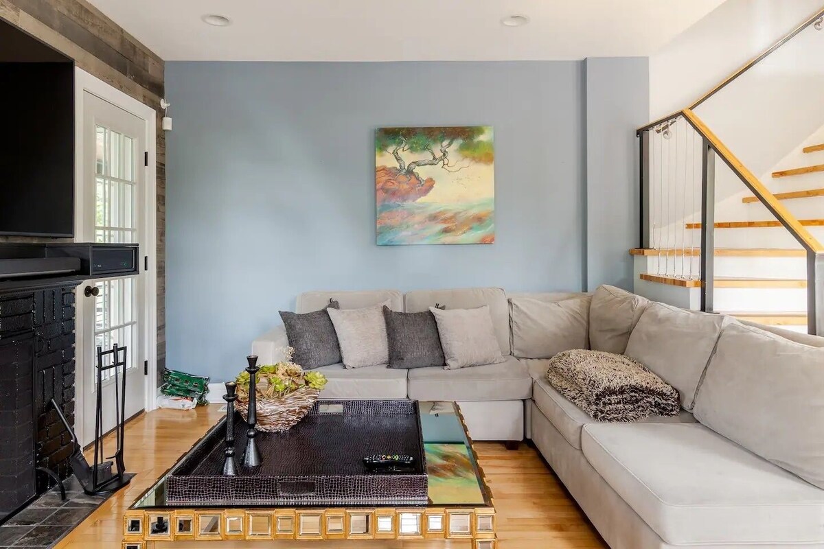 Enjoy our spacious home, where you'll stay in an exquisitely decorated, full of light, and fully equipped house. You'll see how much we love our home when you see our attention on its decor and comfort. Its location is in a family-oriented neighborhood where you can walk its beautiful streets while being greeted by our friendly neighbors. Read our past guest's reviews for all the great things they have to say about our home. **Quiet time starts at 11 pm, and no parties are allowed** GROUND FLOOR: Step into a welcoming open-concept space that seamlessly connects the living room, dining room, kitchen, laundry area, powder room, porch access, and a backyard oasis. Ascend the stairs to explore the second floor. LIVING ROOM: Relax in style with a 75-inch TV, a comfortable corner sofa, two leather chairs, and the cozy ambiance of a wood-burning fireplace. DINING ROOM: Gather around the dining table that accommodates six, enhanced by a bay window bench adorned with vibrant plants. KITCHEN: Discover a superbly equipped kitchen featuring a convenient coffee station, double-door refrigerator, pantry closet, and a double-door oven. Access to the enchanting backyard oasis is just steps away. LAUNDRY CLOSET: Make use of the front-load washer and dryer, complete with a selection of cleaning supplies for your convenience. PRIVATE BACKYARD OASIS: Step through the door to your own secluded outdoor retreat. SECOND FLOOR: Three bedrooms and two full bathrooms await you on the second floor. MASTER BEDROOM: Enjoy the luxury of the master bedroom, furnished with a king-size bed, two nightstands, a dresser, a spacious closet, and an attached master bathroom featuring a dual sink. OTHER BEDROOMS: Two additional bedrooms offer comfort and style, one with a king-size bed, spacious closet, nightstands, and a desk, while the other features a queen-size bed, dresser, nightstands, and a closet. FULL BATHROOM: A well-appointed full bathroom with a bathtub caters to the second-floor living space. THE BASEMENT: Please note that the basement is not part of the listing; it is a private unit. REVIEWS: Discover what our delighted guests have to say about their experiences. Take a moment to peruse the glowing reviews that make reserving our home an easy decision. What have guests said about our home? Read one example below: “This house is so amazing!!! This house was exactly as the photos in the listing had portrayed, with a clean and impeccably tasteful and gorgeous decor that appears professionally done. It is so beautifully designed that it appears as if it’s out of a magazine! This house was so stylish and well-planned that I took home ideas for decoration and design improvements of my own house. But not only is this house pretty, it is also quite comfortable, with cushiony couches and good-sized chairs, large tables, and nice beds too, and with plenty of room to spread out. The kitchen is large and well-equipped, with a large peninsula with which to gather around and cook together. The backyard is truly an oasis and exhibits such charm with all of the well-maintained and manicured potted plants and flowers, and awesome huge central (?magnolia) tree to provide some shade, and with its pretty white lights for the evening...I was just in love with it! The outdoor furniture provides comfortable seating options and the grill is large. The owners literally thought of everything! The hosts/owners of this house were extremely helpful, kind, and understanding of all of my needs, and really went out of their way to assure me we were welcomed and happy with the house and our entire experience! The house is very well-appointed and everything you will need (and more) is there. This house and its owner really made all of the difference in my trip experience!!! I will definitely be returning to stay at this house in the near future, as will my other family members.” Our prices include all fees. No hidden fees.