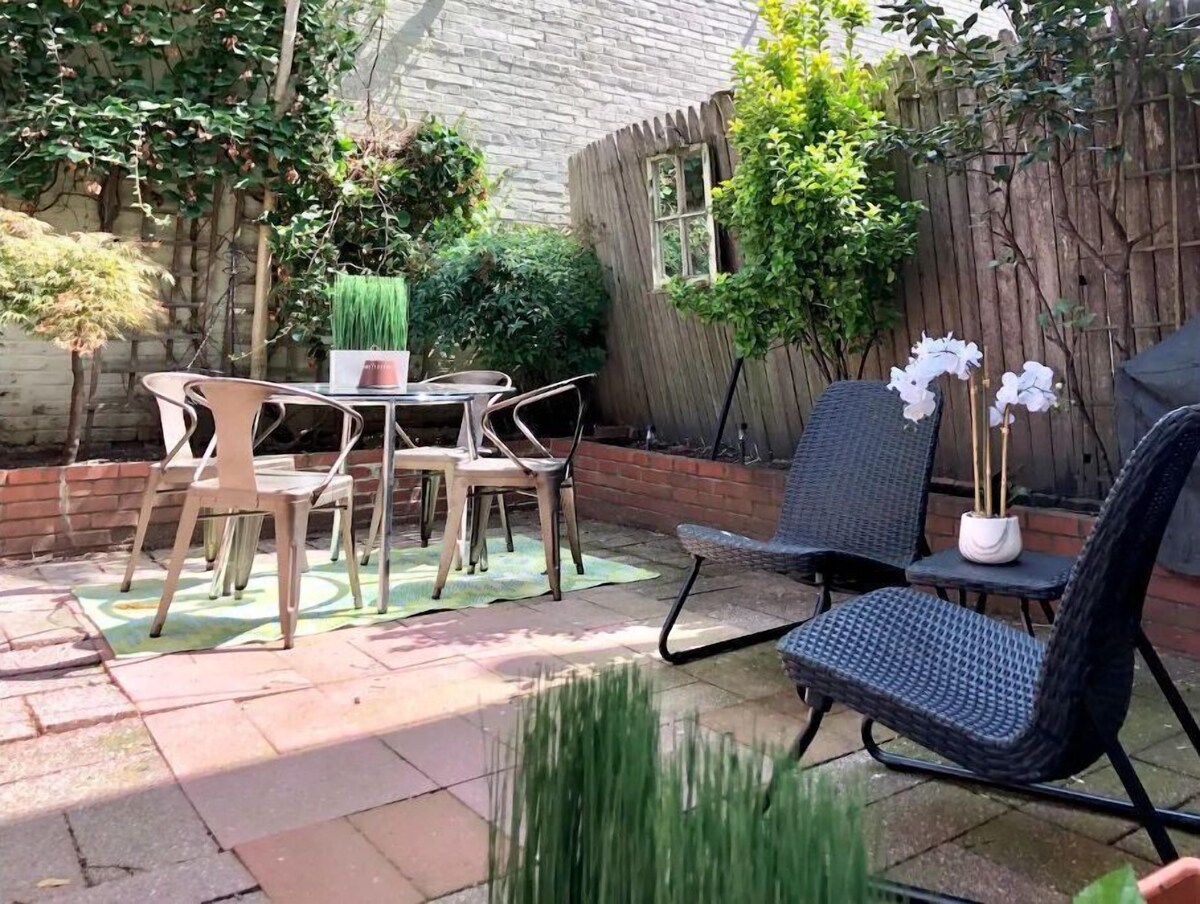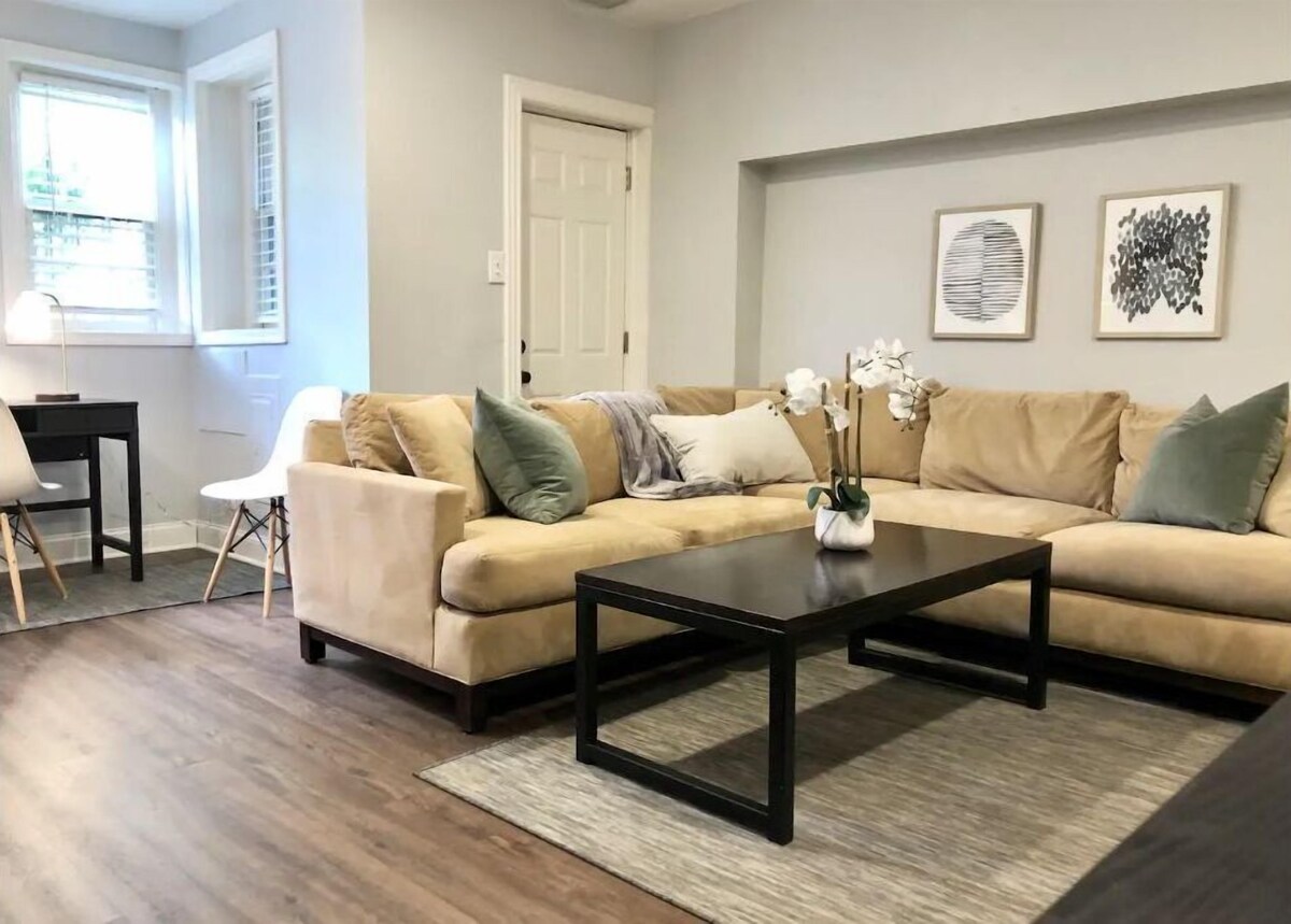 Experience the best of DC in this bright and sparkling clean 3-level, 2-bedroom, 1.5-bath stylish row-house. A walker’s paradise - close to Union Station and steps from the new free streetcar and a plethora of grocery stores, restaurants, shops, and nightlife venues - this property is the perfect home-base for the active urban vacation or business traveler. Relish in the modern décor with pops of mid-century throughout and relax and unwind in your private outdoor patio space. SLEEPING ARRANGEMENTS Master BR: Queen | Guest BR: Double | Twin Air Mattress | Graco Travel Lite Crib - Travel Crib Converts from Bassinet to Playard, Manor (Brand New) HOUSE LAYOUT This ca. 1887 sun-filled 3-level brick row-house has just the right balance of historical and modern elements. Deliberate design, space to stretch out, and a great location all combine to create the ideal space to call home. Our turn-key ready residence is perfect for couples, families, groups traveling for leisure, and the solo or corporate traveler. Upper Level * 2 bedrooms and shared bathroom* Main Level * Living/Dining area and kitchen* Lower Level * Lounge area, office area, half-bath, utility room with W/D, and access to backyard patio* THE ESSENTIALS * Free and fast WI-FI; * Smart TVs with broadcast channels for watching live television and streaming your favorite shows; * Echo Dot speakers with Alexa throughout the house; * Laptop friendly workspaces for getting in some work or booking tickets for your next tour. * Board games and puzzles for adults and children; * Portable Graco Travel Lite Crib - Travel crib converts from bassinet to playard, manor with mattress cover and sheets (Brand New); * Summer Pop 'n Sit SE highchair (Brand New); * Plastic dinnerware for children; and * Dog bowls A gem of a find in DC, the property enjoys a bonus - a backyard patio complete with grill and outdoor furniture! MAIN LEVEL From the front door, you will enter the main floor, with its hardwood flooring, kitchen, and open living room/dining room space. The kitchen is large, occupying the full width of the house and is well equipped for cooking. There is counter seating for four and a television with a CD/DVD player and an antenna for broadcasting live TV. Watch a favorite show or movie while cooking, eating, working, or just relaxing. The open living room/dining area features a Knoll Platner coffee table; Nelson Saucer Bubble pendant light; historical framed black and white photos of the area; living room seating; and a dining table and dining chairs for four. Enjoy streaming your favorite music with an Echo Dot smart speaker with Alexa. UPPER LEVEL The upper floor consists of two bedrooms and a shared full bathroom. The master bedroom is spacious and well-appointed with a reading nook, complete with a mid-century style Astro chair, side table and lamp. The room has built-in closets and shelving and original heart pine flooring. There's a 50 inch television for streaming favorite shows and movies or watching live TV and an Echo Dot speaker with Alexa for listening to music and podcasts. Sleep well on a hand-tufted Shifman mattress with triple sheeted linens, blackout blinds and the gentle whir of a ceiling fan. The second bedroom is cozy, with carpeting and morning sun and a window that overlooks the backyard patio space. There's a brand new 32-inch Insignia Smart HD TV - Fire TV Edition for streaming favorite shows and movies. The shared full bath has a claw foot tub/shower combo with period-like fixtures and ceramic tiled flooring. The claw foot tub is both long and deep for soaking after a day of touring or working. Safety rail is on the wall for those showering. The bathroom window overlooks the backyard patio space. LOWER LEVEL The lower level has a half bath, large sectional sofa, a twin air mattress (linens upon request) a brand new Samsung 50-inch Smart TV with Alexa Built-in and an antenna for broadcasting live TV, and an Echo Dot speaker for listening to music or podcasts. There is also a workspace with a desk, desk chair and reading lamp. The laundry utility room and backyard patio is on the level. LAUNDRY UTILITY ROOM AND PATIO The rear brick patio is accessible through the lower level utility room where the washer and dryer are located. Outdoor space is rare in DC and the patio won't disappoint with its outdoor dining table and chairs for four, conversation table and chairs for two. GUEST ACCESS Guests have access to all 3 levels of the house. PET ACCESS Small dogs up to 30 lbs., if accepted, must have a veterinary letter of health, including breed, weight and no indication of illness or fleas OR recent veterinary visit results, no older than one month, that include breed, weight and no indication of illness. A $100 non-refundable cleaning fee and supporting veterinary documentation must be paid and provided to the host prior to check-in for each pet. A $500 fee is incurred for unregistered pets. We CANNOT accommodate cats, as the owner is allergic. PARKING A parking permit is provided for free on-street parking with advance notice and registration on DC’s new parking permit portal. Our prices include all fees. No hidden fees.
