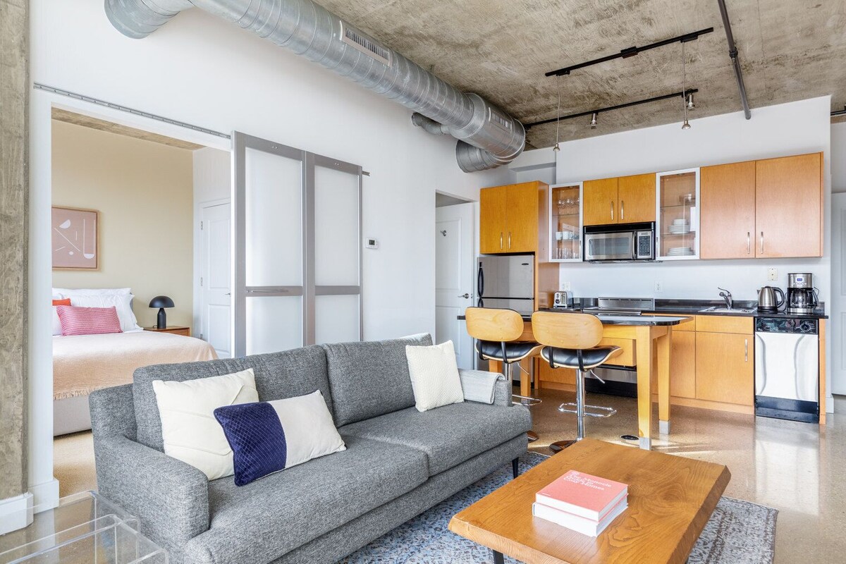 Show up and start living from day one in Washington, D.C. with this lovely one bedroom Blueground apartment. You’ll love coming home to this thoughtfully furnished, beautifully designed, and fully equipped Logan Circle home. (ID #WDC228) Designed with you in mind Thoughtfully designed with bespoke finishes, modern furnishings, and a fully equipped kitchen, you’ll enjoy that “I’m home” feeling with this Blueground apartment. Whether you’re lounging in your beautiful living room streaming the latest and greatest entertainment on the smart TV or premium wireless speaker, or getting some well-earned rest on the superior quality mattress with luxury linens, you’ll fall in love with everything this Logan Circle apartment has to offer. This apartment also offers in-apartment laundry. Sleeping arrangements Queen Bed, 63in/160cm Amenities Building amenities unique to this one bedroom apartment include an on-site: - Dryer - Elevator - Washing machine - Pets allowed - Rooftop BBQ Arrival and ongoing support The entire apartment is yours to enjoy! Throughout your stay, you’ll have access to our Client Experience team through the Blueground App. You can schedule additional cleanings, submit maintenance requests, and view our neighborhood recommendations with just a few taps. We’ll share all details upon confirmation of your stay. Ideally Located This fully furnished apartment is located near Logan Circle, one of DC's trendiest neighborhoods. Thanks to its central location, many of DC's most popular areas are a 15 minute walk away: explore Dupont Circle, head downtown and see the sights or pop around the corner and enjoy a meal at one of the many acclaimed restaurants and bars on 14th Street. Stay in Logan Circle and enjoy a contemporary play at the Studio Theater and take a long stroll by the restored Victorian homes throughout the neighborhood. The neighborhood is served by the McPherson Square and Mount Vernon Metro Stations. Other things to note Building amenities may have an extra cost. This Blueground apartment has flexible lease options, allowing you to book it for one month, a year, or more. Pets are welcome, though weight limits and breed restrictions apply and may incur fees. We take great pride in ensuring every photo displayed is shot in our own units with our actual furnishings. That said, we regularly refresh our decor and furniture arrangement, which may differ from what’s pictured. A security deposit of $500 is required at booking, which will be returned within 2-4 weeks after the check-out, minus any deductible damages. Also note - Noise from the nearby nightlife can sometimes be heard late at night Our prices include all fees. No hidden fees.