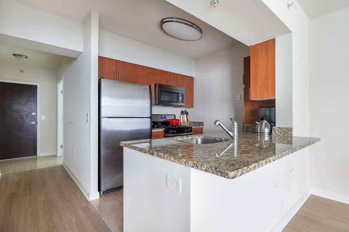 Discover the best of Washington, D.C., with this one bedroom apartment in West End. It’ll be easy to simply show up and start living in this furnished apartment with its fully equipped kitchen, living room, and our dedicated, on-the-ground support. (ID #WDC172) Designed with you in mind As with any Blueground apartment, you’ll find a thoughtfully designed space complete with beautiful furniture and a fully equipped kitchen in this one bedroom property. And, thanks to our superior quality mattresses, luxury linens, and towels, you can relax knowing you’ll always feel comfortably at home. When you’re ready for some fun, you can take in the Washington, D.C. vibes or bring the entertainment to you with the premium wireless speaker or smart TV. This apartment also offers in-apartment laundry. Sleeping arrangements Queen Bed, 63in/160cm Amenities Building amenities unique to this one bedroom apartment include an on-site: - Doorman - Dryer - Elevator - Swimming pool - Washing machine - Lounge - Pets allowed Arrival and ongoing support The entire apartment is yours to enjoy! Throughout your stay, you’ll have access to our Client Experience team through the Blueground App. You can schedule additional cleanings, submit maintenance requests, and view our neighborhood recommendations with just a few taps. We’ll share all details upon confirmation of your stay. Ideally Located This furnished Blueground apartment is situated in the West End, a trendy neighborhood in Northwest Washington DC, situated between the vibrant Foggy Bottom and ritzy Georgetown neighborhoods. The balcony of this luxury apartment overlooks Rock Creek Parkway, which leads to the 12 miles of Rock Creek Park that is a green oasis ideal for outdoor enthusiasts. Explore all that West End and Georgetown have to offer: charming boutiques and art galleries, amazing restaurants, and stunning historic homes and mansions. Take a walk along the beautiful C&O Canal or enjoy a cocktail by the waterfront of the Washington Harbor. There is plenty to discover between the varied neighborhoods in and around West End. The neighborhood is easily accessible via the Foggy Bottom metro station. Other things to note Building amenities may have an extra cost. This Blueground apartment has flexible lease options, allowing you to book it for one month, a year, or more. Pets are welcome, though weight limits and breed restrictions apply and may incur fees. We take great pride in ensuring every photo displayed is shot in our own units with our actual furnishings. That said, we regularly refresh our decor and furniture arrangement, which may differ from what’s pictured. A security deposit of $500 is required at booking, which will be returned within 2-4 weeks after the check-out, minus any deductible damages. Our prices include all fees. No hidden fees.