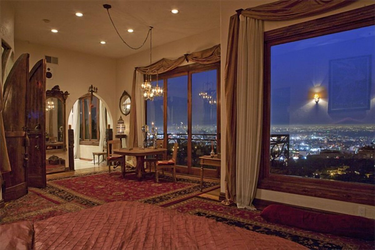 As you walk through the front door of the Design Masterpiece, and enter the open framed cast iron elevator, which climbs through four stories of circular stone staircase, your senses are brought to full attention to bear witness to every exquisite detail. Two antique arched wooden doors frame your entrance to a Master suite with no equal. Floor to ceiling glass walls accentuate the grand scale of this suite giving way to jetliner views from the master bed. Draped with tapestries, fabric and hand made rugs, there has never been a more seamless mix of luxury and comfort. Antique folding wooden doors encase floor to ceiling windows on the fourth floor, which open up to both a beautiful all tile pool and spa, as well as an endless view from the city to the water. House Description Continued : 18' cathedral ceilings soaring overhead, and distressed copper kitchen cabinets, accompany the antique stove, both crystal and cast iron chandeliers, and a hand made espresso machine that more closely resembles a sculpture than it does a kitchen appliance. With this turnkey, hailed as 'the best house in LA', you are renting not just a home, but a lifestyle. The owner is a lifetime member of the prestigious members only Magic Castle which is located right down the hill. Passes can be included with rental upon request. Four to five bedrooms depending on preference (Two mini suites can section off (with a soft curtain) into two separate bedrooms each) Additional short term housing, entertaining, and meeting accommodations for friends, family, and employees available in adjacent properties. The Unique Benefits at this House: This house is a deal closer. If you are looking to wow your future partner, meet the women of your dreams, or fall in love again with the one that you have...and you can't get it done here, then you are not going to be able to get it done. People come to stay the weekend...and leave a year later...and the only complaint was that they had to leave too soon. The Modern Villas Hollywood have been home to many wonderful artist such as Stevie Wonder, John Travolta, Danny DeVito, Jesse James, Kat Von D, Eddie Van Halen, Blake Shelton, Miranda Lambert, Tom Ford, Annie Liebovitz, Carrie Elwes, Mark Canton(creator of the movie 300) Ryan Cavanaugh, Stanley Tucci, just to name a few of the wonderful artist. Hollywood Bowl is close to our property, but the entrance to the Hollywood Bowl is on the other side of the hill, so you would need to get down the hill and enter on the other side. It's only a short 5-minute drive or a 25-minute walk, but since our property is in the hills, coming back, you would have to walk uphill. • NO PARTIES OR EVENTS, the property is for quiet residential use only. The owner lives next door. • NO ADDITIONAL GUESTS OR VISITORS unless the owner approves the change • NO GLITTER • No smoking • Cost of utilities not included in stays over 30 days • Balcony doors are closed • 2 cars maximum • Total number of guests must be disclosed to the host when requesting booking. • No additional guests or visitors other than those listed on the reservation are allowed at the property unless approval from the owner is obtained. • You may (at our discretion) be required to show valid, government ID • Failure to comply with the house rules could result in a forfeiture of the security deposit, fines up to $1000 per broken rule, and/or cancellation of booking. About the Owner: Owner is in the entertainment industry in addition to being a passionate and experimental builder. He is famous for his architectural innovations, attention to detail, and the fit and finish of his properties. He wants the house to be enjoyed, and loves sharing his deep knowledge of the local restaurant, nightlife, cultural and music scenes with guests. He sees his design work as creation of experiential art designed to facilitate a stress free and sensually fulfilling lifestyle filled with aesthetic stimulation and the simple pleasures of spending time with friends and family. There is a security camera at the main entrance. Our prices include all fees. No hidden fees.