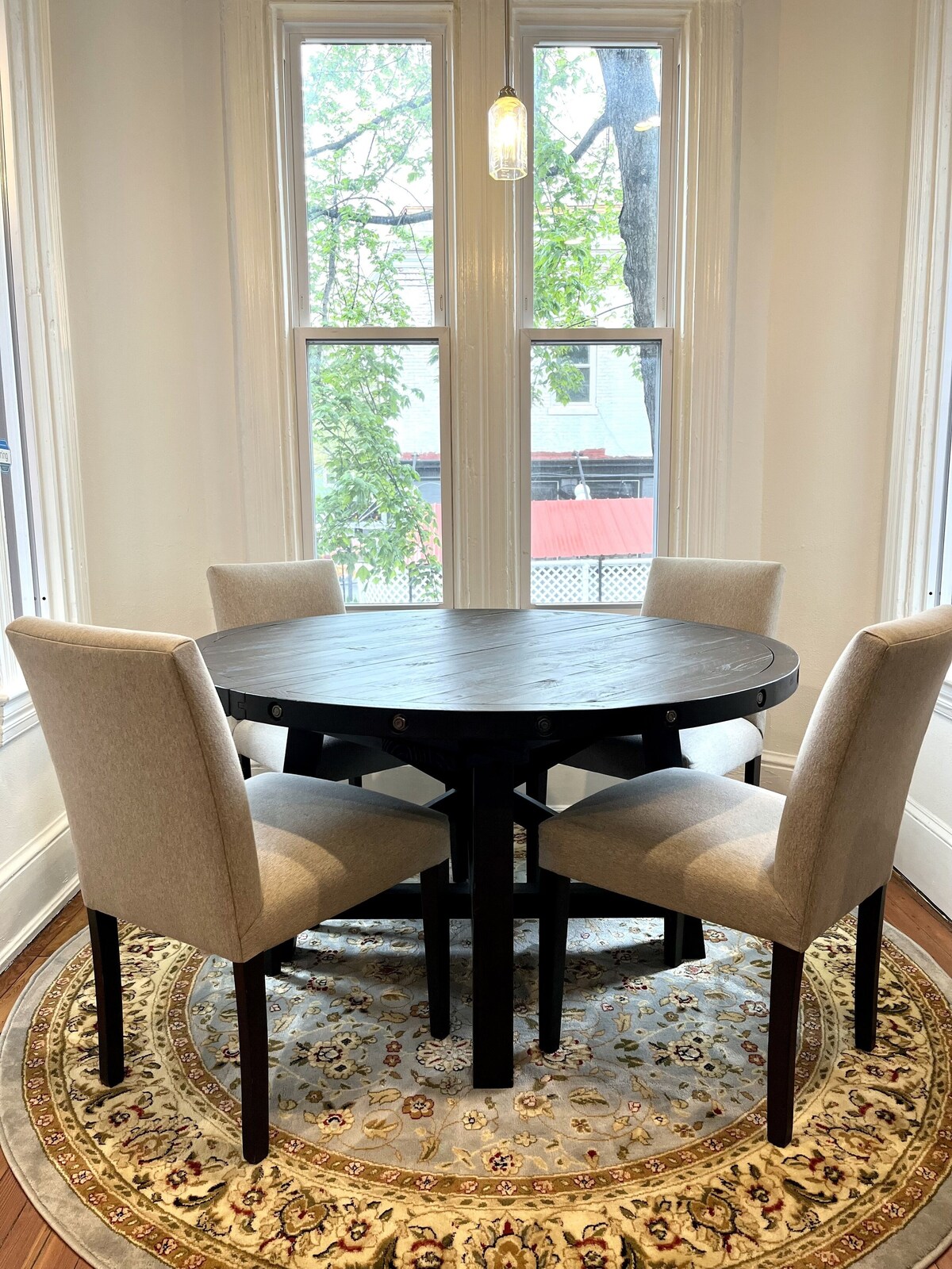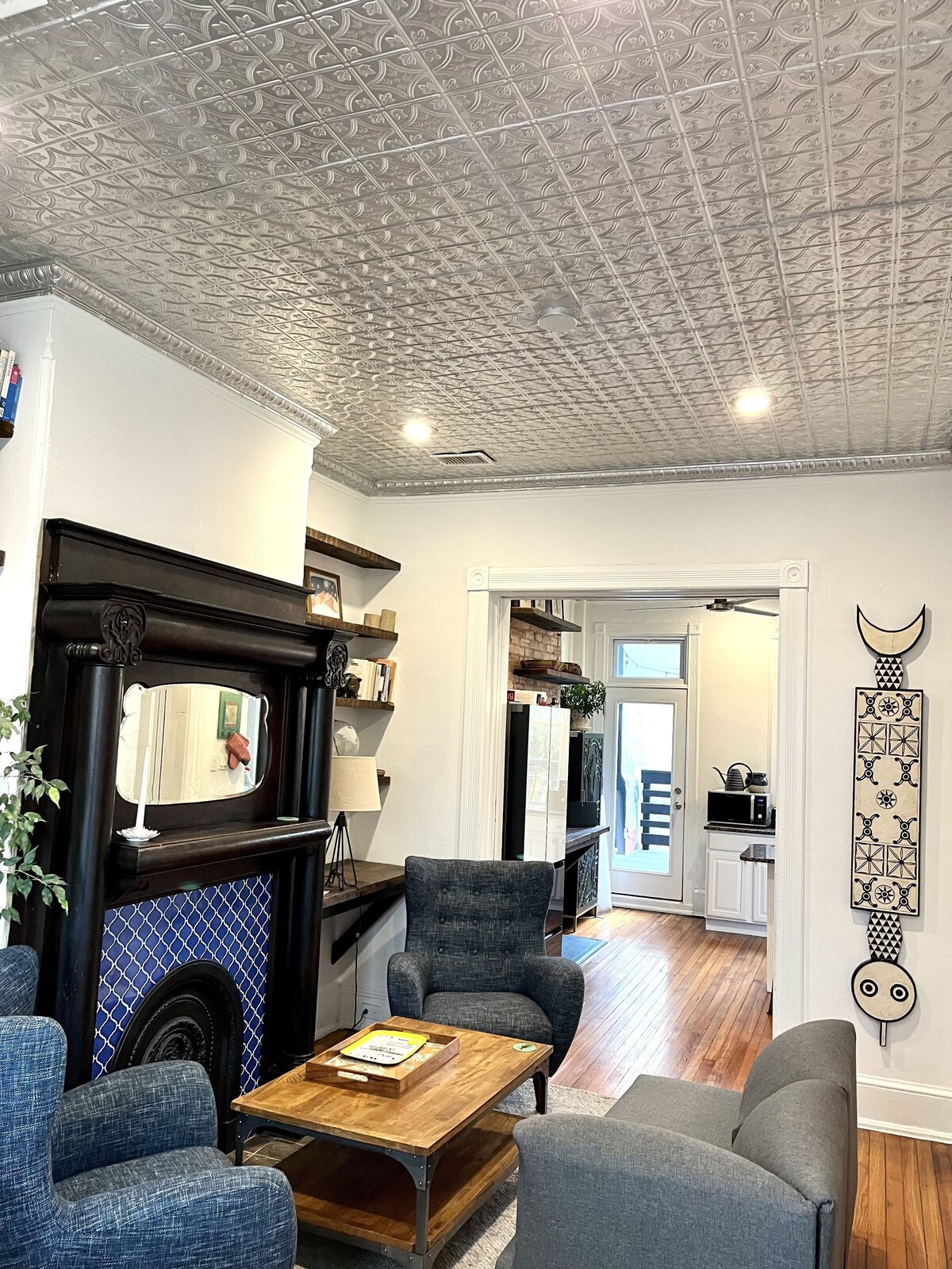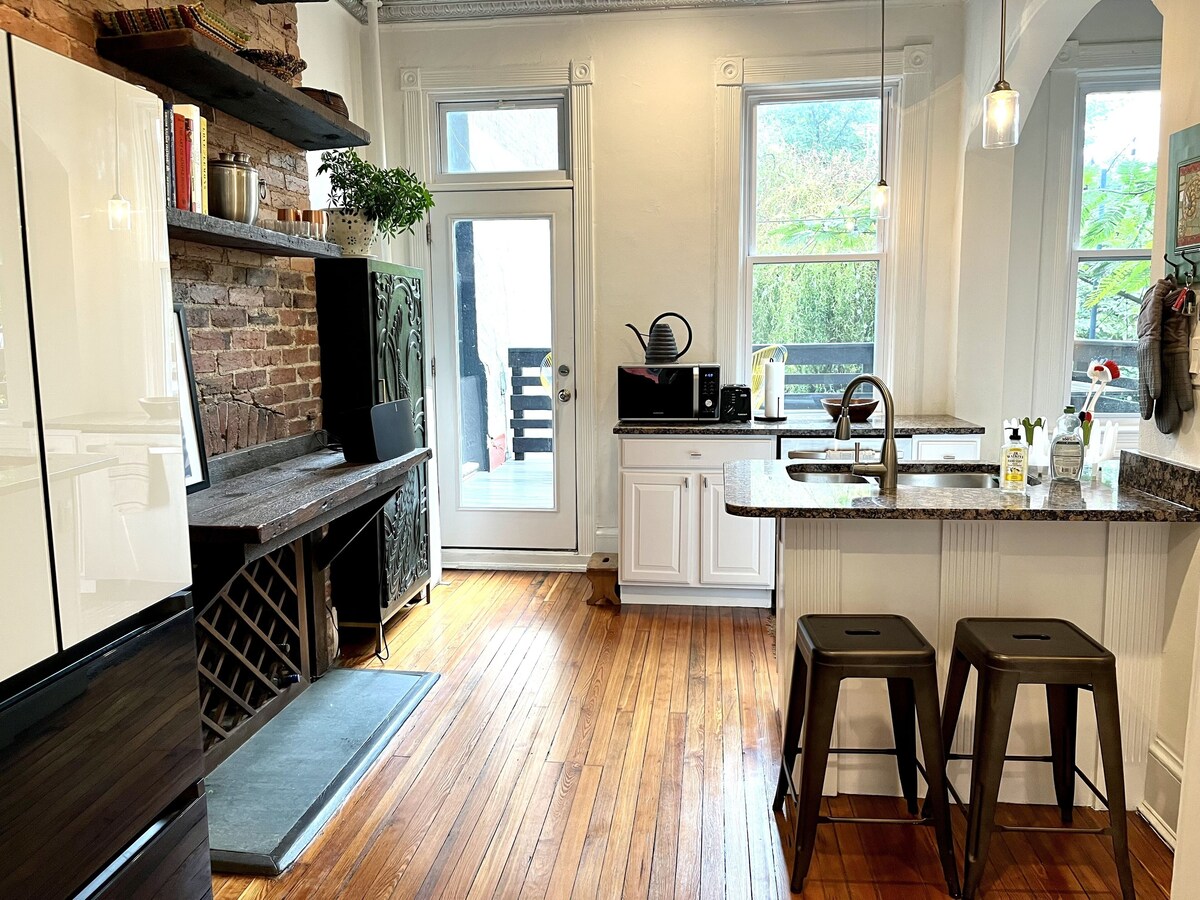 This airy two-bedroom townhouse is DC living at its best. In the heart of historic LeDroit Park, mere steps to neighborhood favorites such as The Royal and Shaw's Tavern. Less than a 10-minute stroll to Howard University, Atlantic Plumbing Cinema, 9:30 Club, and the new Whole Foods. Five minutes to Howard Theatre, nearby shopping/dining, and the Shaw metro (green/yellow lines). The two-story home features oodles of historic charm with modern conveniences. The downstairs foyer leads into a living/dining room with bay windows and eleven-foot ceilings. Pocket doors connect this space to the large kitchen with additional seating for two at the breakfast bar. Fully stocked with spices and cooking supplies, as well as a range of appliances from Instant Pot to waffle maker to blender. The back door from the kitchen opens onto a spacious back deck. Upstairs you'll find a full bath with clawfoot tub, a main bedroom with a queen bed, bay windows, and television; and a second bedroom with queen bed, desk, and television. The townhouse is on a residential block but still in a decidedly urban area. You can generally hear normal street noise from passing trucks, etc. in the front (main) bedroom, so if you need total quiet to sleep you might want to plan on staying in the second bedroom instead. This rental is located above a completely separate basement unit where a long-term tenant lives. Our prices include all fees. No hidden fees.