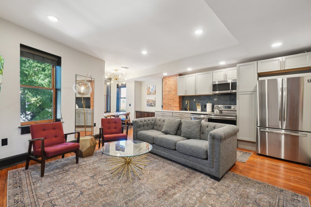 Summary: Historic 8BR Luxury Furnished Living mansion with 3 kitchens & multiple living areas. Ideal for reunions, retreats, or corporate groups in DC’s heart. Large gathering spaces for the full family and team. This elegant Victorian masterpiece, with modern enhancements, caters splendidly to large gatherings, comfortably housing 28 guests. It's just steps from iconic landmarks like Logan Circle and Lincoln Memorial, making it your supreme choice for a memorable capital extravaganza. The Space: Sleeping Arrangements (Sleeps 28 Comfortably): - Bedroom 1: King bed, 1 Queen pullout Sofa, 55\ Roku Smart TV - Bedroom 3: Queen bed, 43\ Roku Smart TV - Bedroom 5: Two Queen beds, 55\ Roku Smart TV - Bedroom 7: Queen bed, 43\ Roku Smart TV - Living Room 1: Queen pullout sleeper sofa, 55\ Roku Smart TV - Living Room 3: Queen pullout sleeper sofa, 55\ s Victorian era elegance, offering 21st-century amenities to ensure supreme comfort for you and your group. Every meticulously designed bedroom offers a royal slumber experience, boasting high-quality King or Queen beds, supplemented with Smart TVs for your lazy mornings or late-night movies. Three bedrooms even come with ensuite facilities for added privacy. And thanks to room-darkening shades, sleep in past sunrise, or enjoy a quiet afternoon nap, untouched by the city t just about sleeping and relaxing - it re all for your enjoyment. For parking, a paid off-premises option is readily available at a nearby location for $20/day. You can also find free street parking around the premises, though don re visiting for Memorial Day, Independence Day, or Labor Day, you s vibrant holiday festivities. With spring in sight, enjoy the changing vistas from our patio, or venture to the neighborhood park for cherry blossoms viewing. If you t miss out on the eclectic mix of dining options offered by the 14th Street Corridor, famed for its gastronomy - quaint cafes, boutique bakeries, and gourmet restaurants abound. Pets are welcomed in our abode, and you re just a message or phone call away to assist with any needs or concerns during your stay. Your comfort is our priority, and we ,