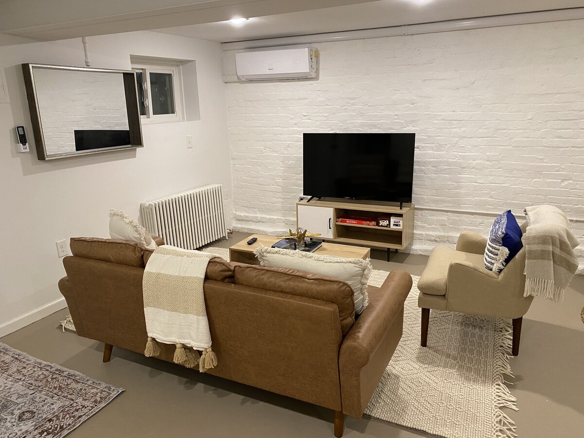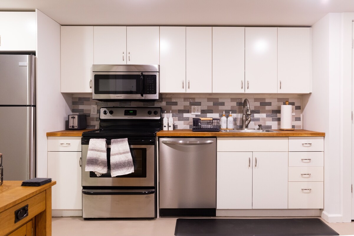 Located in the heart of Columbia Heights, our space is the perfect home base for your stay in DC. Whether you're visiting for business or pleasure, our stylish apartment offers everything you need to feel at home during your travels. The space is centrally located on a quiet street just minutes away from the Columbia Heights Metro Station and various bus lines that easily connect you to everything DC has to offer! About the Space: The bedroom is outfitted with a plush queen-size bed, premium linens, desk & chair, and plenty of closet and storage space for your belongings. The room has an alarm clock, noise machine, AC & Heat for your comfort. You'll wake up feeling refreshed and ready to take on the day! The bathroom is modern and well-appointed, with a shower/bath and all the amenities you need to get ready in the morning. We provide all the bath essentials including towels, shampoo, conditioner, soap, and hair dryer so you don't have to worry about packing them. The kitchen is fully equipped with all appliances, including a fridge, freezer, microwave, and dishwasher. It also has all your cooking needs, including baking sheets, pots, pans, dishes, and utensils. You can enjoy a quick breakfast or full meal before heading out to explore the city. The Coffee/Tea Bar is complete with a Keurig Machine, French Press, and Electric Kettle. The in-unit washer and dryer are available to use free of charge! Getting around - Metro - Columbia Heights Metro Station is a few blocks away (5 min walk) - Bus - multiple bus routes available within 1 block - Street Parking: unrestricted availability for vehicles with DC tags. Cars without DC tags are limited to 2 hours per zone, Monday-Saturday. *** Add-on Amenities *** - Pets allowed for a fee, per the listing. - You may add a third guest for a $20 per night fee (we'll provide a queen-sized air mattress). - We may be able to provide private, off-street parking for a $50 per stay fee, depending on availability. You must message prior to your stay requesting use of the space so we can check availability. Our prices include all fees. No hidden fees.