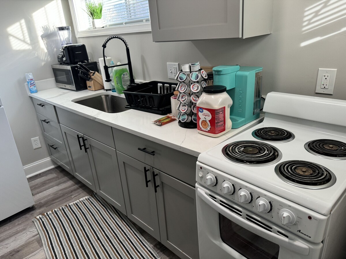 This cozy 1 bedroom basement apartment in located in Petworth neighborhood of Northwest DC. It is close to the Metro (Georgia Ave-Petworth-Green line) and walking distance from various bus routes (Routes 64 and 62) for easy exploration of downtown DC. The space includes a large bedroom with a queen-size bed and lots of natural light, large living room with dining set, dedicated work space and 55-inch Smart TV, full kitchen with electric stove and refrigerator, and washer/dryer. The space This newly fully renovated (May 2023) private apartment consists of a large bedroom, living room, full bathroom, and kitchen. The apartment can sleep up to 4 guests, with a queen sized bed in the bedroom, a convertible couch (can be converted to a full sized bed) in the living room, and a queen sized blow up bed with extra linens, if needed. The property is located in a very quiet and safe area of Northwest DC with easy access to both buses and the Metro for exploration of downtown DC. The living room comes with a 55-inch Smart TV, where you can relax and stream all your favorite shows. The 4-seater dining room allows you to share a meal with friend and family in your home away from home. The fully stocked kitchen with brand new appliances (refrigerator & electric stove) allows you to the option to cook. There is also a computer desk and chair for when you need to get some work done and the high speed internet will help facilitate that. Lastly, the electronic door lock allows your to come and go as you please and if there is free street parking if you brought a car. No parties allowed. Our prices include all fees. No hidden fees.