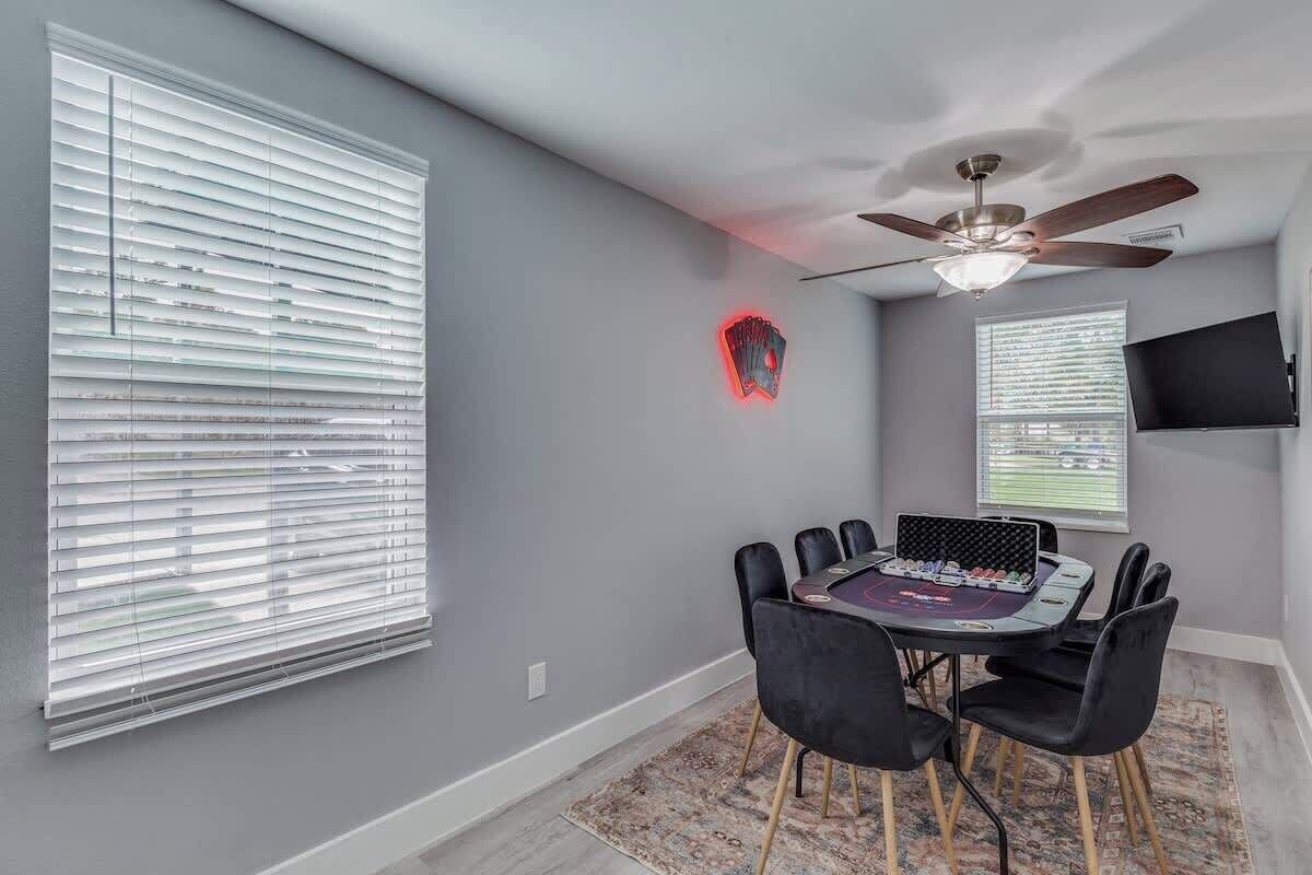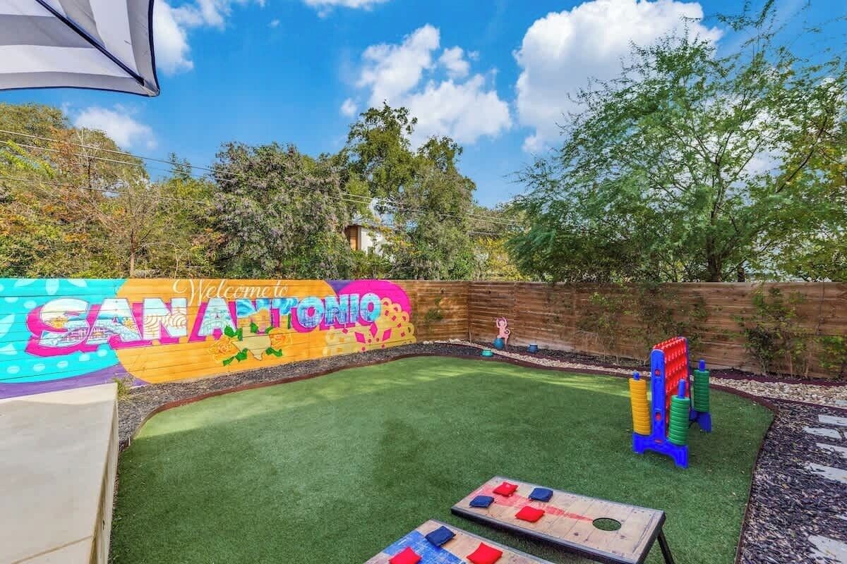 Summary: 🎉 Relax & Entertain — Near Airport, Six Flags & Downtown San Antonio! 🏡 Spacious and luxurious getaway for families, groups & friends — 8 min to airport, 15 to downtown, 20 to Six Flags! 💦 Outdoor Fun Large Heated pool + hot tub (to 102° | $40/day), grill, San Antonio mural, lounge seating 🎮 Games & Entertainment Pool table, ping pong, poker room, giant Connect 4, 8 large 4k TVs, board games, bar setup 🍽️ Fully Equipped Stocked kitchen, desk w/ monitor, wine fridge, 2 ovens, EV charger The Space: Welcome to your home away from home — a spacious 3,200 sq. ft. retreat designed for comfort, entertainment, and togetherness. Whether you’re gathering family, celebrating with friends, or hosting a work getaway, this modern and beautifully updated home provides everything you need for an unforgettable stay in San Antonio. Step inside to discover a bright, open floor plan filled with entertainment options and cozy spots to relax. Outside, a private pool, hot tub, and deck area create your own resort-style oasis — perfect for sunny afternoons or evening hangouts under the stars. ★ LIVING ROOM ★ • The heart of the home invites everyone to unwind together. • Spacious, open-concept living area with abundant natural light • 65” 4K Roku TV with streaming access • Comfortable sectional seating for the entire group • Pool table, darts, and board games for indoor fun ★ KITCHEN★ • A chef’s dream kitchen, fully stocked and ready for group meals. • Dual ovens and a full suite of modern appliances • Cookware, utensils, baking supplies, and spice rack • Blender, waffle maker, and rice cooker • Wine fridge for evening entertaining • Coffee and tea bar with regular and decaf coffee, tea kettle, cream, and sugar ★ DINING AREA ★ • Enjoy shared meals and great conversation. • Large dining table ideal for family dinners or group meetings • Bar seating adjacent to the kitchen for casual dining ★ BEDROOMS ★ • Five well-appointed bedrooms designed for comfort and privacy. • Primary Suite: King bed + twin trundle (2 twin beds) and ensuite bath • Two Queen Bedrooms: Shared, newly remodeled bathroom • Double Queen Room: Two queen beds for maximum flexibility • Additional Queen Room: Spacious and stylishly furnished • Memory foam mattresses in every room • 8 large 4K Roku TVs throughout the home • Three full bathrooms with shampoo, conditioner, body wash, and heated towel racks ★ POKER AND GAME ROOM ★ • A dedicated space for friendly competition and laughter. • Poker table seating for 8 • Ping pong, corn hole, and giant Connect 4 • Indoor and outdoor games for all ages ★ OUTDOOR OASIS ★ • Your private backyard resort — perfect for relaxation or entertainment. • Private pool and hot tub (heated up to 102°) with basketball hoop • Expansive deck with lounge chairs and shaded seating • Propane grill and outdoor dining setup for barbecues • Fully fenced for privacy ★ WORK AND CONNECTIVITY ★ • Ideal for remote work or extended stays. • Dedicated workstation with monitor, keyboard, and wireless phone charger • 1GB mesh Wi-Fi system for fast, reliable internet across the home • Parking and EV Charging • Convenient and eco-friendly options for travelers. • Long driveway and carport for multiple vehicles • EV charger available in the garage ★ COMFORT AND PEACE OF MIND ★ • Smart layout ideal for large groups, families, or corporate retreats • All security cameras are located outside the home for guest safety — no indoor cameras ★ THE EXPERIENCE ★ From poolside afternoons to game nights and group dinners, this home offers the space and amenities to make your stay effortless and memorable. Every detail has been considered so you can relax, connect, and enjoy the best of San Antonio living. Guest Access: When you rent out this property, you will have access to the entire property. This is one single private home. You and your group will have complete privacy and access to the home - except for two maintenance closets! The Neighborhood: Nestled in the quiet, family-friendly community of Oak Park – Northwood, this area offers a peaceful retreat with the convenience of nearby shops, dining, and entertainment. It’s the perfect balance of suburban comfort and easy access to San Antonio’s main attractions. Guests love the clean, safe streets, welcoming neighbors, and the local charm that makes you feel right at home. • Starbucks, less than a 10-minute walk away — perfect for your morning coffee stroll • North Star Mall – one of San Antonio’s premier shopping destinations • McAllister Park – scenic trails, playgrounds, and picnic areas for family fun • The Quarry Market – upscale outdoor shopping and restaurants • The Alamo and downtown River Walk – just a short drive away for a true San Antonio experience • Variety of local restaurants, bars, and cafés within a few minutes’ drive • Nearby grocery stores, pharmacies, and convenience shops for easy errands Getting Around: Whether you’re exploring local parks, heading downtown, or catching a flight, this location makes getting around simple and efficient. • Only 7 miles (about 12 minutes) to San Antonio International Airport • Easy access to major highways including Loop 410 and US-281 • Abundant free street parking and driveway space for multiple vehicles • Rideshare options like Uber and Lyft readily available in the area • Rental car agencies nearby for longer stays or day trips • Public transportation stops within walking distance for easy city access Other Things to Note: ★ ADDITIONAL ACCOMMODATION ★ Traveling in a larger group, or your preferred dates are already taken? You'll be happy that we offer additional accommodation in the area. Please browse our host profile for the complete list of gorgeous listings. ★ CLEANING & SANITIZATION ★ Health, safety, and well-being of our