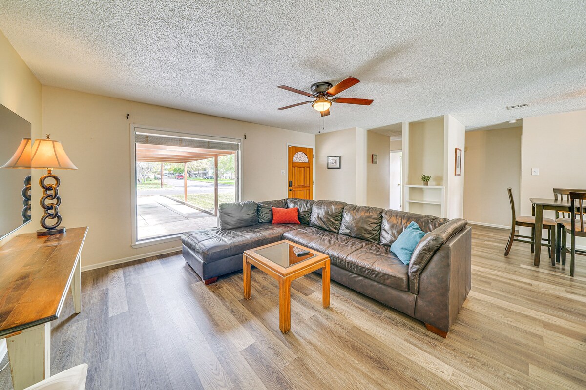 From the moment your plane lands in San Antonio, you'll be taken in by the city's deep-rooted history and unending charm! At the end of your 4-mile drive from the San Antonio International Airport, unpack your bags at this 4-bed, 2-bath vacation rental. The home is the ideal private oasis, with a covered grilling deck overlooking the in-ground pool and a prime location near everything on your itinerary. Explore downtown, the San Antonio Zoo, and the River Walk, all within 11 miles of your door. -- THE PROPERTY -- STR-24-13500159 | Smart TV | Fenced Backyard | Central A/C Bedroom 1: King Bed | Bedroom 2: Queen Bed | Bedroom 3: Queen Bed | Bedroom 4: 2 Full Beds MAIN FEATURES: Covered patio, gas grill, indoor & outdoor dining areas, ceiling fans KITCHEN: Dishwasher, coffee maker, blender, fridge, stove & oven, microwave, dishware/flatware, trash bags/paper towels, cooking basics, reverse-osmosis water filter GENERAL: Free WiFi, central heat, washer & dryer, detergent, towels/linens, complimentary toiletries, iron & board, hair dryer FAQ: Pet fee (paid pre-trip) ACCESSIBILITY: Single-story home, 2 steps to enter PARKING: Carport (4 vehicles), garage (1 vehicle), free street parking (first-come, first-served) -- THE LOCATION -- SEE & DO: Alamo Drafthouse Cinema Park North (5 miles), Witte Museum (5 miles), San Antonio Museum of Art (10 miles), The Alamo (10 miles), La Villita Historic Village (11 miles), Alamodome (11 miles), San Antonio River Walk (11 miles), Frost Bank Center (13 miles) OUTDOOR REC: San Antonio Botanical Garden (5 miles), Japanese Tea Garden (8 miles), Woodlawn Lake Park (11 miles), San Antonio Missions National Historical Park (18 miles), Natural Bridge Caverns (18 miles) FAMILY ATTRACTIONS: San Antonio Zoo (7 miles), San Antonio Aquarium (12 miles), Six Flags Fiesta Texas (16 miles), SeaWorld San Antonio (20 miles) MEDICAL CENTERS: Northeast Baptist Hospital (3 miles), Kindred Hospital San Antonio (9 miles), University Health University Hospital (10 miles), Methodist Hospital (10 miles), CHRISTUS Santa Rosa Hospital - Westover Hills (20 miles) AIRPORT: San Antonio International Airport (4 miles) -- REST EASY WITH US -- Evolve makes it easy to find and book properties you'll never want to leave. You can relax knowing that our properties will always be ready for you and that we'll answer the phone 24/7. Even better, if anything is off about your stay, we'll make it right. You can count on our homes and our people to make you feel welcome — because we know what vacation means to you. -- POLICIES -- - No smoking - Pet friendly w/ $25 fee (+ fees & taxes) - No events, parties, or large gatherings - Additional fees and taxes may apply - Photo ID may be required upon check-in - NOTE: This single-story home requires 2 steps to enter Our prices include all fees. No hidden fees.