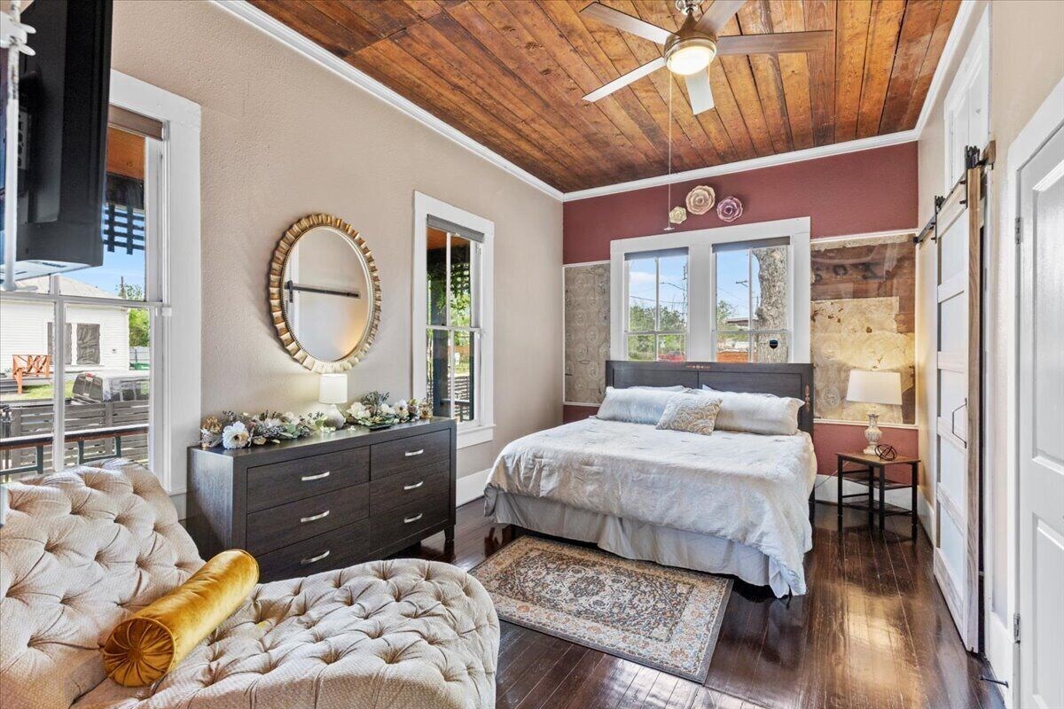 Nestled in the vibrant heart of downtown San Antonio, our 3-bedroom Historic Vacation home offers a delightful escape for your next getaway. Imagine strolling just a short walk to the iconic Alamodome and Convention Center! Explore the bustling Shops at Rivercenter and the renowned River Walk, all within easy 1/2 mile reach. As a traveler, you'll appreciate the thoughtful amenities that make your stay truly comfortable, including free WiFi, a washing machine and dryer, a cozy fireplace, and a smart TV for your entertainment. The fully stocked kitchen, complete with a stove, oven, refrigerator, grill, and all the necessary appliances and utensils, invites you to unleash your culinary creativity. Unwind in the two oversized bathrooms, where you'll find towels, basic soaps, and a hair dryer. Alternatively, take advantage of the iron and ironing board for a crisp, fresh look. Stay cool or warm with the property's air conditioning and heating, and enjoy the outdoor features, such as the porch, fire pit, outdoor play area, and comfortable outdoor furniture. Whether you're seeking a family getaway, a convenient conference location, or a relaxing retreat, our vacation home promises an unforgettable experience in the heart of San Antonio!
