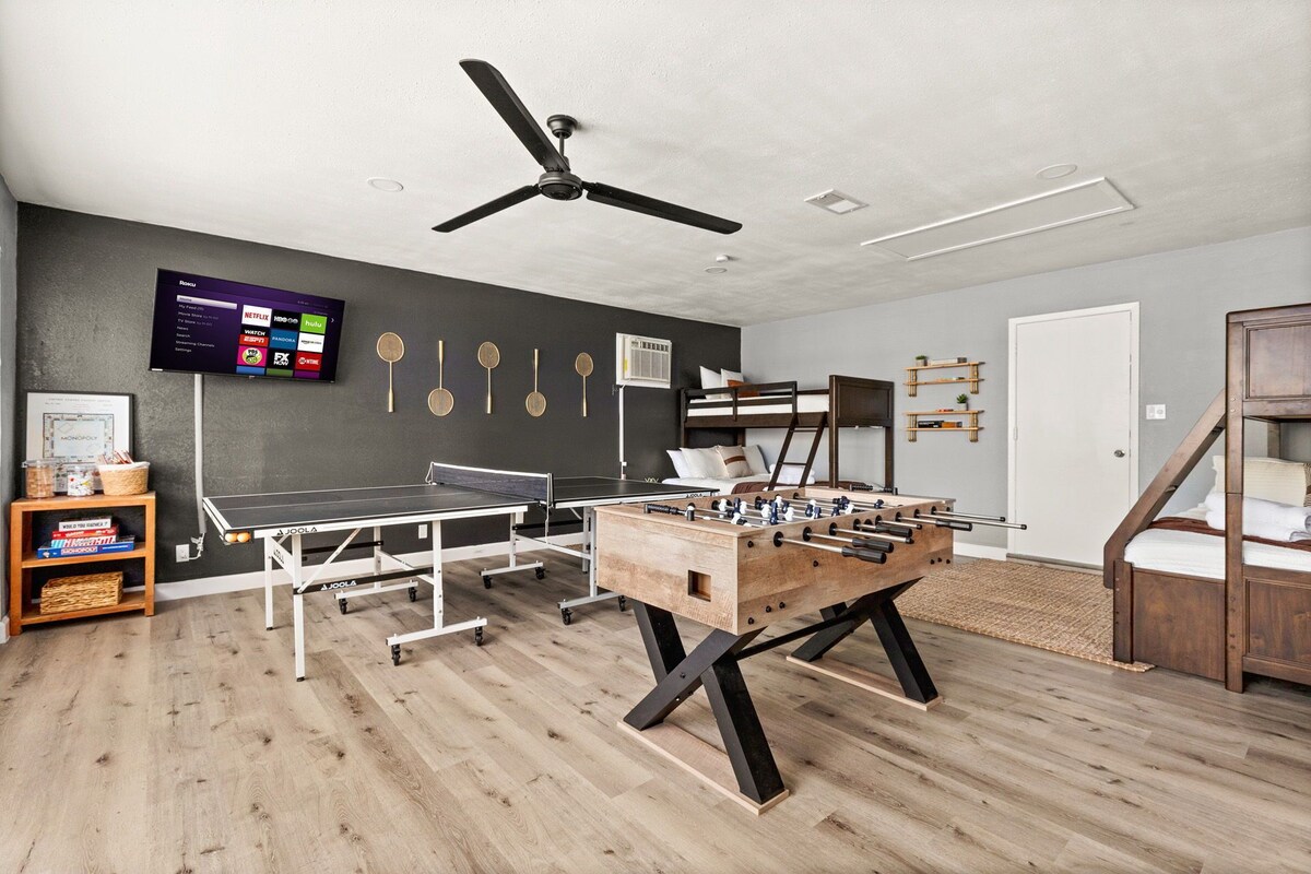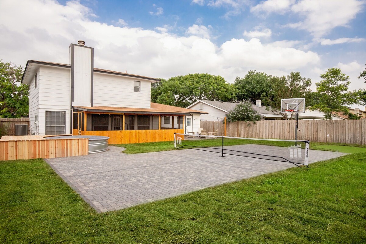 Welcome to \ your perfect getaway in San Antonio!! This beautifully furnished 4 bedroom, 2.5 bathroom house has everything you need for a memorable stay, with enough space to accommodate up to 12 guests. Key Features: -Cowboy Pool -Full Size Pickleball/ basketball court -Putting Green -Game Room -Firepit -Blackstone Grill Key Attractions: -SeaWorld: 8 min -SixFlags: 12 min -Riverwalk 20 min -Alamo 20 min -K1 Speed 6 min -Axe Master Throwing 11 min -Lackland Airforce Base 13 min Inside you'll find multiple dining and relaxation areas, perfect for family gatherings or group get-togethers. The fully equipped kitchen has all the appliances and utensils you need to cook up a feast. When it's time to relax indoors and enjoy the AC, head to the large game room, complete with board games, foosball and a ping pong table. There's something for everyone! Stay connected and entertained with Wi-Fi throughout the house and TVs in every room for your enjoyment. Whether you're streaming your favorite shows, catching up on the news, or just relaxing with a movie, we've got you covered. Step outside to the sunroom, designed for comfort with plenty of seating, shade, fans, and bug screens. It's a great spot for morning coffee or evening drinks. Beyond the sunroom, you'll discover a private playground for the kids, including a cowboy pool, sport court and putting green which are ready for action. The play bin is equipped with all the necessary supplies from pool toys, footballs, basketballs, soccer balls, etc. The backyard has everything you need for outdoor entertainment. Gather around the firepit in the evening to decompress and enjoy some quality time with friends and family. For those who love to barbecue, the Blackstone BBQ is at your disposal, perfect for grilling up some delicious large family meals! Parking is a breeze with plenty of space in the driveway and additional on-street parking to accommodate your party. Located in a quiet neighborhood in Leon Valley, this home is just a short drive from San Antonio's main attractions. When it's time to explore, you'll find a host of nearby amenities. Experience the thrills of K1 Speed, Six Flags, and SeaWorld, or try your hand at axe throwing. Kids will love the trampoline parks, while golf enthusiasts can enjoy numerous golf courses in the area. Visit the aquarium, or take a leisurely stroll through the Alamo, River Walk, and nearby parks/ walking trails. The house is conveniently located just 20 minutes from the San Antonio International Airport (SAT), making it easy to get in and out of town. If you're in town for BMT Military Graduation, our location is ideal, offering easy access to Lackland Air Force Base and a comfortable space to relax and celebrate this special occasion with family and friends. Whether you're here for a family vacation, a group retreat, or just to relax, you'll find everything you need at \ Book your stay today and make unforgettable memories with us in San Antonio! STR Permit number: STR-24-13500462 exp:06/05/2027 Our prices include all fees. No hidden fees.