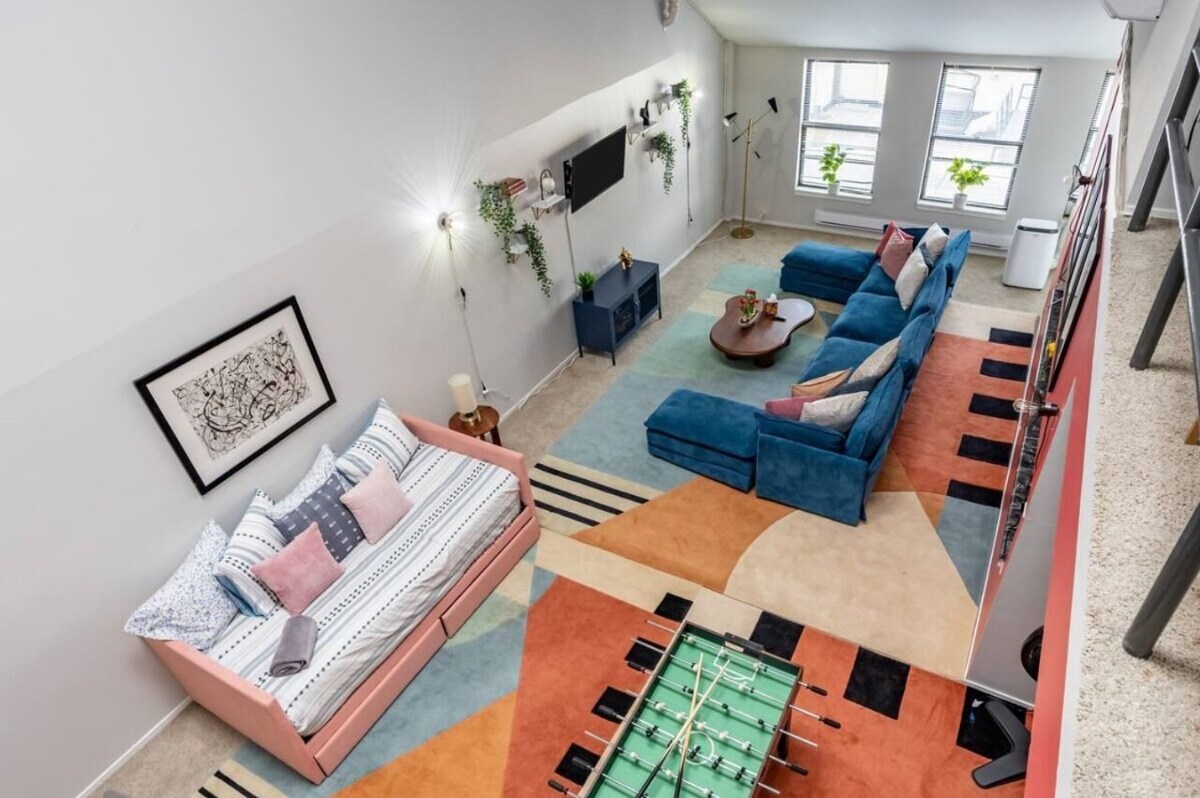Feel at Home, Unwind, and Enjoy the amenities you deserve next to Grant Park! Most homes don’t provide professional service along with “local vibes.” Guests love our home because: ✅ NEW HVAC Split Units ✅ Lots of natural light ✅ High loft ceilings ✅ FAST WIFI ✅ Spacious layout ✅ Comfy beds ✅ Central Location ✅ Large Balcony! ✅ Close proximity to Grant Park, Adler Planetarium, Skydeck, Shedd Aquarium, Adler Planetarium, Soldier Field & many dining + shopping options! Please note: *This is a vintage apartment, but it has a lot of beautiful character as you can see! *This property is professionally managed by our team. While you may book through VRBO, payment may be processed directly through our secure Stripe system. 𝐓𝐡𝐞 𝐬𝐩𝐚𝐜𝐞 Please note: This is a vintage loft, but it has a lot of beautiful character as you can see! - This home is a loft-style unit with stairs, so extra precautions for your children are necessary. (Pssst... Quick favor if you're thinking about booking: Please read the entire listing as it likely answers any questions you may have. Thanks!) To access the building, we send you an email to give you, and your group, access to a simple key system using your phone. You walk up the stairs to the elevators, and take the elevator to the top floor, the 8th floor. When you exit the elevator, you turn right and then left down the hallway to your home. When you enter the home, it opens to an open, spacious loft. There is a dining area, a kitchen, a living room, a half bathroom,and private patio for those staying on the first level. The private patio gives you a fresh feel and a cool cityscape view. If you walk up to the 2nd floor, you will find a spacious loft with two full size beds, a huge closet, a full bathroom, and a half bathroom. This is truly a special place, and we look forward to making your stay a 5-star experience! 𝐅𝐀𝐐𝐬 𝐐: 𝐈𝐬 𝐭𝐡𝐞 𝐧𝐞𝐢𝐠𝐡𝐛𝐨𝐫𝐡𝐨𝐨𝐝 𝐬𝐚𝐟𝐞? A: Very much so. 24 hours a day. 𝐐: 𝐏𝐀𝐑𝐊𝐈𝐍𝐆? A: The home is very easy to get to via public transit. If you decide to drive, we recommend apps like SpotAngel or SpotHero to find free or cheap parking ($10-20 / night). 𝐐: 𝐃𝐨 𝐈 𝐧𝐞𝐞𝐝 𝐭𝐨 𝐛𝐫𝐢𝐧𝐠 𝐭𝐨𝐰𝐞𝐥𝐬, 𝐚 𝐡𝐚𝐢𝐫 𝐝𝐫𝐲𝐞𝐫, 𝐨𝐫 𝐥𝐢𝐧𝐞𝐧𝐬? A: Nope! we provide all these things. We also provide you with a starter pack of toilet papers. 𝐐: 𝐖𝐡𝐞𝐧 𝐜𝐚𝐧 𝐈 𝐜𝐡𝐞𝐜𝐤 𝐢𝐧 𝐨𝐫 𝐜𝐡𝐞𝐜𝐤 𝐨𝐮𝐭? A: Check in is 4pm and check out is 10am. Early check ins can be difficult if there are guests who checked out same day. We ask for an early check-in, or a late-check out fee, if you request either. 𝐐: 𝐂𝐚𝐧 𝐈 𝐜𝐨𝐦𝐞 𝐚𝐧𝐝 𝐠𝐨 𝐚𝐬 𝐈 𝐩𝐥𝐞𝐚𝐬𝐞? A: Yes. And we wouldn't trust any listing with which this isn't the case. 𝐐: 𝐈𝐬 𝐭𝐡𝐞 𝐩𝐥𝐚𝐜𝐞 𝐩𝐫𝐨𝐟𝐞𝐬𝐬𝐢𝐨𝐧𝐚𝐥𝐥𝐲 𝐜𝐥𝐞𝐚𝐧𝐞𝐝 𝐛𝐞𝐭𝐰𝐞𝐞𝐧 𝐠𝐮𝐞𝐬𝐭𝐬? A: Yes, and we take pride in providing a clean home for guests. 𝐐: 𝐖𝐡𝐚𝐭'𝐬 𝐦𝐲 𝐭𝐨𝐭𝐚𝐥 𝐛𝐨𝐨𝐤𝐢𝐧𝐠 𝐩𝐫𝐢𝐜𝐞? A: We honestly have no idea. With fees included, it only shows the guest how much they pay. This figure should be present after you enter your dates. Note that, pricing varies on a daily basis, and it actually uses some crazy algorithm to adjust it automatically, so I don't actually control this. 𝐐: 𝐀𝐫𝐞 𝐭𝐡𝐞 𝐛𝐞𝐝𝐬 𝐜𝐨𝐦𝐟𝐨𝐫𝐭𝐚𝐛𝐥𝐞? A: Very. Some guests say they're the best they've ever slept on! 𝐆𝐮𝐞𝐬𝐭 𝐚𝐜𝐜𝐞𝐬𝐬: You have access to our whole home, the private balcony, and the full size gym on the ground floor. 𝐎𝐭𝐡𝐞𝐫 𝐭𝐡𝐢𝐧𝐠𝐬 𝐭𝐨 𝐧𝐨𝐭𝐞: ❎No Local Guests (City or Suburbs) 🙊Quiet hours: 10pm to 8am 👍Minimum age of 24 to book The base price for this home is for 4 guests only. There will be an extra guest fee of $15 per guest per night if your group exceeds to 4 people. 𝐒𝐦𝐚𝐥𝐥 𝐏𝐞𝐭 𝐅𝐞𝐞 (Under 20lbs, no shedding) - $200 𝐋𝐚𝐫𝐠𝐞 𝐏𝐞𝐭 𝐅𝐞𝐞 - (Over 20lbs) - $250 plus a $200 refundable security deposit and subject to host approval. If the pet sheds, we will require an additional $150 refundable Security deposit. 𝐔𝐧𝐚𝐮𝐭𝐡𝐨𝐫𝐢𝐳𝐞𝐝 𝐏𝐞𝐭𝐬 - $250.00 plus any damages or additional cleaning costs incurred 𝐔𝐧𝐚𝐮𝐭𝐡𝐨𝐫𝐢𝐳𝐞𝐝 𝐋𝐚𝐭𝐞 𝐂𝐡𝐞𝐜𝐤 𝐎𝐮𝐭 -Up to the cost of any impacted nights subsequent to originally scheduled check-out 𝐒𝐦𝐨𝐤𝐢𝐧𝐠 𝐢𝐧 𝐑𝐨𝐨𝐦/𝐂𝐨𝐦𝐦𝐨𝐧 𝐀𝐫𝐞𝐚 - $500.00 minimum charge and eviction from Rental Unit 𝐄𝐱𝐜𝐞𝐬𝐬𝐢𝐯𝐞 𝐂𝐥𝐞𝐚𝐧𝐢𝐧𝐠 - Up to $125.00 per hour of additional cleaning needed 𝐃𝐚𝐦𝐚𝐠𝐞𝐝 𝐨𝐫 𝐌𝐢𝐬𝐬𝐢𝐧𝐠 𝐈𝐭𝐞𝐦𝐬 - Varies depending on cost of item 𝐍𝐨𝐢𝐬𝐞 𝐂𝐨𝐦𝐩𝐥𝐚𝐢𝐧𝐭𝐬: potential warning issued or, if necessary, eviction with no refund and a charge of up to $1,000.00 𝐏𝐚𝐫𝐭𝐲 𝐢𝐧 𝐔𝐧𝐢𝐭 𝐨𝐫 𝐂𝐨𝐦𝐦𝐨𝐧 𝐀𝐫𝐞𝐚 - Up to $2,000.00 𝐅𝐨𝐫𝐠𝐨𝐭𝐭𝐞𝐧 𝐏𝐞𝐫𝐬𝐨𝐧𝐚𝐥 𝐁𝐞𝐥𝐨𝐧𝐠𝐢𝐧𝐠𝐬 - $50 minimum charge for handling and shipping. No Unauthorized Late Check Out without notice from Host. -Early check-ins/Late check-outs can sometimes be accommodated by our cleaning service for $50 per hour fee. There is a NOISE MONITORING system within the home to track decibel noise l