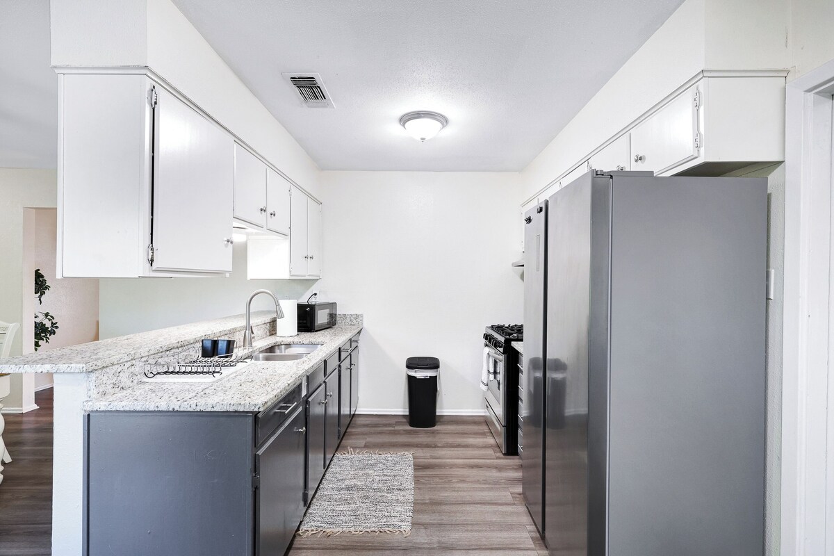 🔥 3 relaxing bedrooms w/ comfy beds ⭐️ 1 clean full bath w/ toiletries included 🔥 A/C throughout the home ⭐️ Fully equipped kitchen + Keurig + coffee bar 🔥 Superfast 1000+ Mbps Wi-Fi ⭐️ Classic board games for all ages 🌴 Backyard: grill, spacious lawn, table, cornhole ⭐️ Pet-friendly for your furry pals 🔥 Washer/dryer + iron + detergent ⭐️ Driveway parking for 5 vehicles 🌴 9 mins to Airport, 15–20 to Six Flags, River Walk Your reservation is completely contactless! You can simply use your code to enter and enjoy our place! What if I need help? No worries, you can contact us at any time, and we will do our best to assist you. The best way to contact us is through the platform chat, but you can also email or call us if needed. We strongly suggest to quickly read the house manual and explore the guidebook. Everything you need to know is most likely explained in the guidebook. It has instructions on directions, parking, check-in, check-out, other videos on how to use things around the house, and many recommendations on places you can visit during your stay! This home resides in a peaceful neighborhood. Should you need anything during your stay, with just a 3 to 5-minute drive, you'll find plenty of practical amenities such as supermarkets, gas stations, restaurants, gyms, and retail stores, for a more convenient stay. • GENERAL: Guests can enjoy full access to the entire house. • PARKING: Free parking is available for a maximum of 5 vehicles in the garage, driveway, and street. • WORK FROM HOME: There is free, high-speed Wi-Fi (1000+ Mbps) available throughout the home. • PETS: Please let us know if you would like to bring a pet and we would be happy to accommodate them for an additional fee. Don’t hesitate to reach out with any questions - we look forward to hosting you! ★★ HIGHLIGHTS ★★ • 3 comfortable bedrooms • 1 full bathroom; essential toiletries provided • Central air conditioning • Fully stocked kitchen • Keurig coffee machine + coffee bar • High-speed Wi-Fi w/ speeds up to 1000+ Mbps • Selection of board games • Private backyard w/ spacious lawn + charcoal BBQ grill+ table + chairs + cornhole set • Pet-friendly • In-unit laundry room w/ iron + ironing board + detergent • Free on-site parking for maximum 5 vehicles Eager to Read More? Here Are A Few Kind Words From Our Previous Guests: \ - Andrew \ - Robin \ ve come to the right place! This neighborhood has a high walking score and it ,