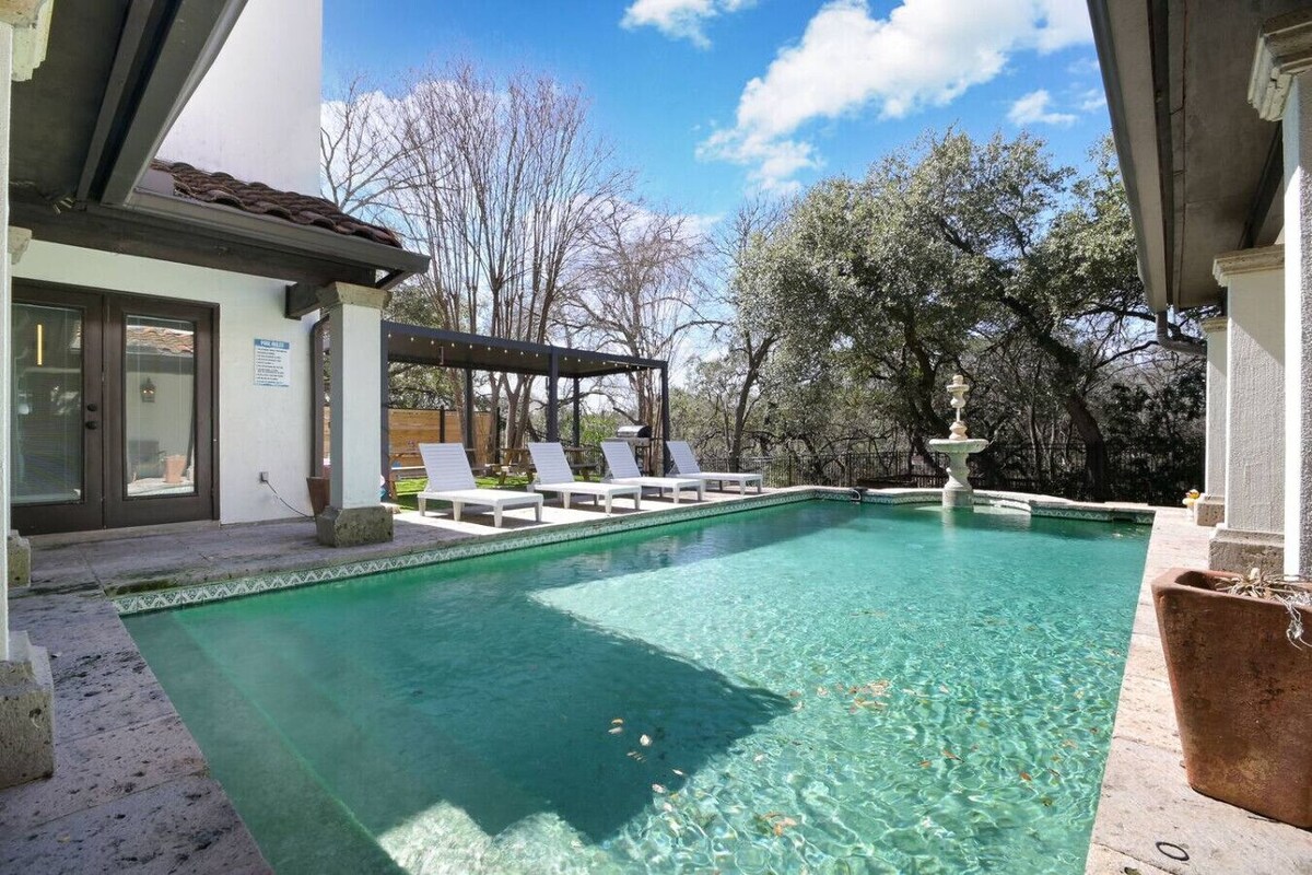Experience comfort and relaxation in this beautifully designed 3BED/3BATH home, Perfect for families and groups. Nestled in charming colony-style settings, this retreat offers a blend of elegance and modern convenience. Please note that this home is nestled next to a beautiful forest, which adds to its charm and natural surroundings. As a result, it's possible to encounter wildlife such as bugs and lizards, which are common in forested areas. 1. Check-in is from 4:00 p.m. onwards. 2. Check-out is at 10:00 a.m. maximum. Late check-out without approval incurs a $100 fee. 3. Inform us of the total number of overnight guests and any visitors. 4. Unregistered guests are not permitted. Extra guests may incur a $39/night fee per person. 5. No parties or events allowed on the property. 6. Notify us of all vehicles for your reservation. 7. All cars must be parked on the driveway or inside the garage. Street parking is prohibited. 8. No smoking indoors. Indoor smoking incurs a $750 fine. Outdoor smoking is allowed; dispose of cigarette butts properly. 9. No drugs or illegal activities are tolerated on the property. 10. Garbage collection days vary; we will notify you in advance. All trash must be bagged before being placed in bins. 11. House-trained pets are allowed with prior approval and a $120 fee per pet. Pets are not allowed on beds or furniture. Pet waste must be picked up or a fee will be charged. 12. Stained sheets or towels will incur replacement charges. 13. Remove shoes when entering the property, especially on carpeted areas. Shoe stains or dirt requiring deep cleaning will result in extra cleaning charges. 14. If you break or damage something, please notify us immediately. 15. Please return any moved items or furniture to their original positions. 16. Set the AC to 75°F when not in use. 17. The pool heater is available upon request for $150/day. Please provide at least 24 hours’ notice. 18. Use of the pool is at your own risk. No lifeguard on duty. Children must be supervised at all times. No glass near the pool. 19. Towels are for body use only. Do not use them for makeup removal, cleaning, or poolside use. 20. Exterior security cameras monitor the property 24/7 for safety. Do not tamper with them. 21. A noise-monitoring device is in place to help maintain a peaceful environment. It does not record conversations. 22. No open flames or candles are allowed inside the property. 23. No unapproved outdoor gatherings or additional visitors beyond registered guests. 24. Firearms or weapons are strictly prohibited on the property under any circumstances. Our prices include all fees. No hidden fees.