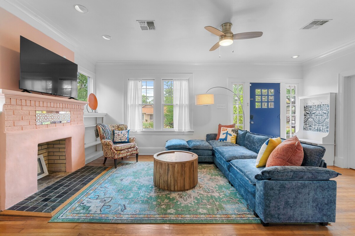 Discover the beauty of San Antonio from this 3-bedroom 1930's mission style bungalow. This cozy yet spacious retreat offers 3 inviting bedrooms, 2 full bathrooms and a wonderful private yard perfect for families, friends, or a romantic getaway. You are also a 10 minute drive to the Riverwalk and the lovely San Antonio Museum of Art, 18 minutes to Six Flags Fiesta Texas, and so much more! More about the house: Cook up delicious meals in the fully equipped kitchen, or unwind in the private backyard oasis featuring a gas fire pit, Smoker BBQ, covered dining area and a relaxing porch lounge ideal for morning coffee or evening cocktails. Enjoy the koi pond tranquility to indulge in a moment of peace amidst the city’s lively energy. Discover San Antonio’s Rich Culture and Attractions! Just a short drive away, explore the iconic San Antonio River Walk, where scenic boat rides and lively restaurants line the picturesque waterways. Dive into local history at The Alamo, or stroll through the historic King William District with it's beautiful 19th-century architecture. Food lovers will enjoy the city’s diverse culinary scene from authentic Tex-Mex and barbecue to innovative farm-to-table eateries. Don't miss the vibrant Mercado (Market Square), offering authentic Mexican crafts and cuisine. For a taste of local arts and culture, visit the wonderful San Antonio Museum of Art or catch a performance at the Tobin Center. Nature enthusiasts can explore nearby parks like Brackenridge Park or take a peaceful walk along the San Antonio Missions National Historical Park, a UNESCO World Heritage Site. Whether you're here for history, food, or simply soaking up the lively Texas spirit, this Alta Vista home provides the perfect base for your San Antonio adventure. INSIDE* Full private home -Full Kitchen, includes Keurig coffee maker, cookware, plates and glasses, ready for your daily kitchen needs! -2 Full bathrooms with tub showers -3 bedrooms * 1 King bed * 1 King bed * 2 twin beds -Comfortable living room With TV streaming and big comfy couch -Large dining room table -Board game selection -SLEEPING ACCOMODATIONS- bedroom 1- king bed Bedroom 2- king bed Bedroom 3- 2 twin beds *OUTSIDE* Smoker grill Covered lounge patio Outside dining patio Conversation fire pit (gas) Tranquil Fish pond -interactive!- please use the coin operated gumball machine to feed the fish! But only once a day! no swimming! Please always supervise your child or pet Disclaimer; Children/Babies- the homes is not baby-proofed. We do not have a high chair or crib at this time. PLEASE watch your children at all times in the home and when in the yard by the pond and fire pit. Our prices include all fees. No hidden fees.