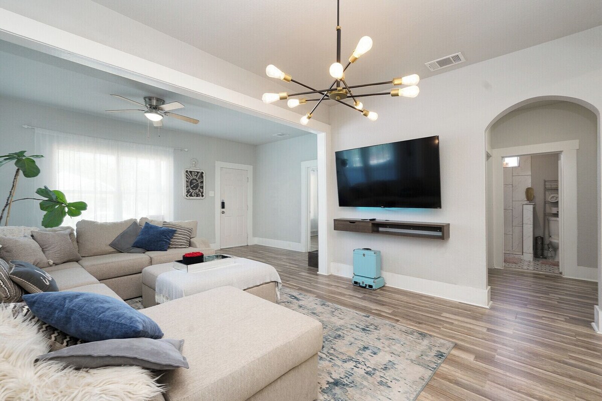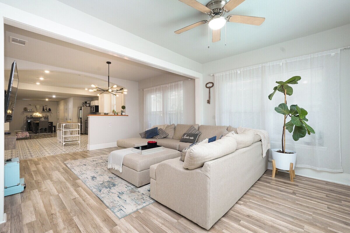 Get ready to relax in this 3-bedroom house in San Antonio. With a king bed, queen bed, and bunk bed, this fantastic property offers a cozy retreat for guests. Enjoy the convenience of heating, a washing machine, AC, and WiFi during your stay. The 2 bathrooms provide ample space for everyone. We look forward to welcoming you to our place.