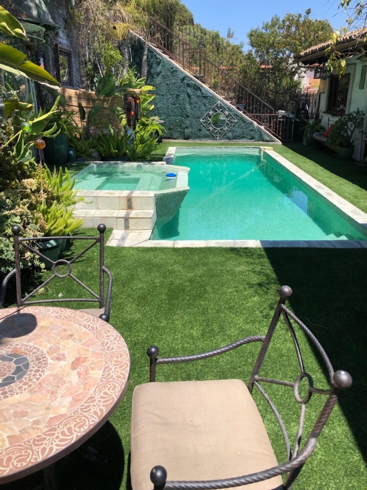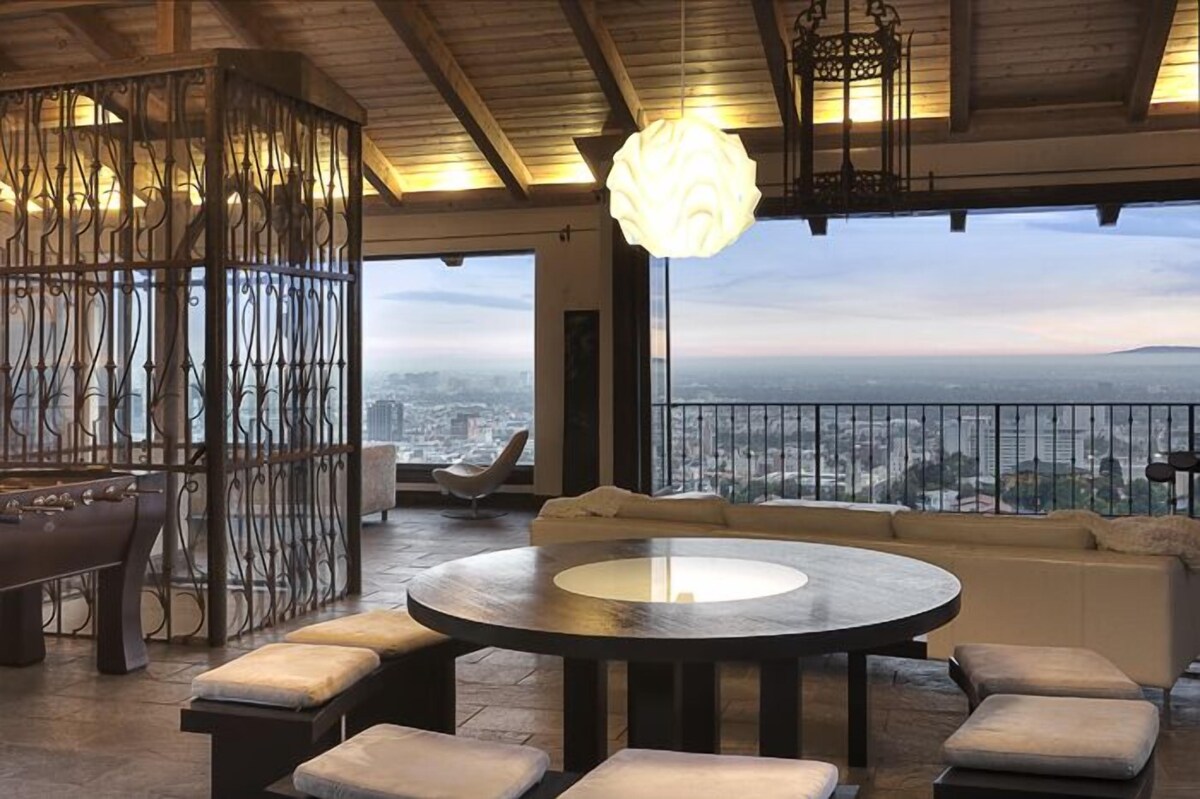 6000 Square Foot Home! This home, like the Picasso and Chagall on it's interior walls, is 'Original, And One Of A Kind' property. As you walk through the copper hammered front door and enter the anteroom, you are transported to the upper levels in an open framed cast-iron elevator, which climbs through four stories of wrap-around circular stone staircase, during the ascent your senses are brought to full attention to bear witness to every exquisite detail as each floor is revealed. Floor-to-ceiling glass walls accentuate the grand scale of the master suite giving way to jetliner views stretching from downtown LA to the ocean from the master bed. Draped with tapestries, fabric, and handmade rugs, there has never been a more seamless mix of luxury and comfort. Adjoining the master bedroom is the master bath, encased in exquisite jade-colored marble and boasting a Jacuzzi with views over the city and a double-headed shower. Four other en suite bedrooms boast custom fixtures and layouts designed so everyone lives like a king. Antique folding wooden doors encase floor-to-ceiling windows on the fourth floor, which open up to a stunning all tile pool and spa, as well as an endless view from the city to the water. 18' cathedral ceilings soar overhead, and the distressed copper kitchen cabinets accompany an antique stove, and crystal and cast iron chandeliers. With this turnkey property, hailed as 'the best house in LA', you are renting not just a home, but a lifestyle. Bring your toothbrush, leave your cares, and step into a life where anything is possible and nothing is forbidden. The Modern Villas Hollywood has been home to many wonderful artists such as Stevie Wonder, John Travolta, Danny DeVito, Jesse James, Kat Von D, Eddie Van Halen, Blake Shelton, Miranda Lambert, Tom Ford, Annie Liebovitz, Carrie Elwes, Mark Canton(creator of the movie 300) Ryan Cavanaugh, and Stanley Tucci, just to name a few. This property fills quickly, so call to reserve your spot today. Additional housing, entertaining, and meeting accommodations for friends, family, and employees are available in adjacent properties. Please contact owner to reserve! Sister house next door is also available. (Property # 334828) Pricing for Photoshoots, and Filming as well as larger occupancy available upon request and on a per request basis. A security camera is located outside the house. Balcony doors are locked and guests do not have access to the balcony. Amazon Echo 8 in every room and kitchen. The owner, property manager, and workers will have access to a garage. They do not have access to any area where the guests will reside. Hollywood Bowl is close to our property, but the entrance to the Hollywood Bowl is on the other side of the hill, so you would need to get down the hill and enter on the other side. It's only a short 5-minute drive or a 25-minute walk, but since our property is in the hills, coming back, you would have to walk uphill. House Rules: • NO PARTIES OR EVENTS, the property is for quiet residential use only. The owner lives next door. • NO ADDITIONAL GUESTS OR VISITORS unless the owner approves the change • NO GLITTER • No smoking • Cost of utilities not included in stays over 30 days • 2 cars maximum • Total number of guests must be disclosed to the host when requesting booking. • No additional guests or visitors other than those listed on the reservation are allowed at the property unless approval from the owner is obtained. • You may (at our discretion) be required to show valid, government ID • Failure to comply with the house rules could result in a forfeiture of the security deposit, fines up to $1000 per broken rule, and/or cancellation of booking. Our prices include all fees. No hidden fees.