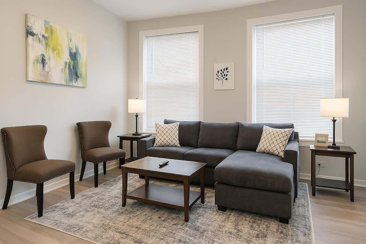 Summary: Welcome to this spacious and inviting 2-level apartment—perfect for families or groups! This bright and spacious 4-bedroom, 2-bathroom apartment is ideal for families, groups, or business travelers looking to enjoy the city in comfort and style. Just minutes from Wicker Park, Bucktown, and Old Town. Walk to trendy restaurants, craft coffee shops, local boutiques, and lively bars. The Space: On the first level, you’ll find a cozy bedroom with a Queen-sized bed, a full bathroom, and a fully equipped kitchen that opens up to a comfortable living and dining area. Head upstairs to discover three additional bedrooms, each with a Queen-sized bed, and another full bathroom. The unit also features in-unit laundry, modern bath essentials, and all the amenities you need for a relaxed and enjoyable stay. The Neighborhood: 📍 Neighborhood: Noble Square / West Town The property sits in the Noble Square pocket of West Town just west of Chicago’s Loop. It borders the vibrant Wicker Park and Bucktown area—blending tree-lined residential charm with creative energy and walkable convenience. 🍽️ Nearby Dining Here are some excellent local spots within a few blocks: Andros Taverna – Authentic Greek fare in nearby Logan Square Akahoshi Ramen – Cozy Japanese ramen joint loved by locals Le Bouchon – Classic French bistro offering elevated, intimate dining Mott Street – Central Asian menu featuring standout dishes like gnocchi Daisies Chicago – Elevated American comfort food in a welcoming atmosphere Getting Around: 🎯 Nearby Attractions Great local destinations for guests: Pulaski Park & Fieldhouse – Historic green space with playground, dog run, and fieldhouse Chicago Riverwalk, Navy Pier & Millennium Park – Easily accessible from nearby transit, offering iconic downtown attractions Downtown, O’Hare Airport, and other neighborhoods via public transit, rideshare, or biking Offers a dynamic balance—residential calm near lively dining, parks, and arts scenes, all with great transit access. Perfect for guests seeking both local flavor and city exploration. Other Things to Note: For your safety and security, we may request government-issued identification prior to check-in. NO elevator in the property. Our prices include all fees. No hidden fees.