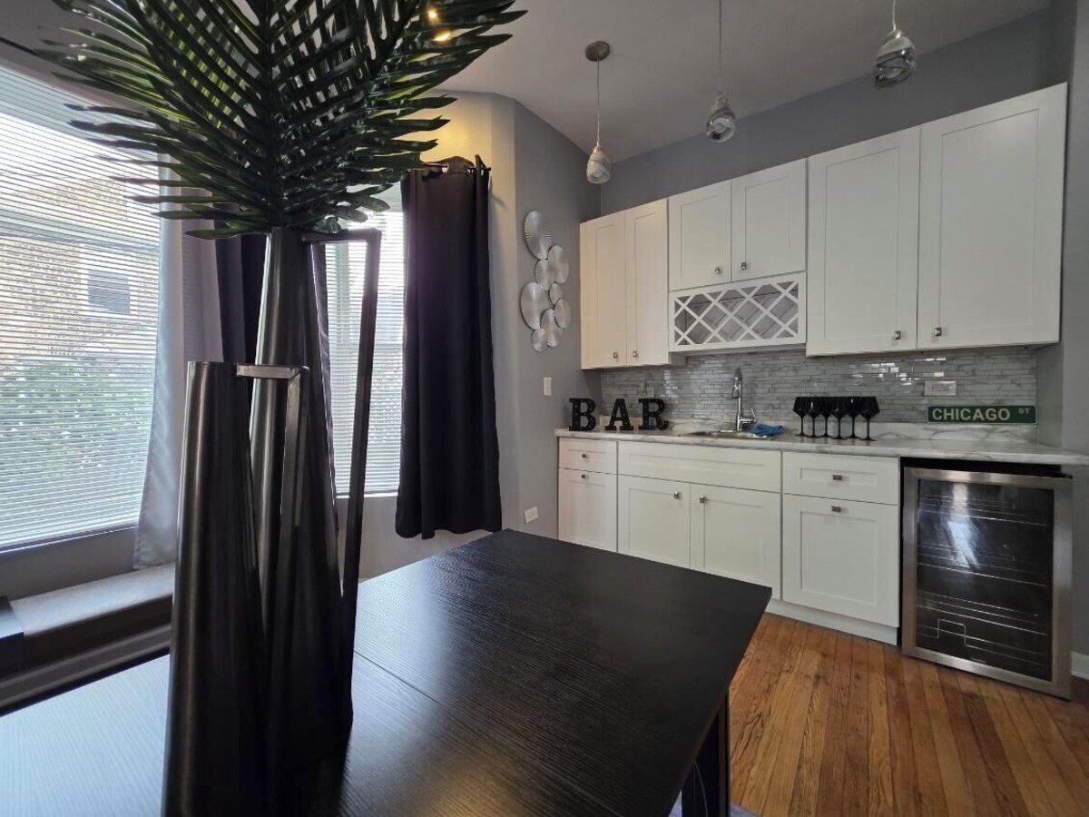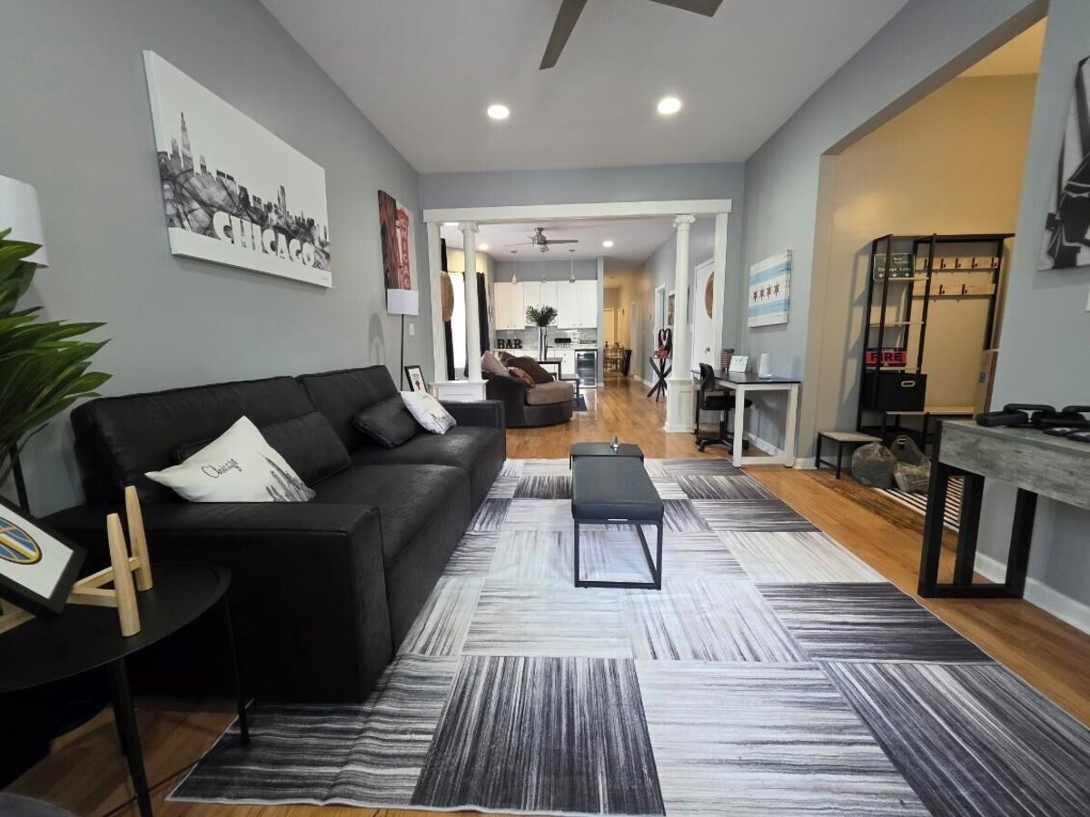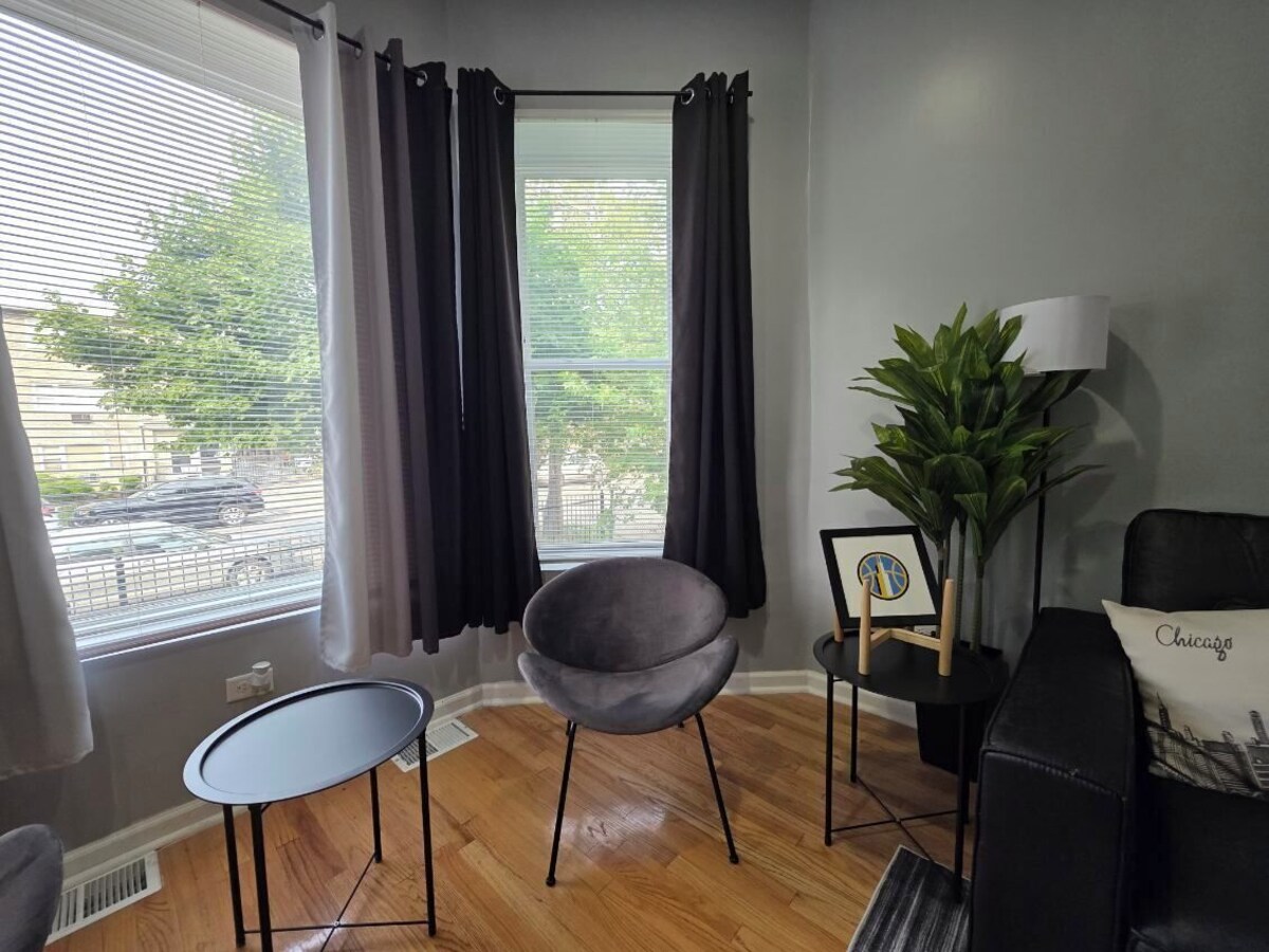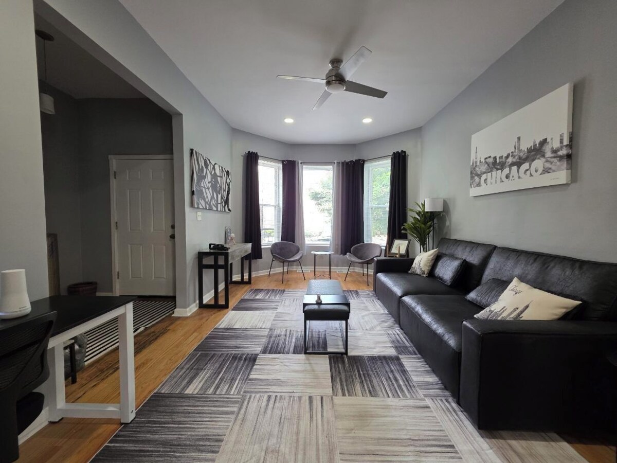 Come experience the Lake Shore! A corporate apartment that boast comfort, class and the PERFECT location to explore any area of Chicago. With 1 queen bed, 2 twin beds, and a large couch that can be used for sleeping, guests will have plenty of space to relax. 1 spa like bath equipped with a shower, bathtub, and hair dryer. Plus, amenities like WiFi, a washing machine, heating, and AC are provided for your convenience. You're sure to make fantastic memories with a stay at our place. Located 0.2 miles from Lake Michigan, Rainbow Beach, 0.2 miles from South Shore Country Club and Golf Course, 0.3 miles from Obama Library, 0.1 mile from the Metra train to Downtown Chicago! Don't miss out on this Conveniently located to all hotspots gem!